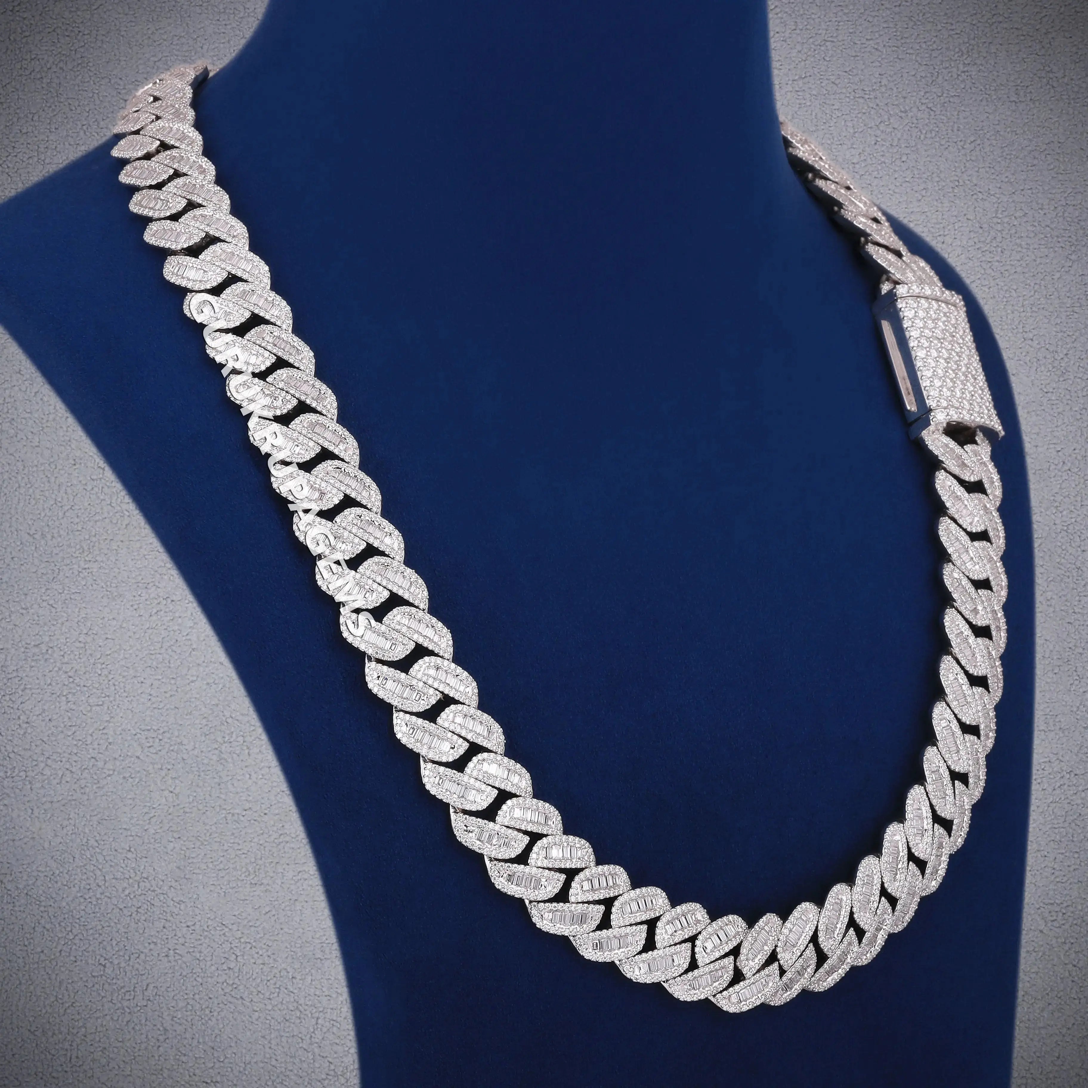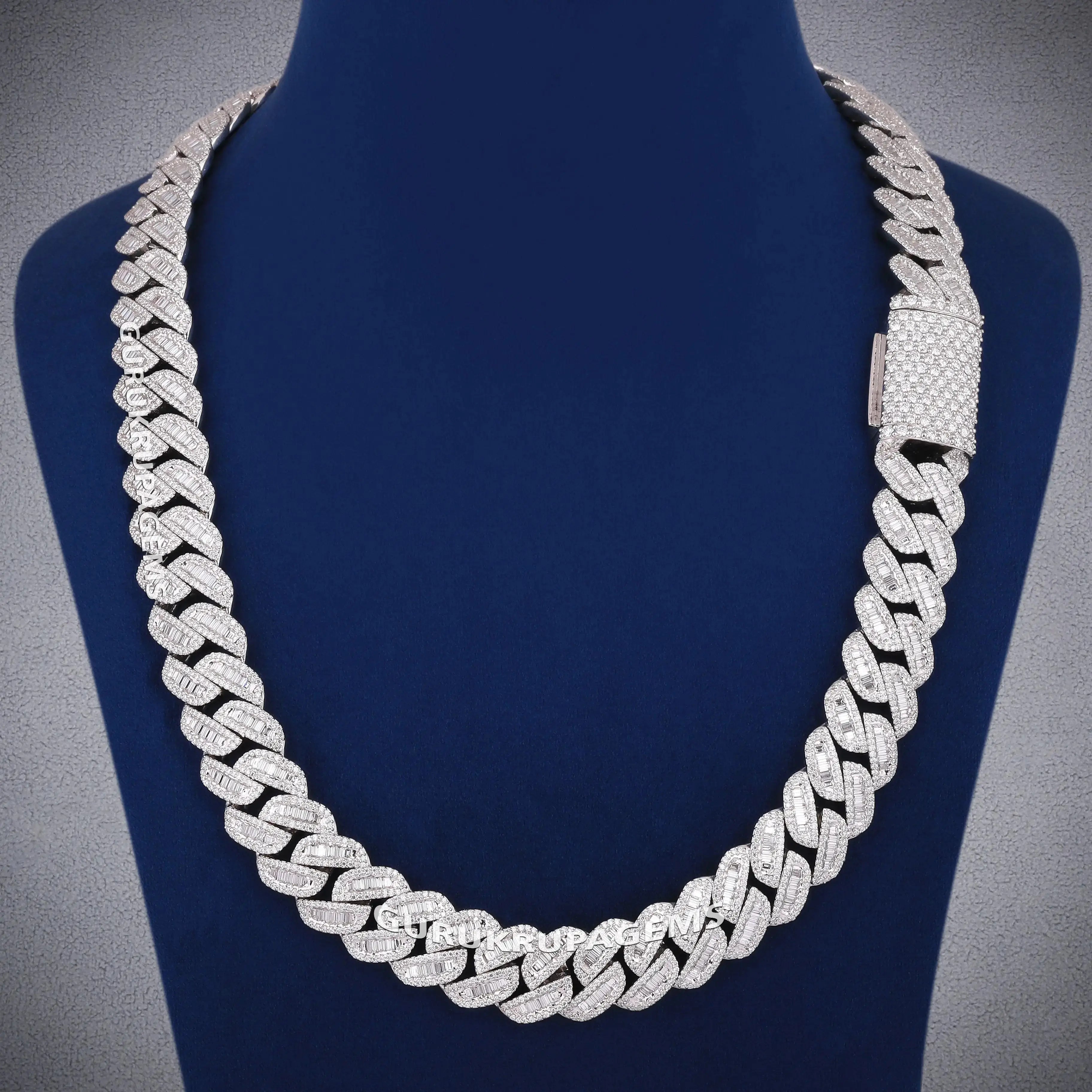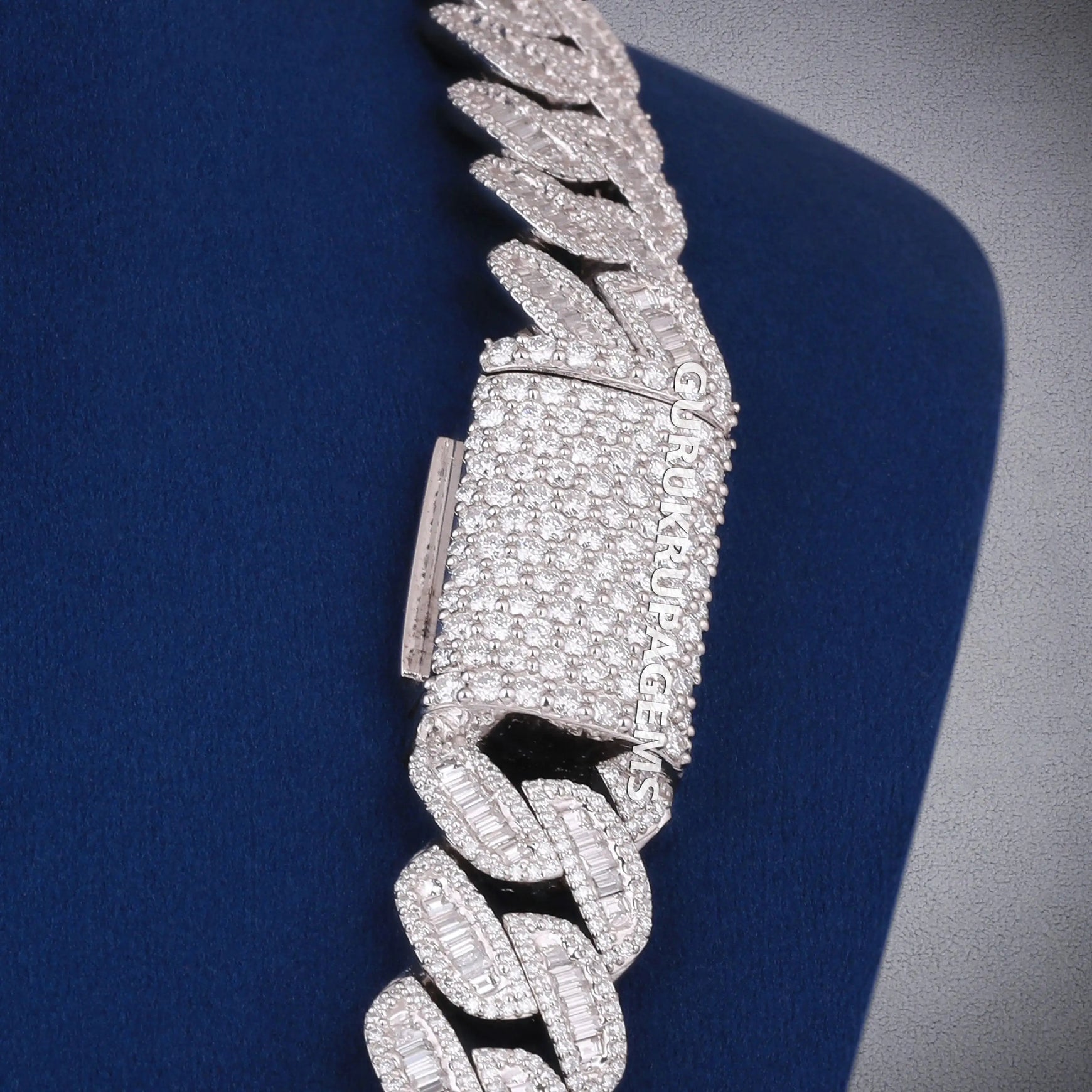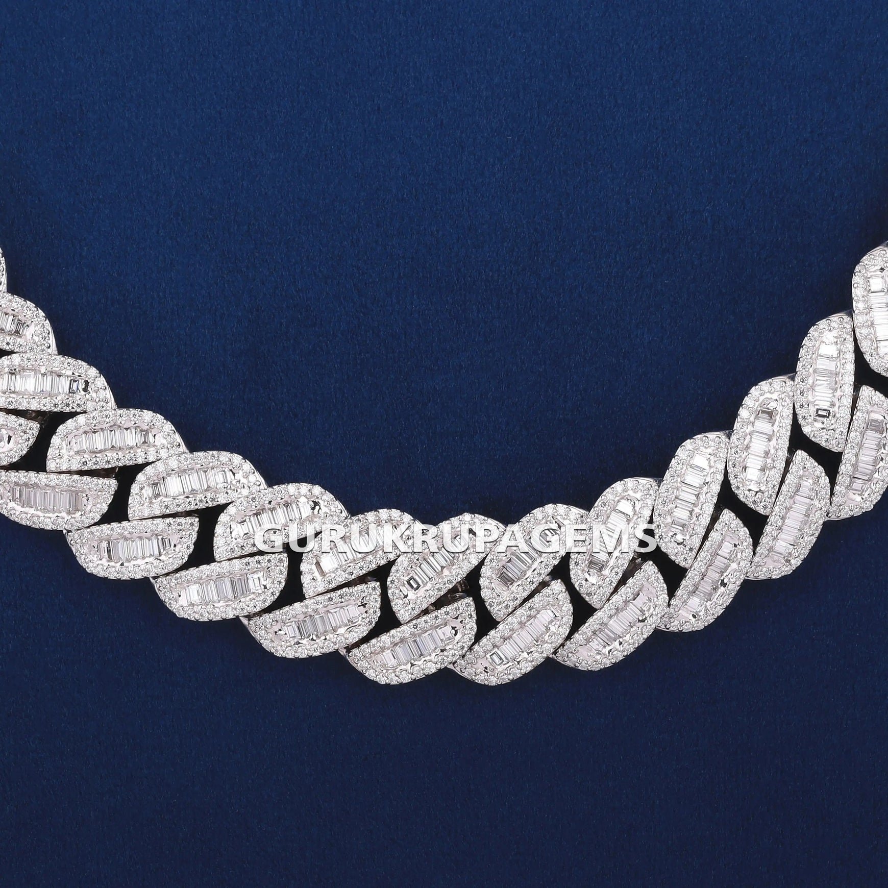 22 inch 16mm Iced Out Halo Cuban Link Custom Chain with Round Baguette Cut Heavy Luxury Necklace