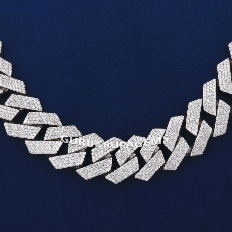 24 Inch 18mm Custom Clasp White Gold Cuban Link Chain VVS Diamonds Iced Out Necklace for Mens