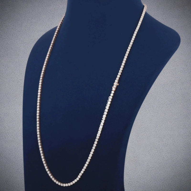 24 Inch 4mm Rose Gold Diamond Tennis Chain Necklace Celestial Ice Collection