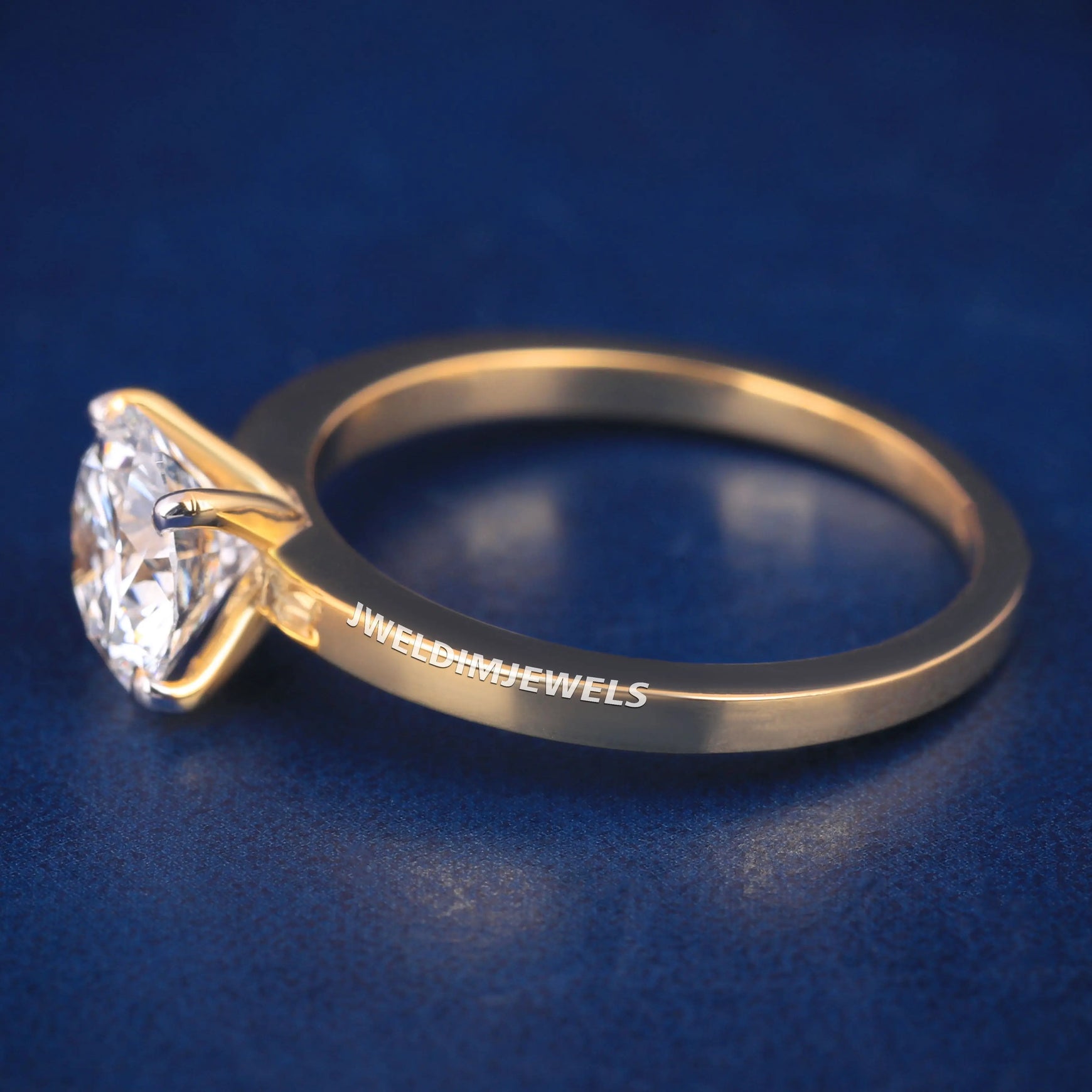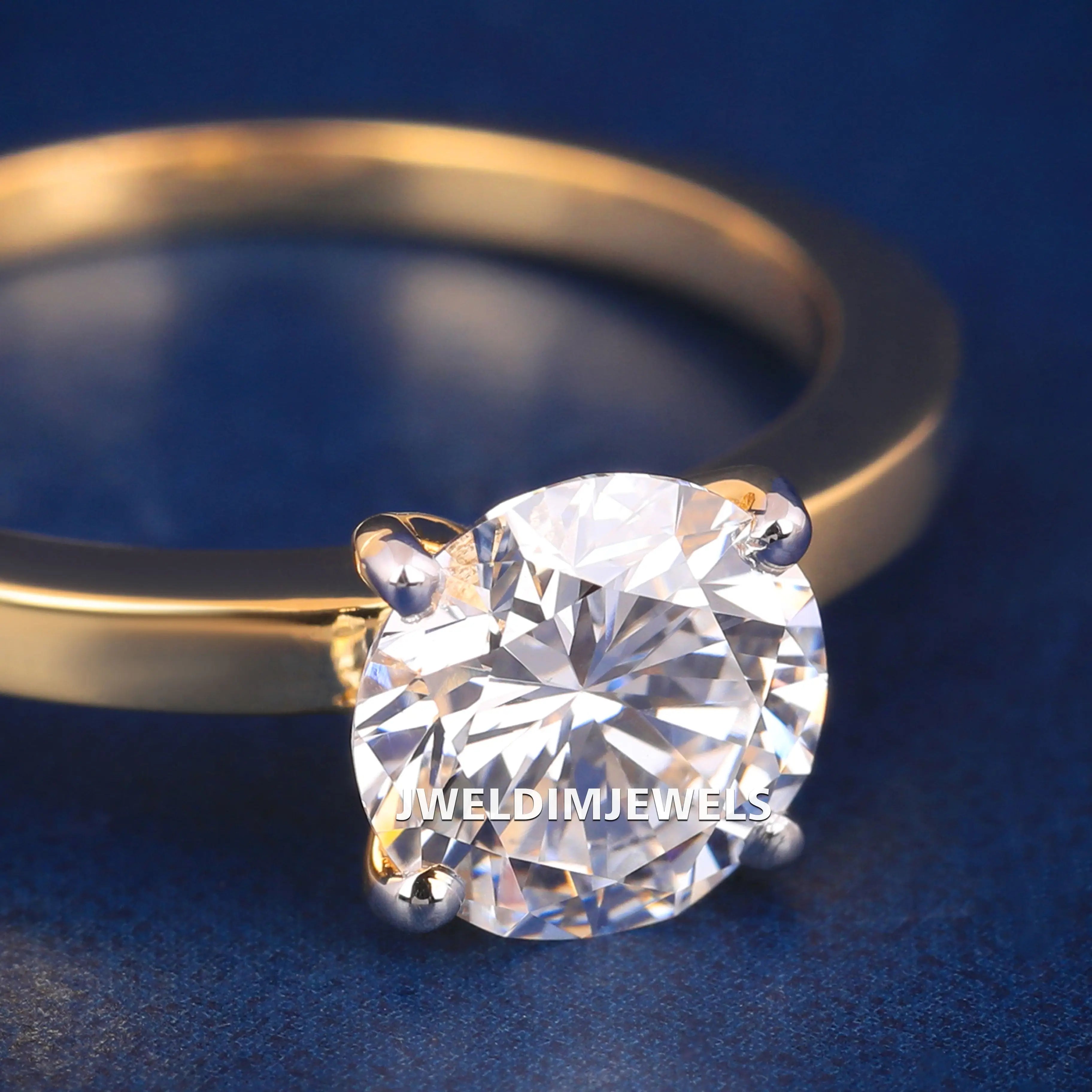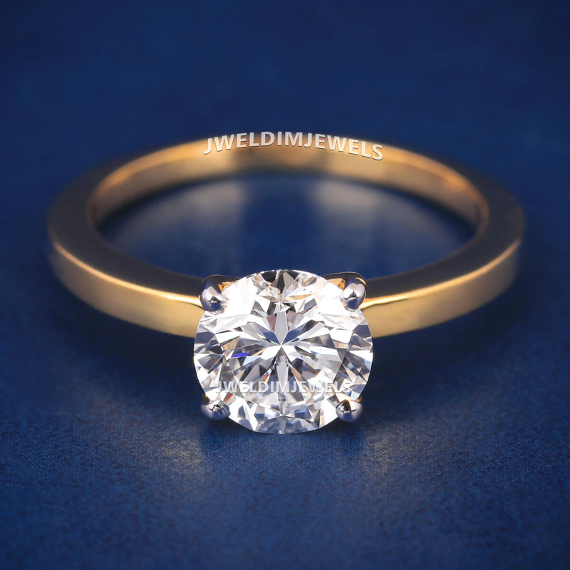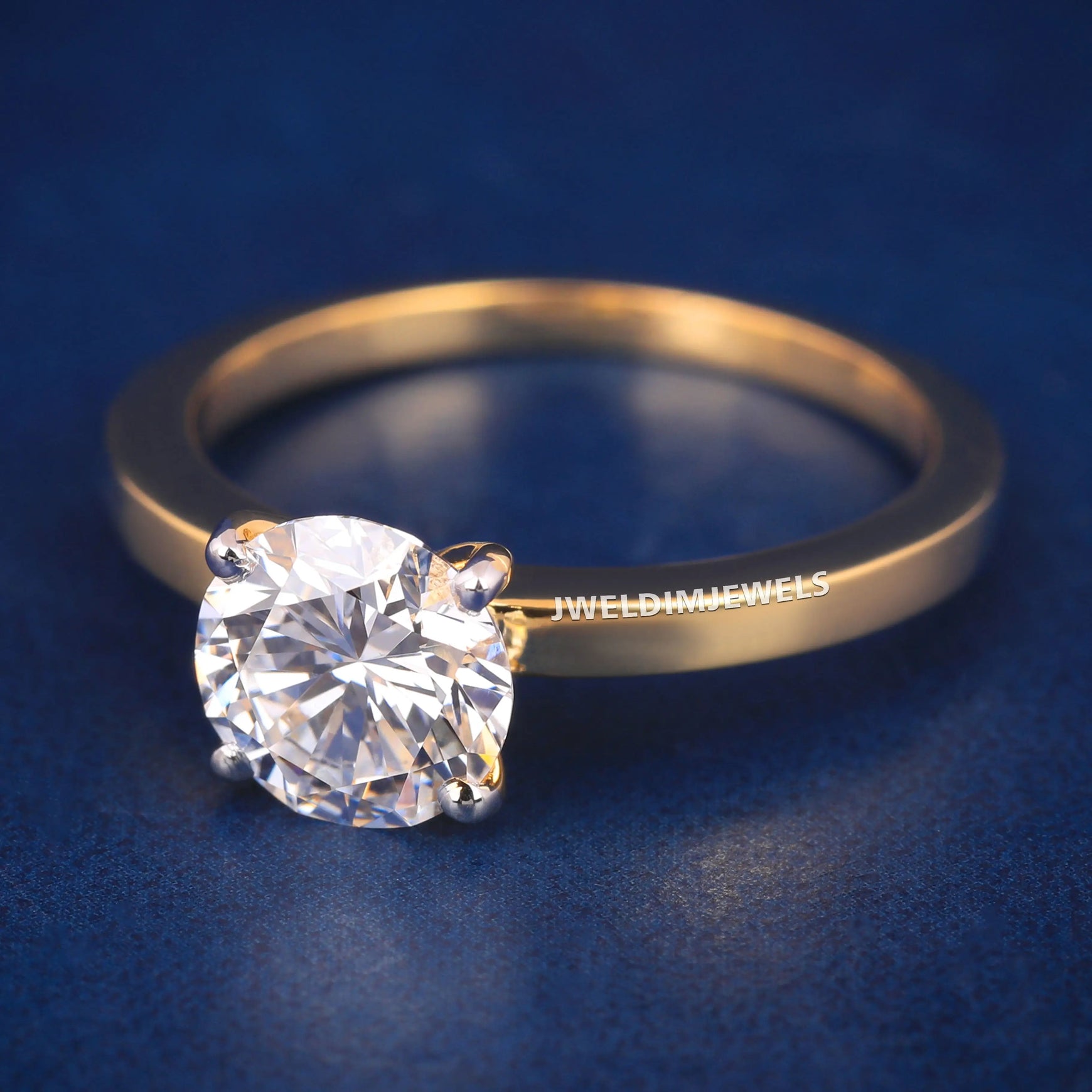 Buy Custom Round Cut Lab Grown Diamond Ring in 14k Yellow Gold Engagement Rings for Women