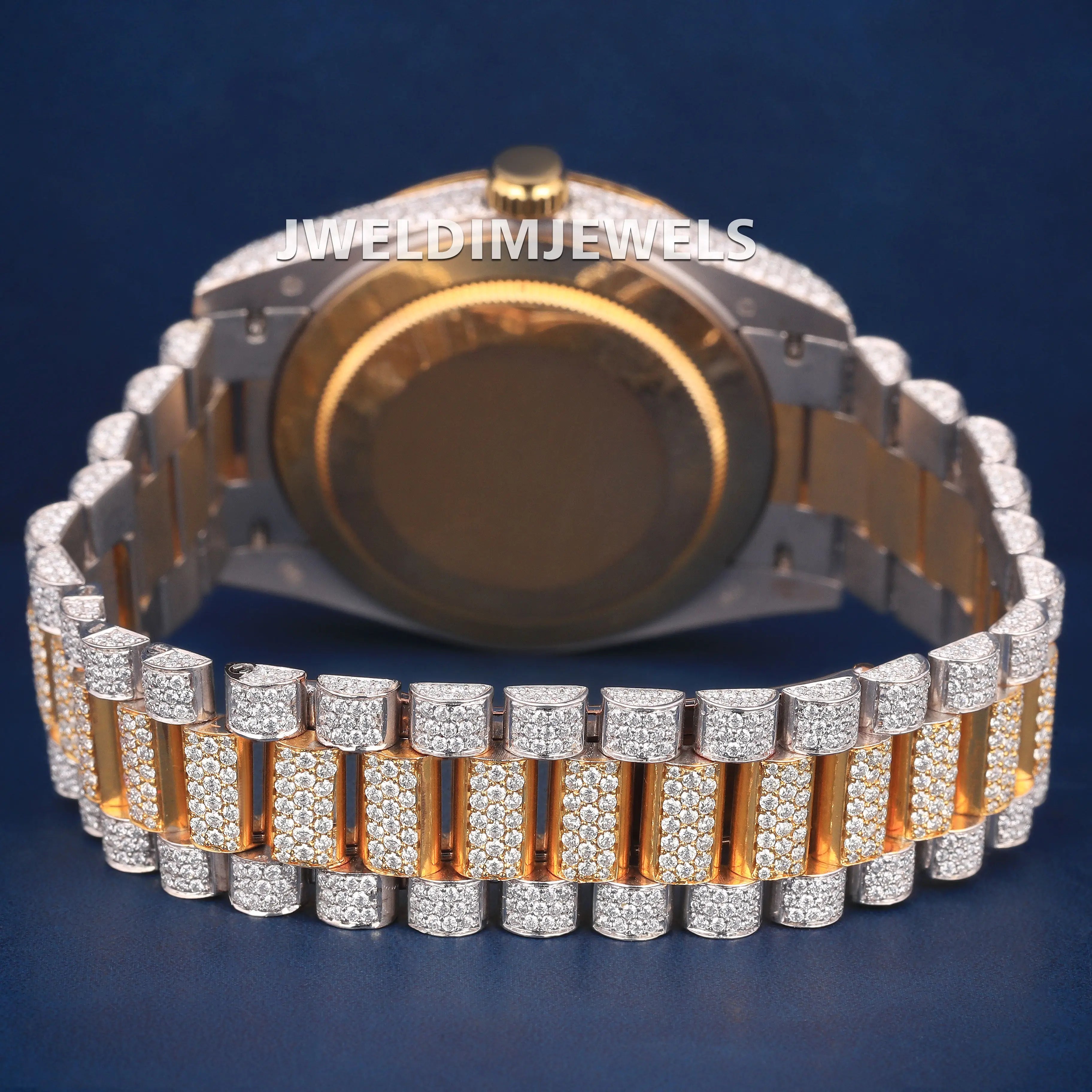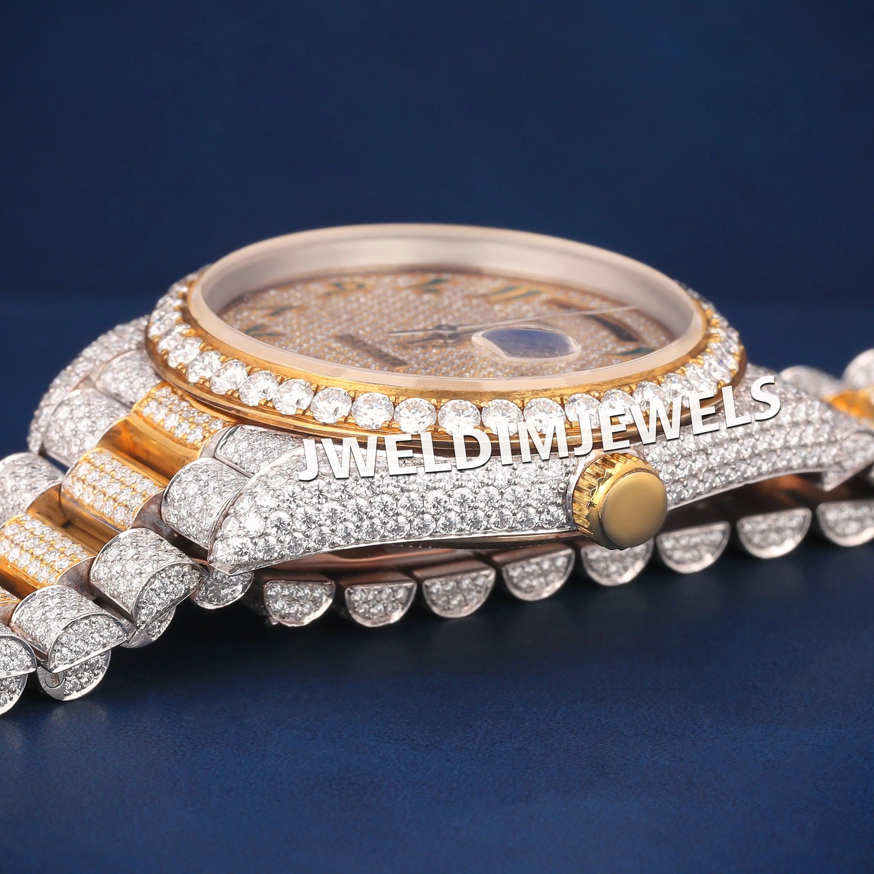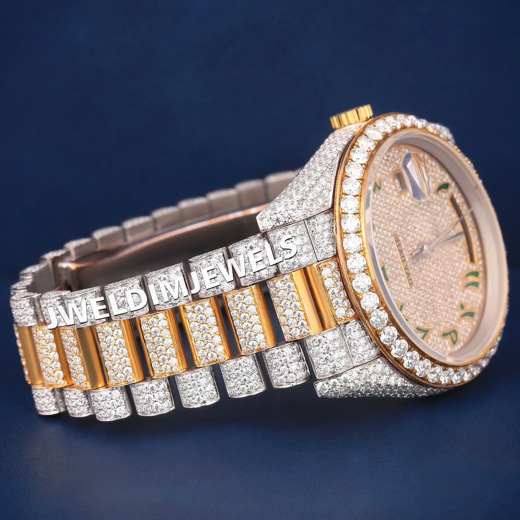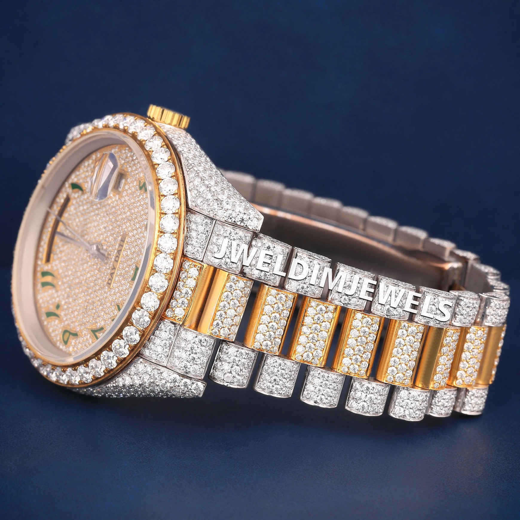 Custom Real Bust Down Watches Two Tone Silver Yellow Diamond Bezel Watch Green Arabic Dial Iced Out Watches with Real Diamonds