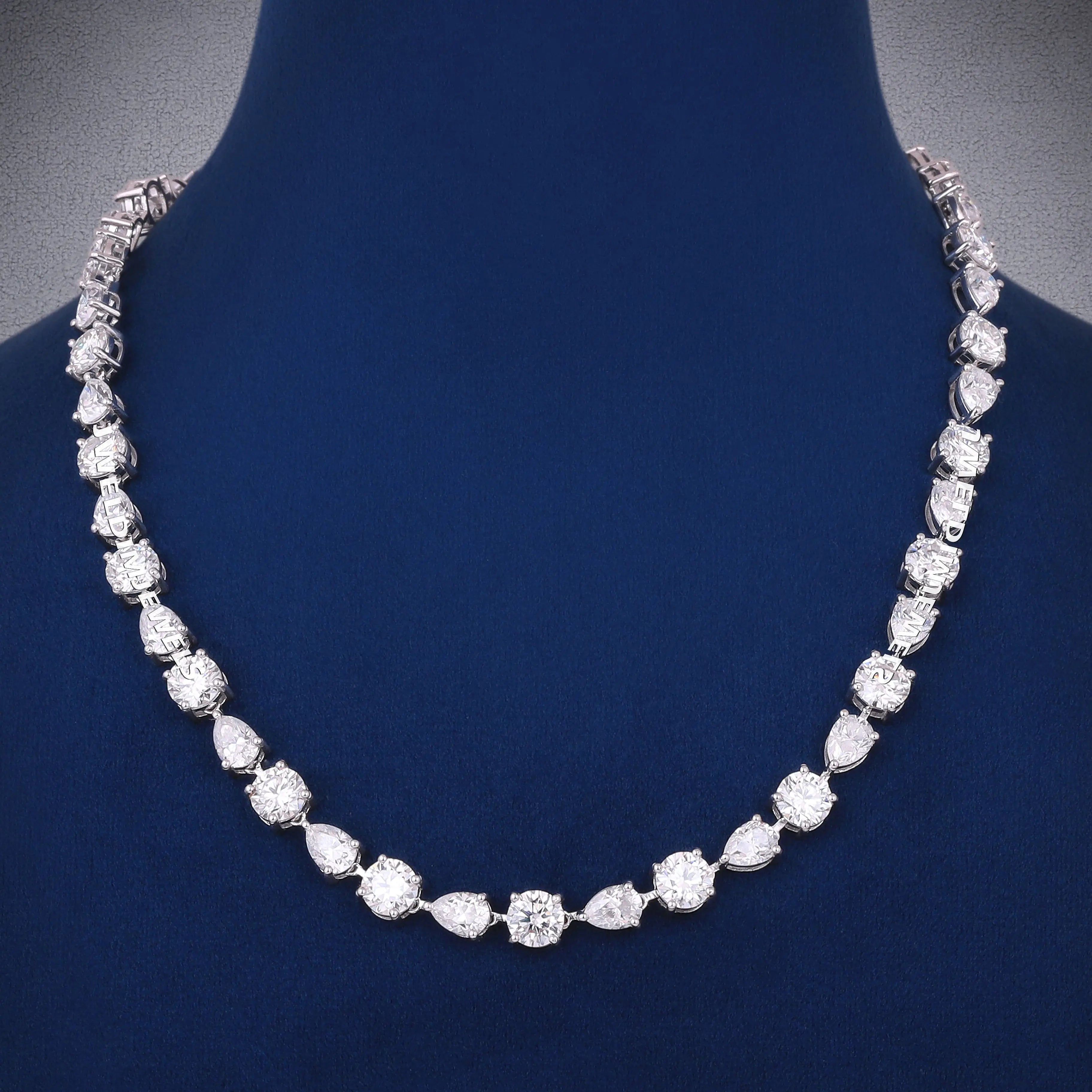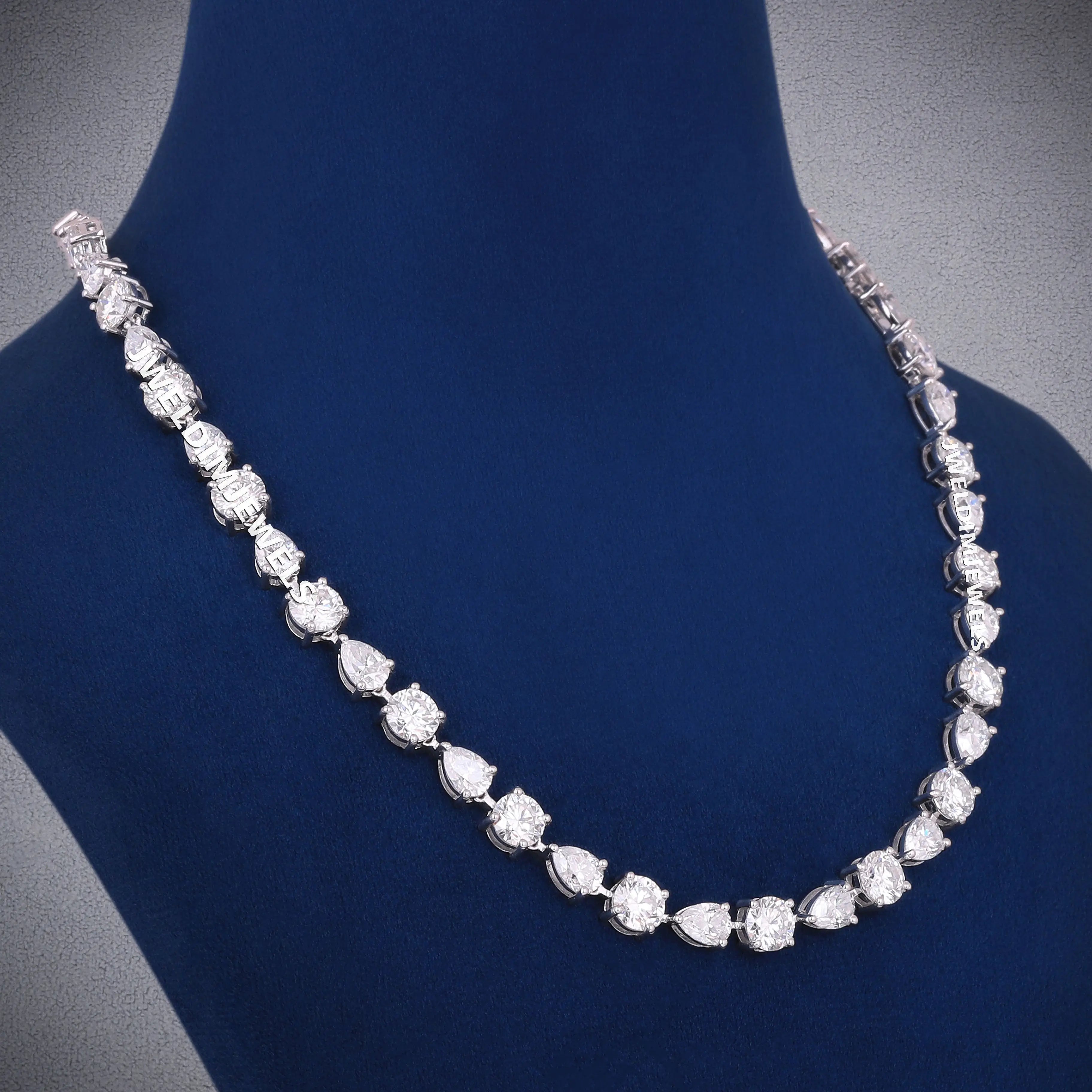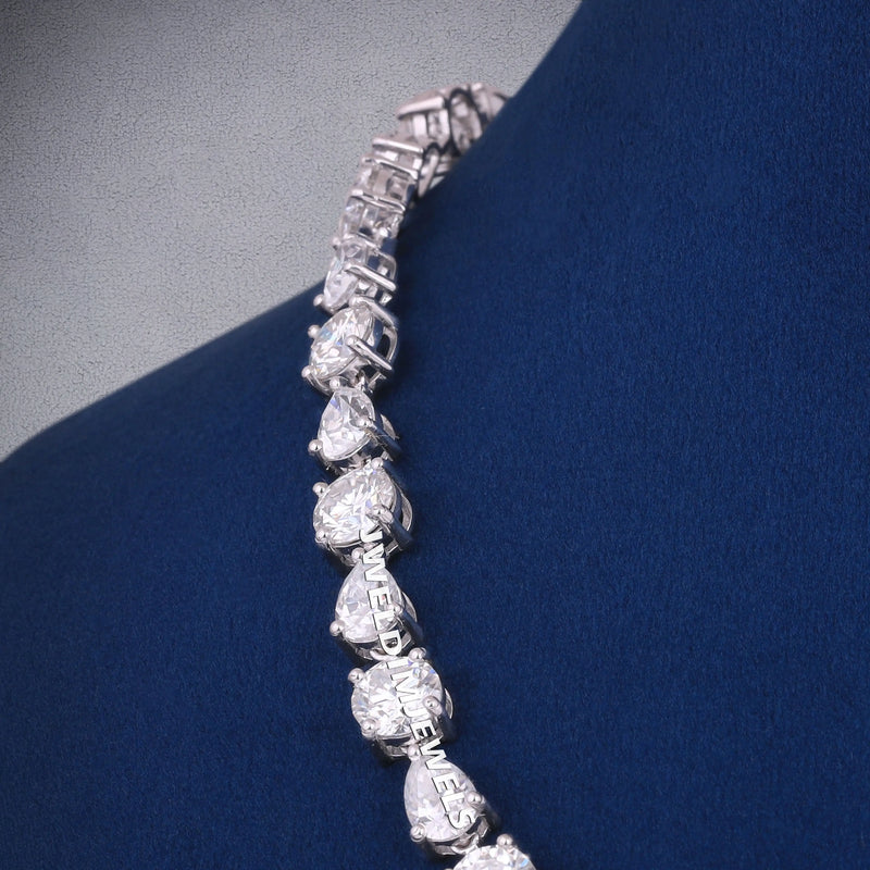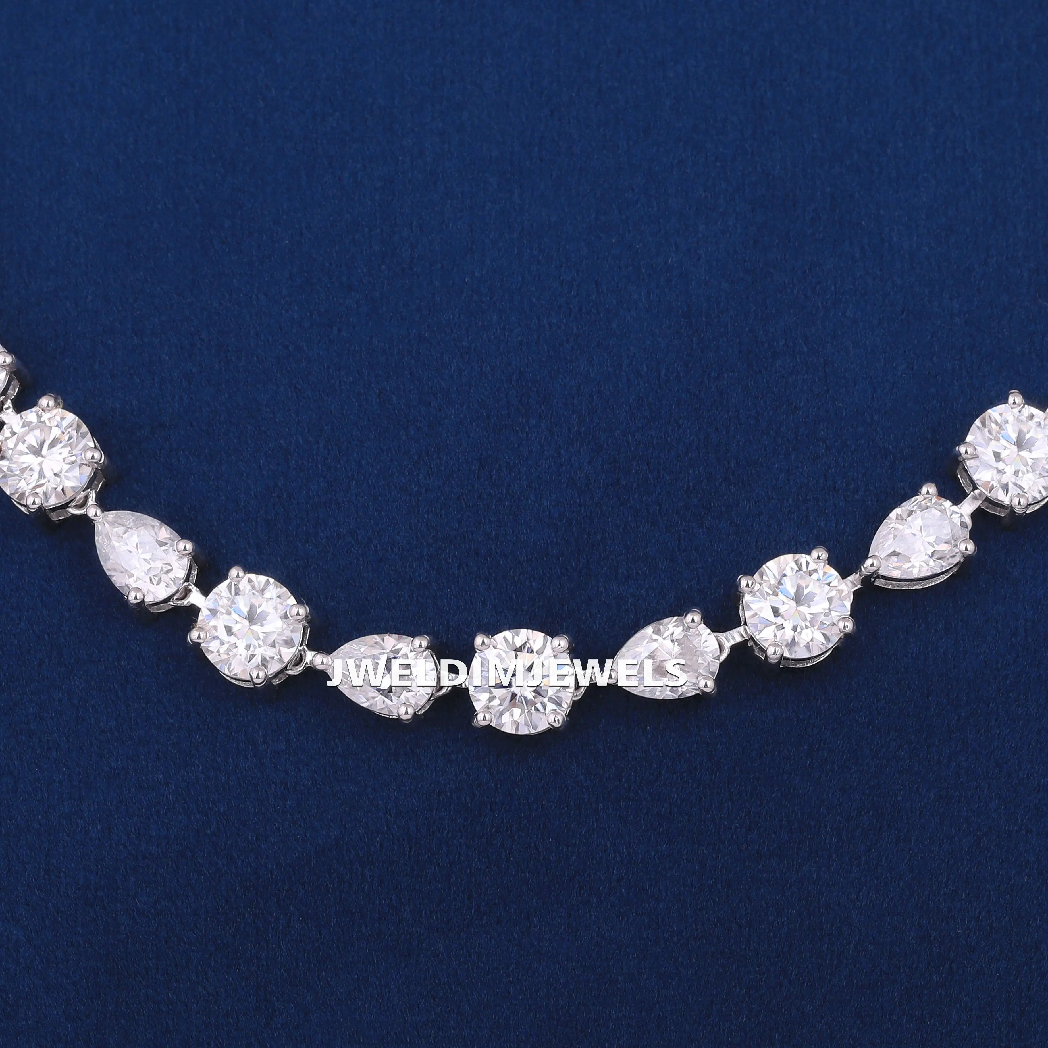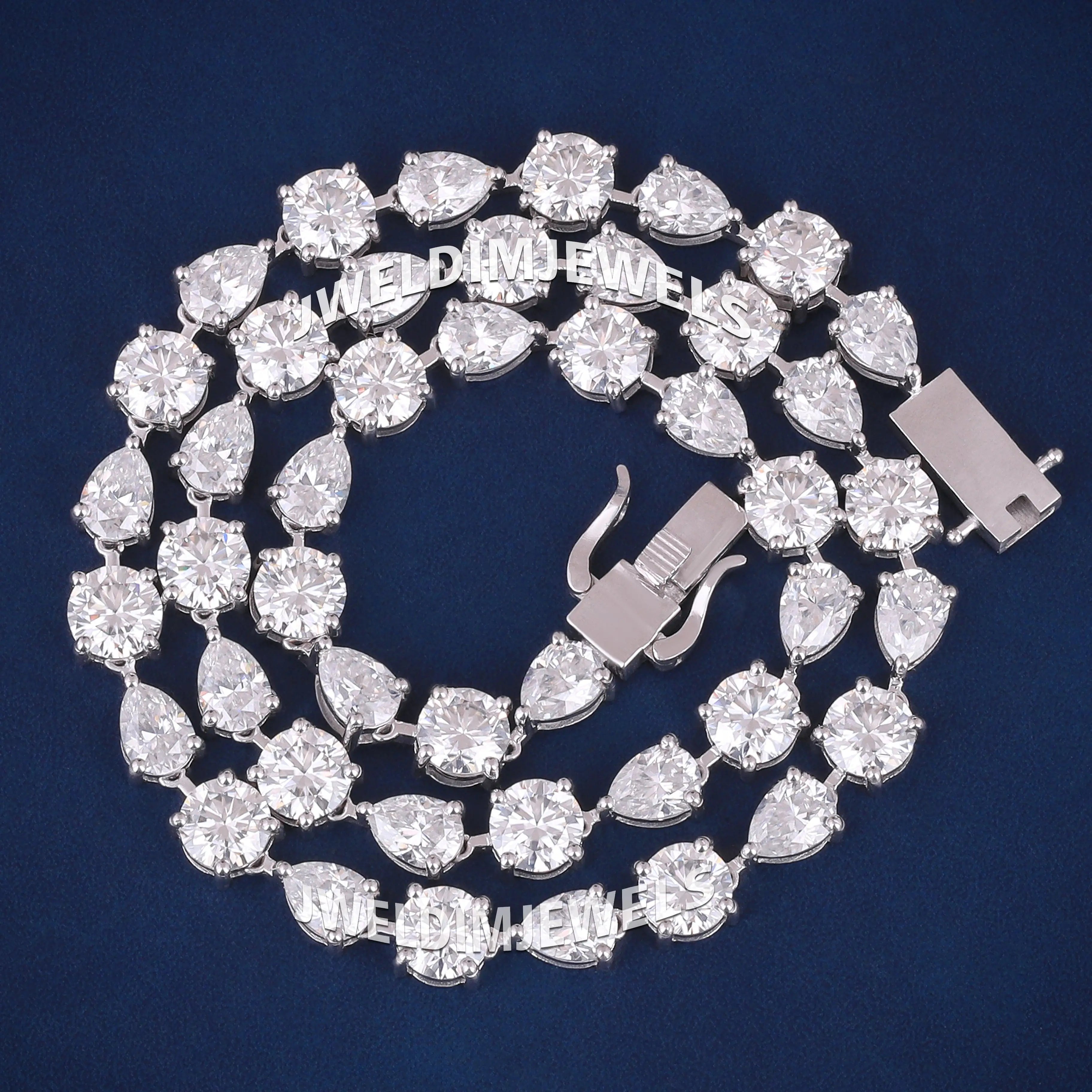 Custom Round And Pear Cut Diamonds 3.5 mm Iced Out Rapper Pearl Necklace Fully Silver Chain for Men