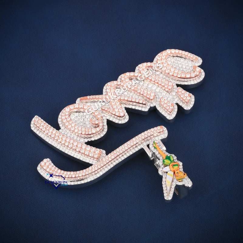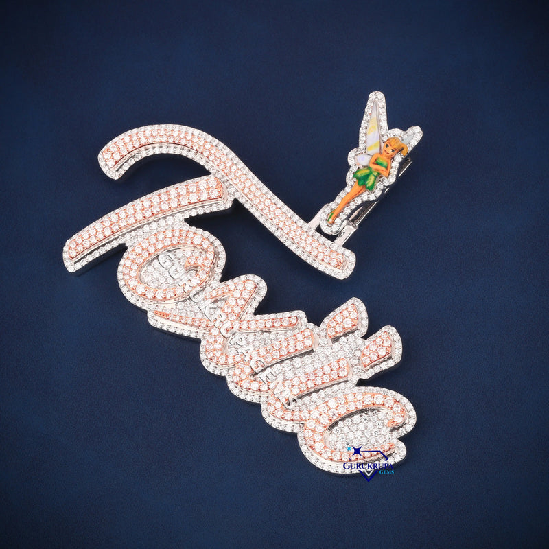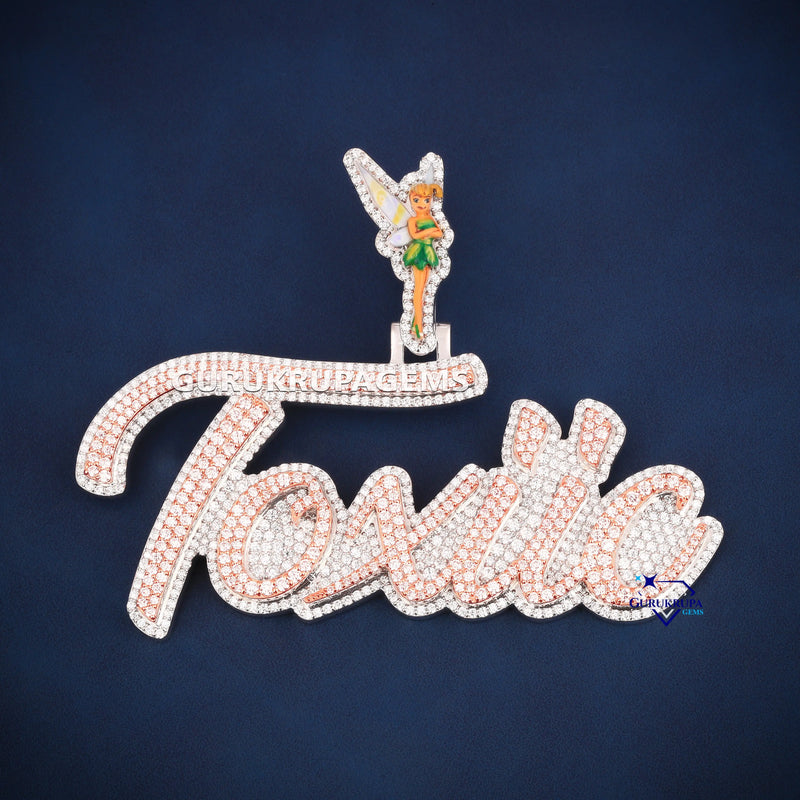 Custom two tone stacked moissanite pendant VVS back custom engraved