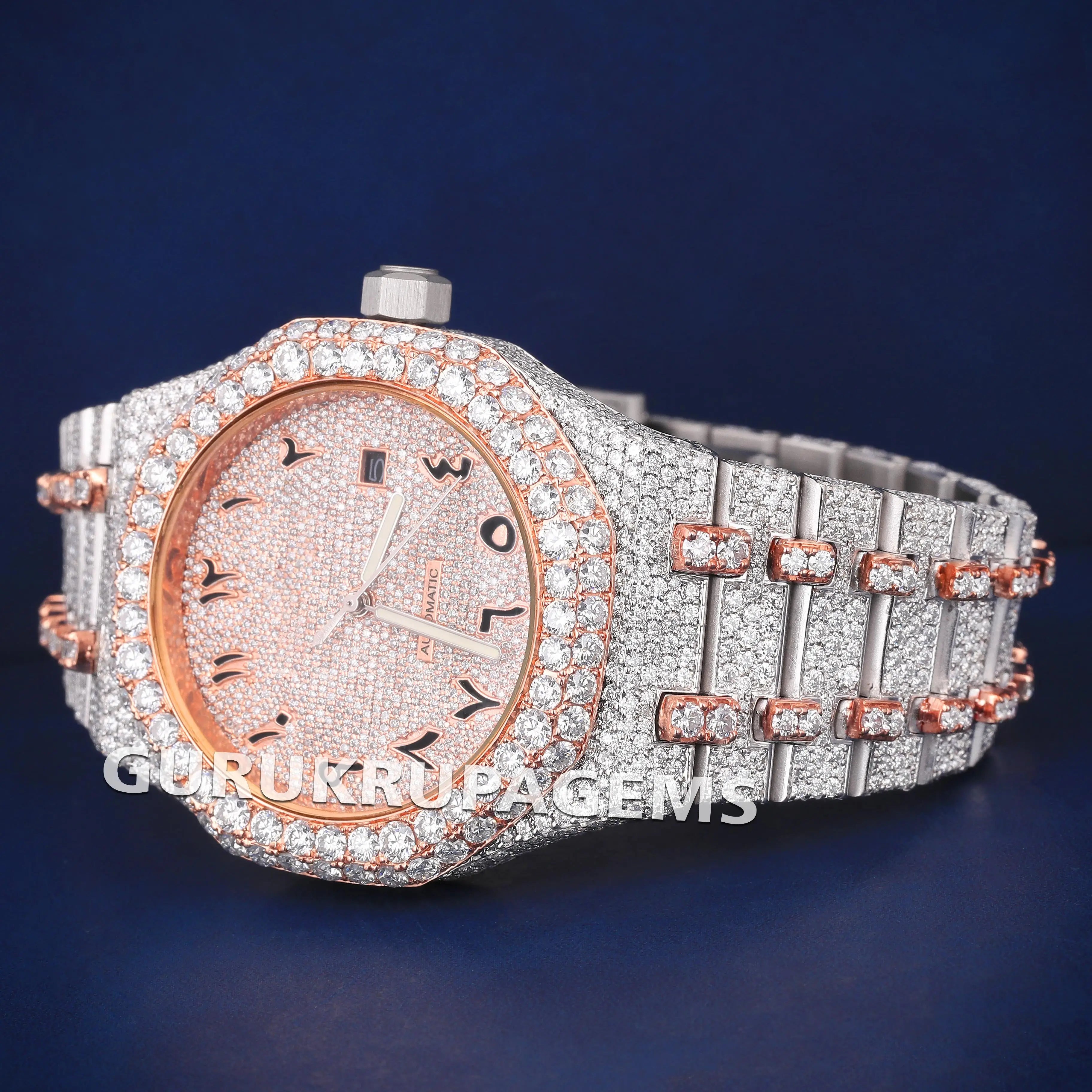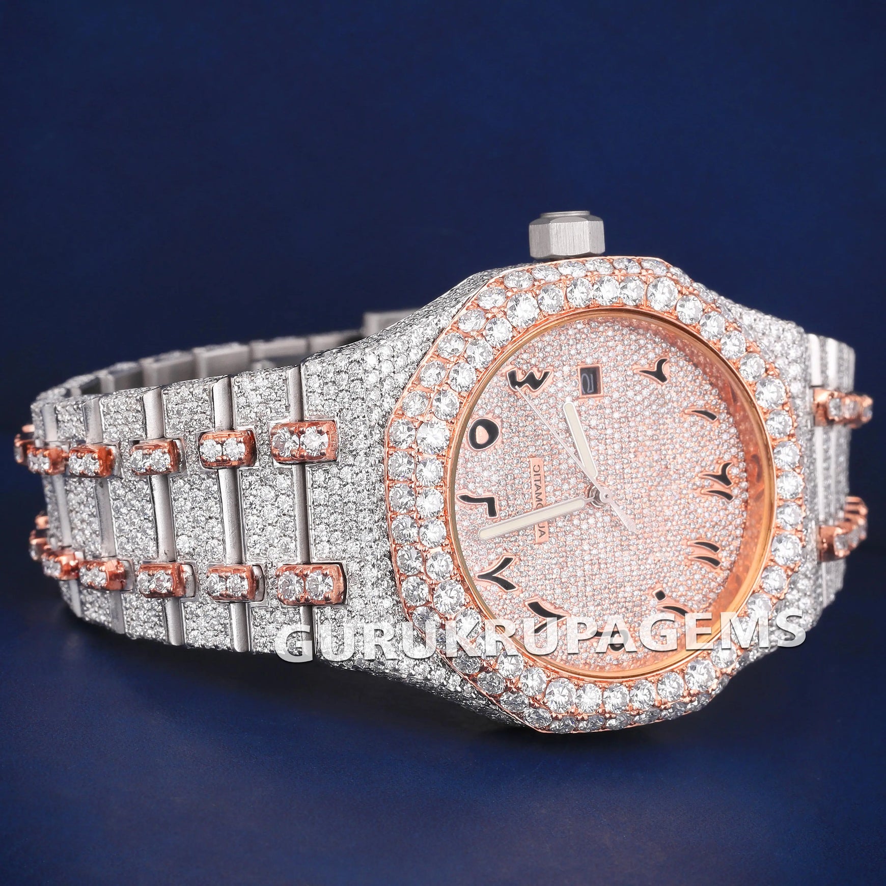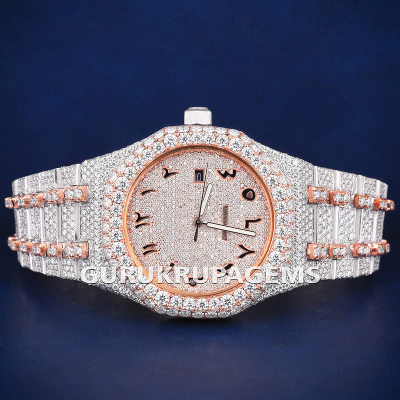 Iced Out Two Tone Silver & Rose Arabic Dial Hiphop Diamond Watch in Luxury Custom Expensive Watches for Women