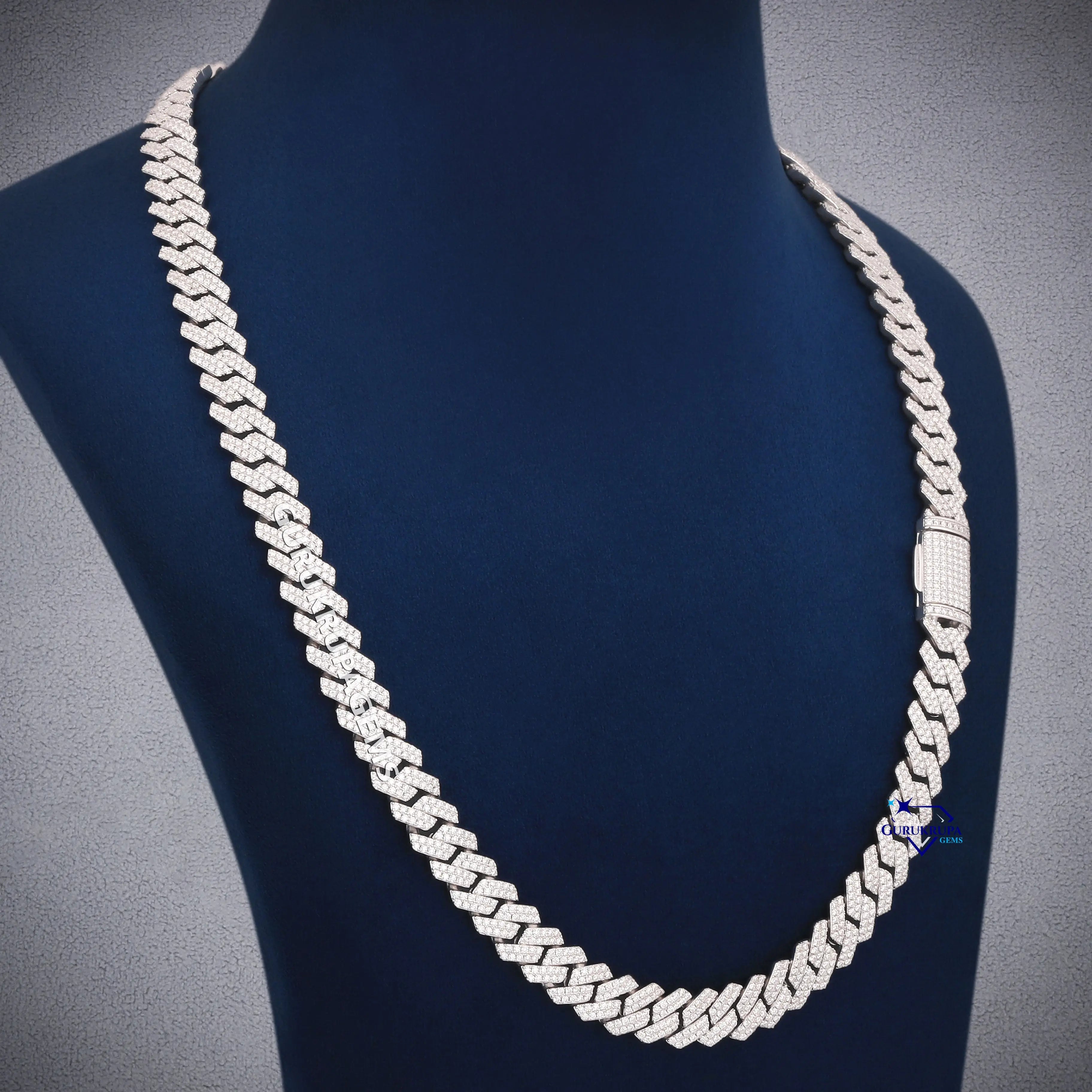Iced out white gold Cuban link chain for men with full pave diamond setting