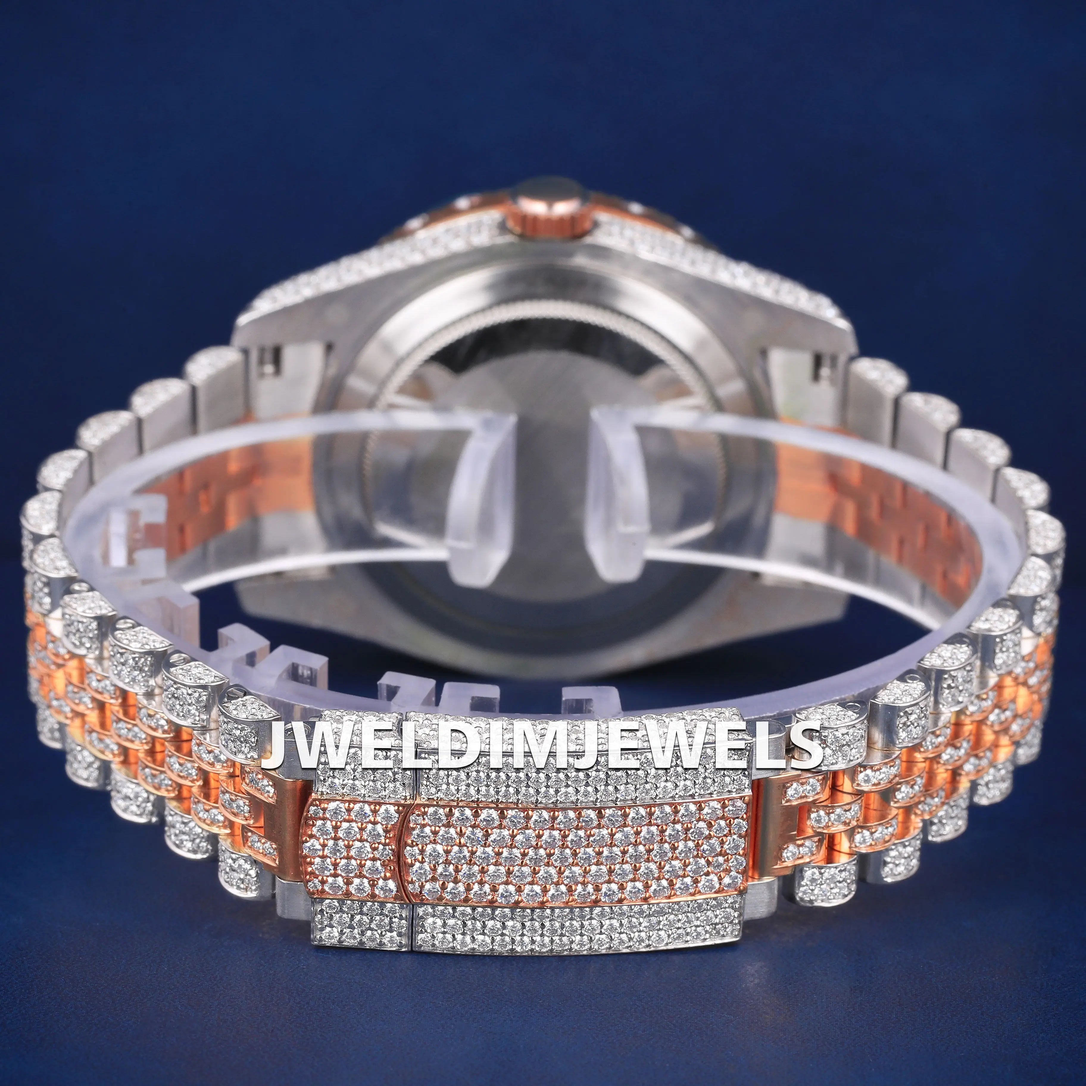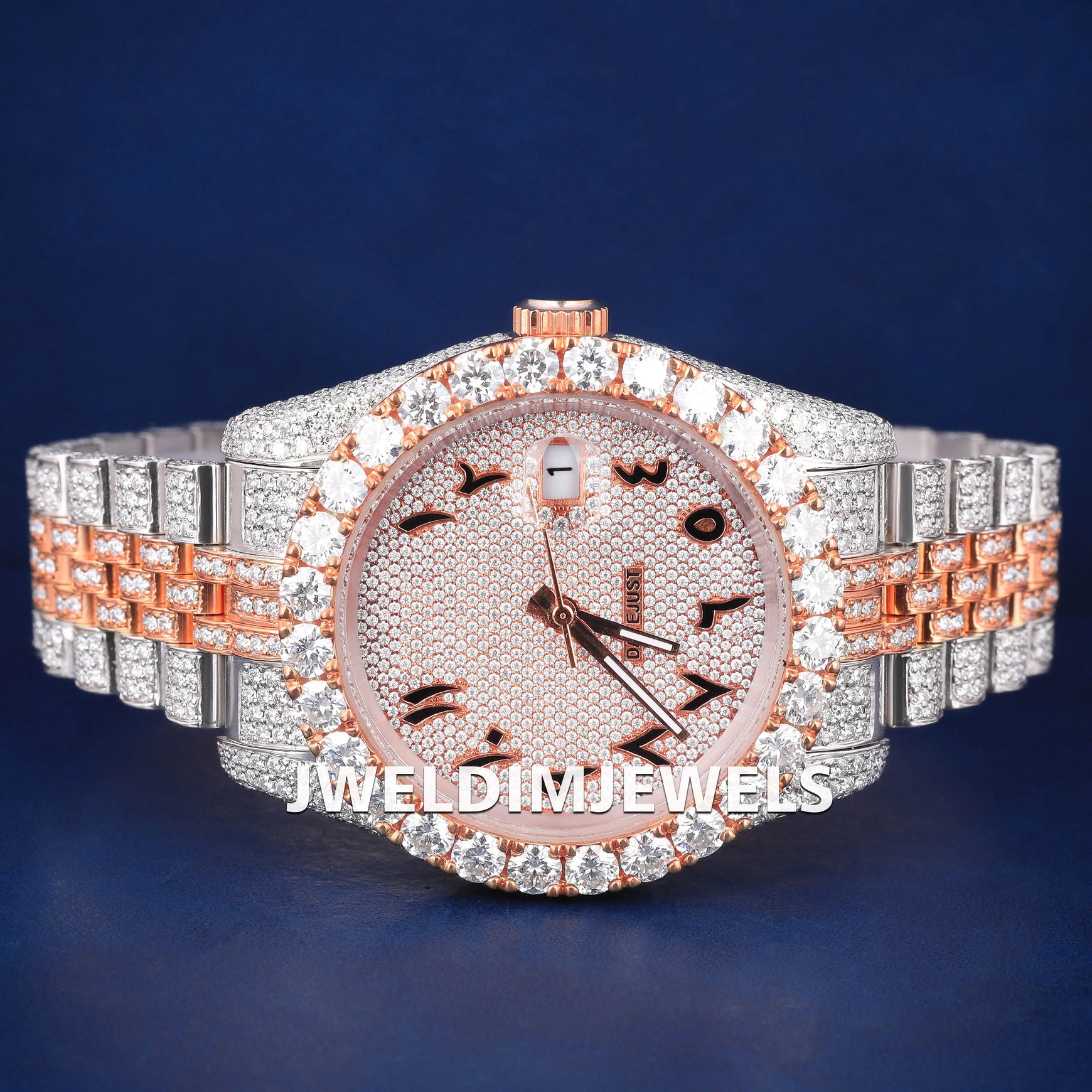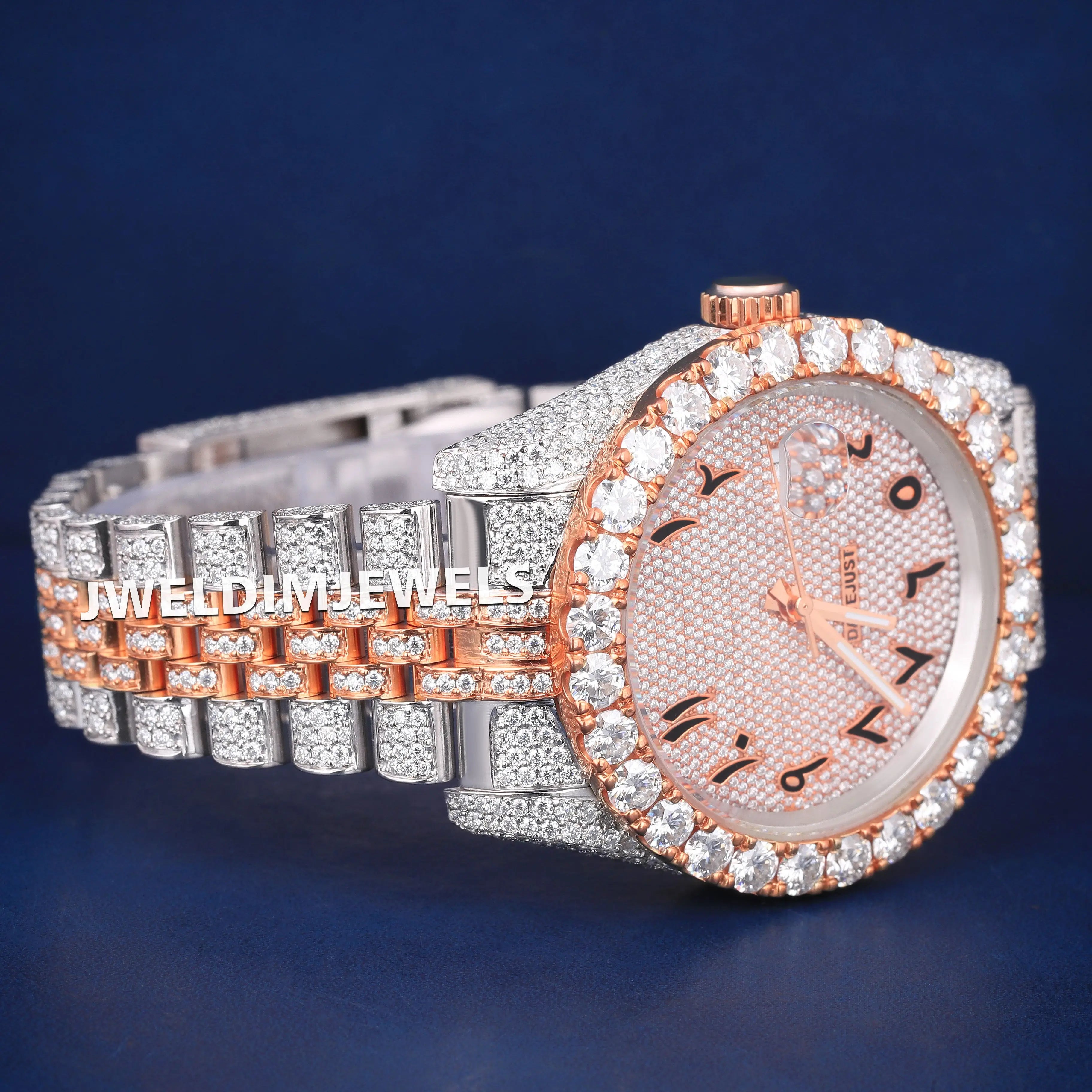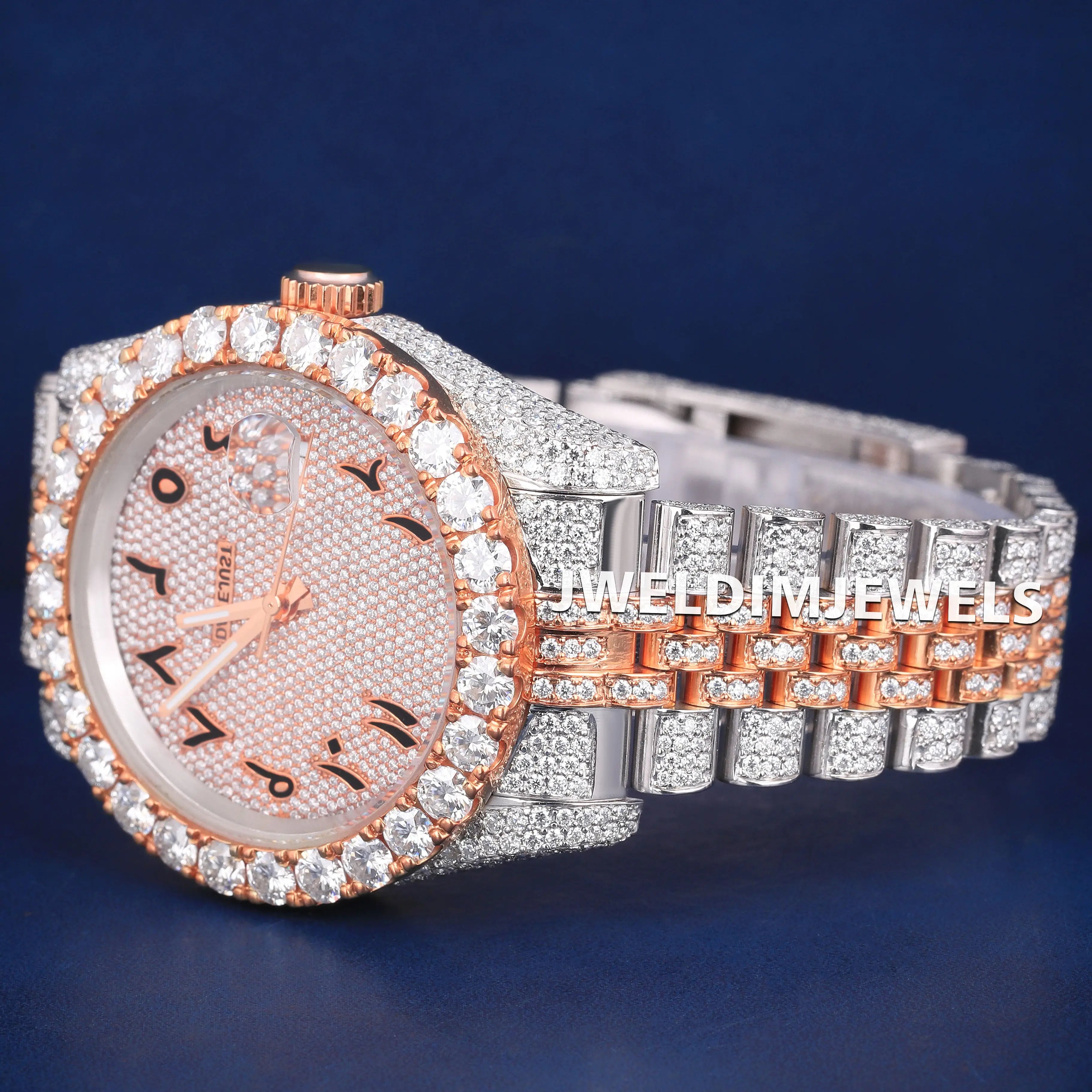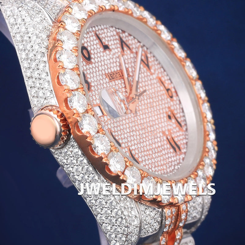 Luxury Fully Customized Watches Two Tone Arabic Dial Hiphop Watches Silver and Rose Iced Out Diamond Mens Watches