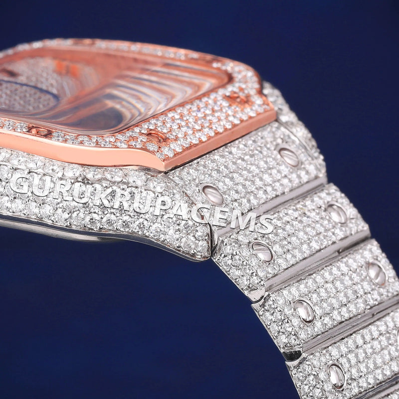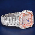 Two Tone Iced Out Diamond Watch with Multicolor Roman Numerical Dial and Custom Silver Rose Gold Color Bezel Watches