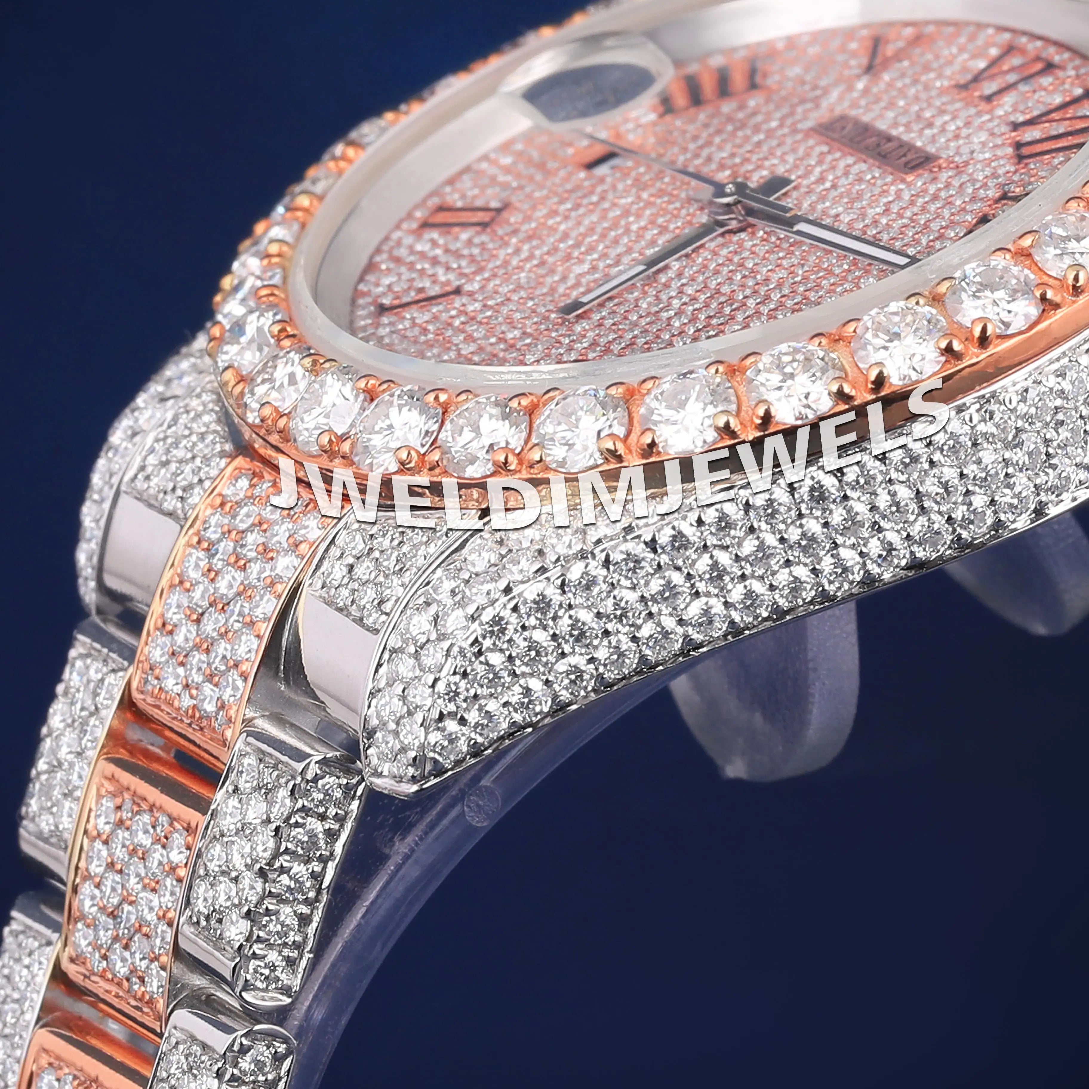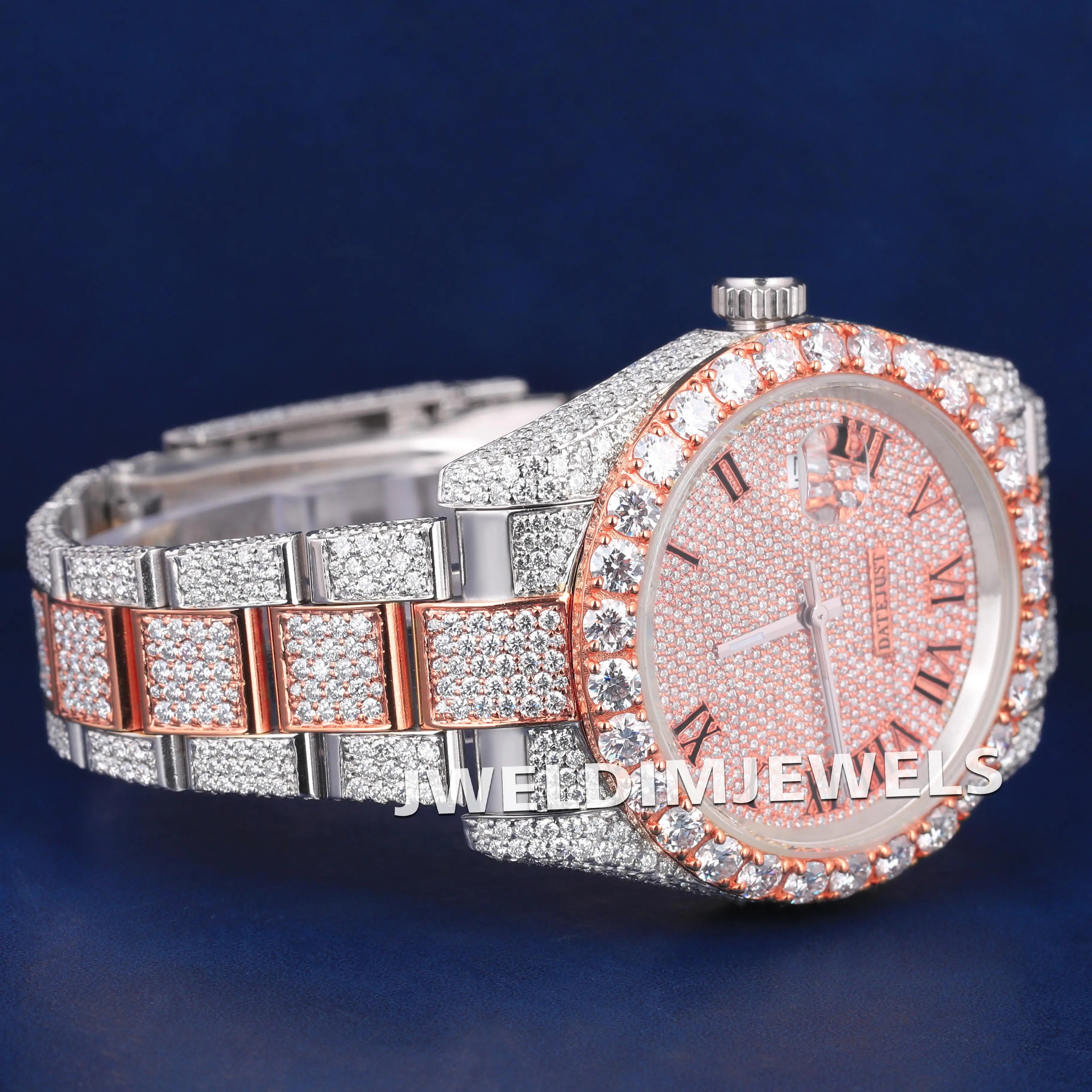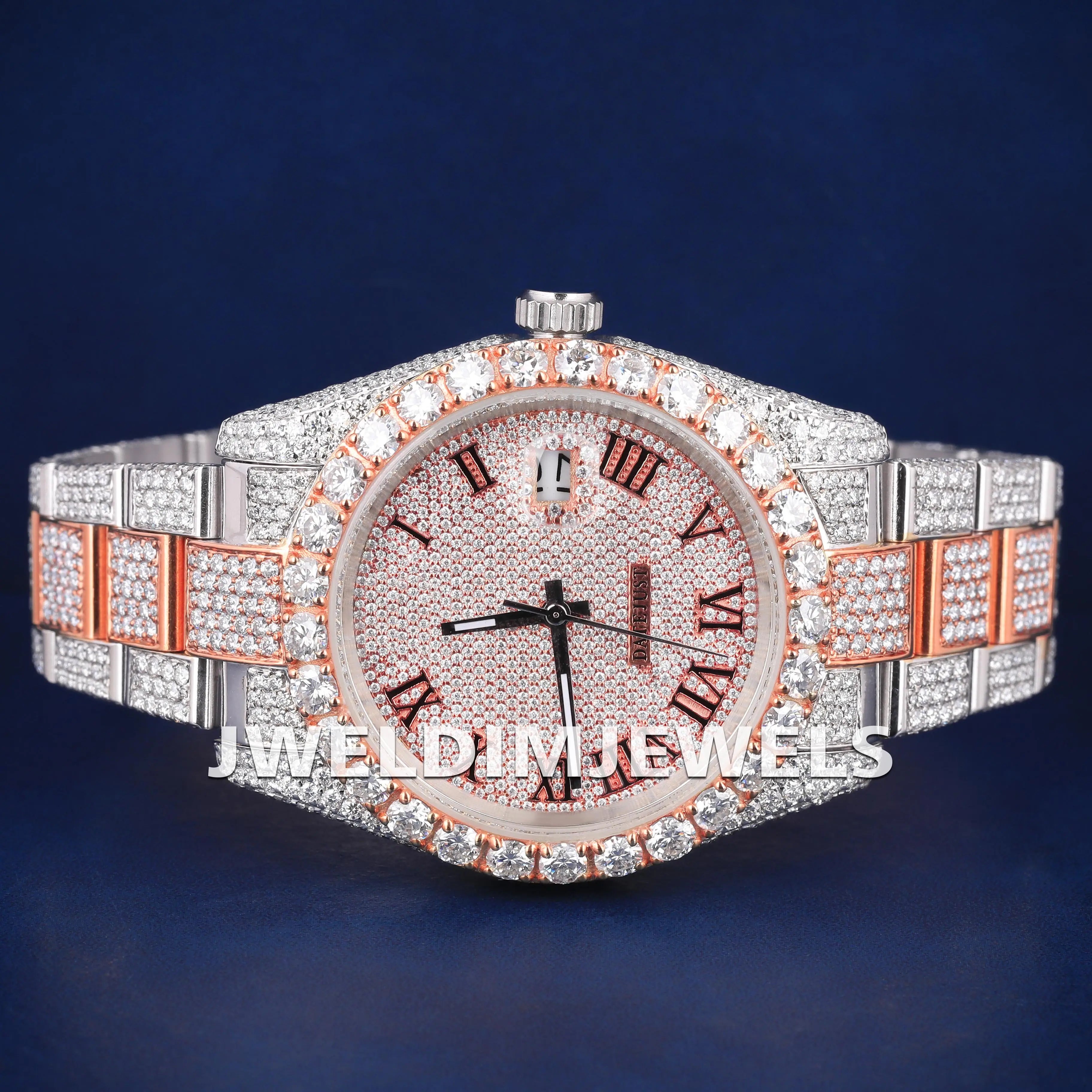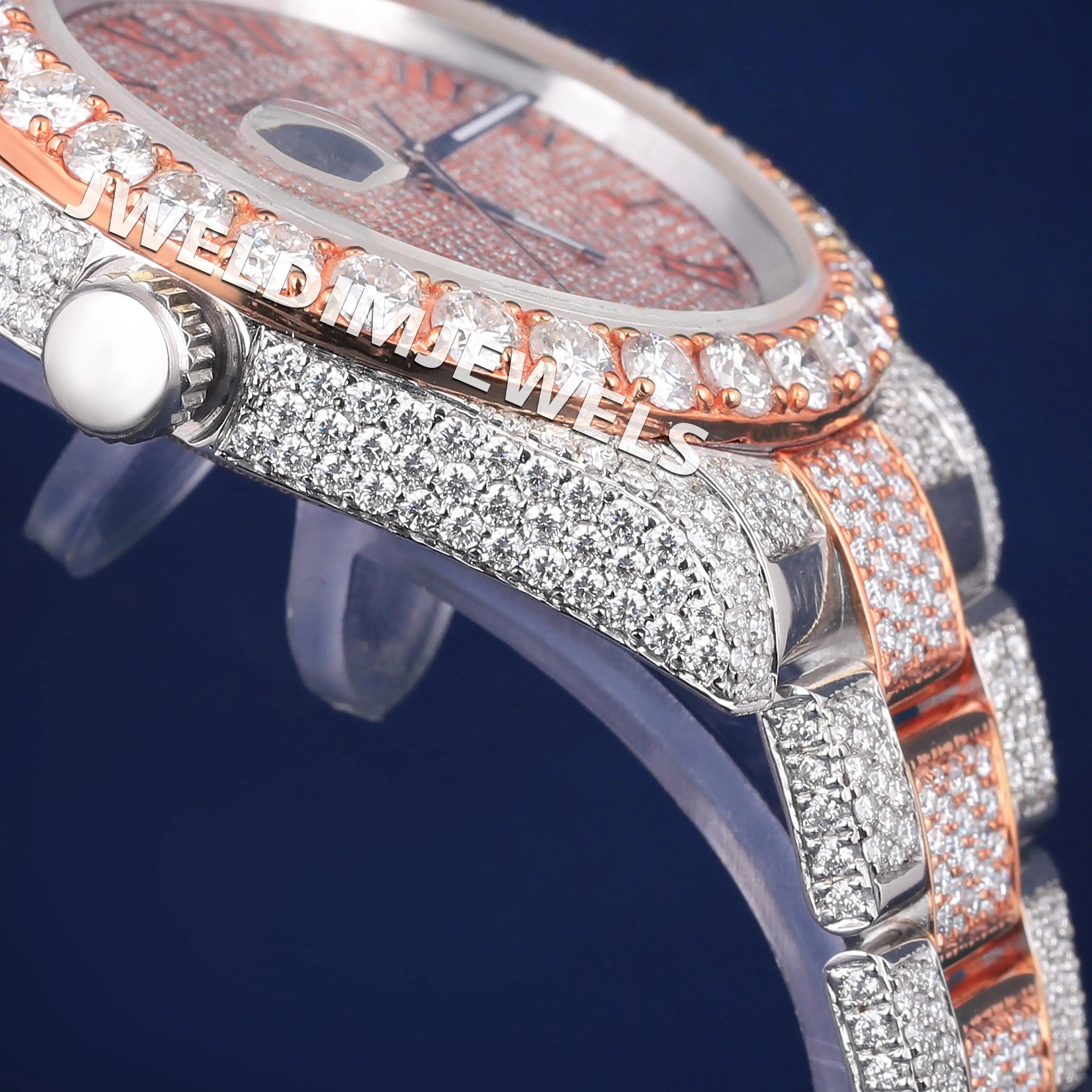 White & Rose Two Tone Full Icy Watches in Luxury Customized Diamond Rapper Watches