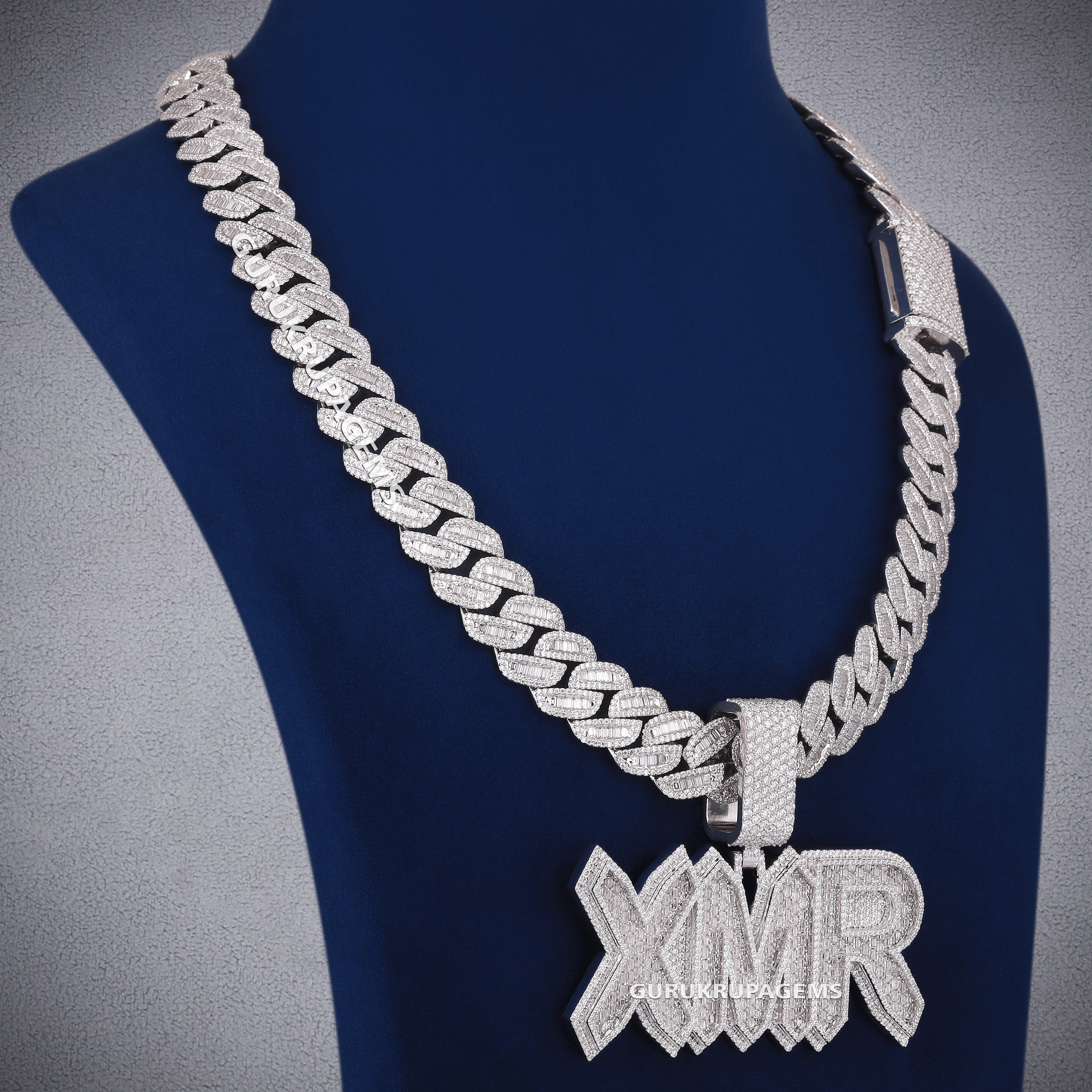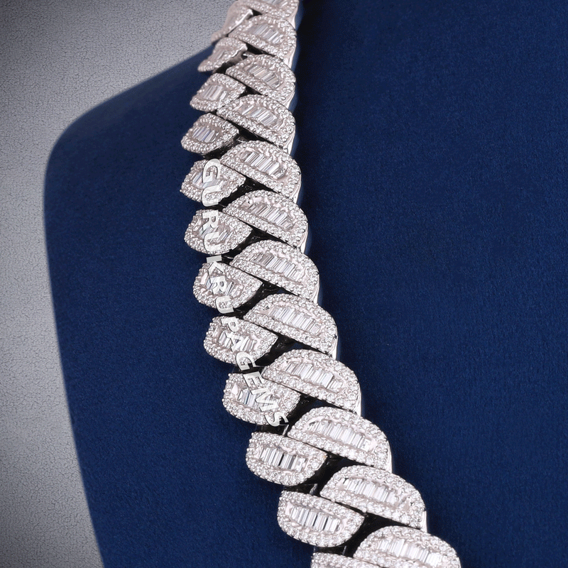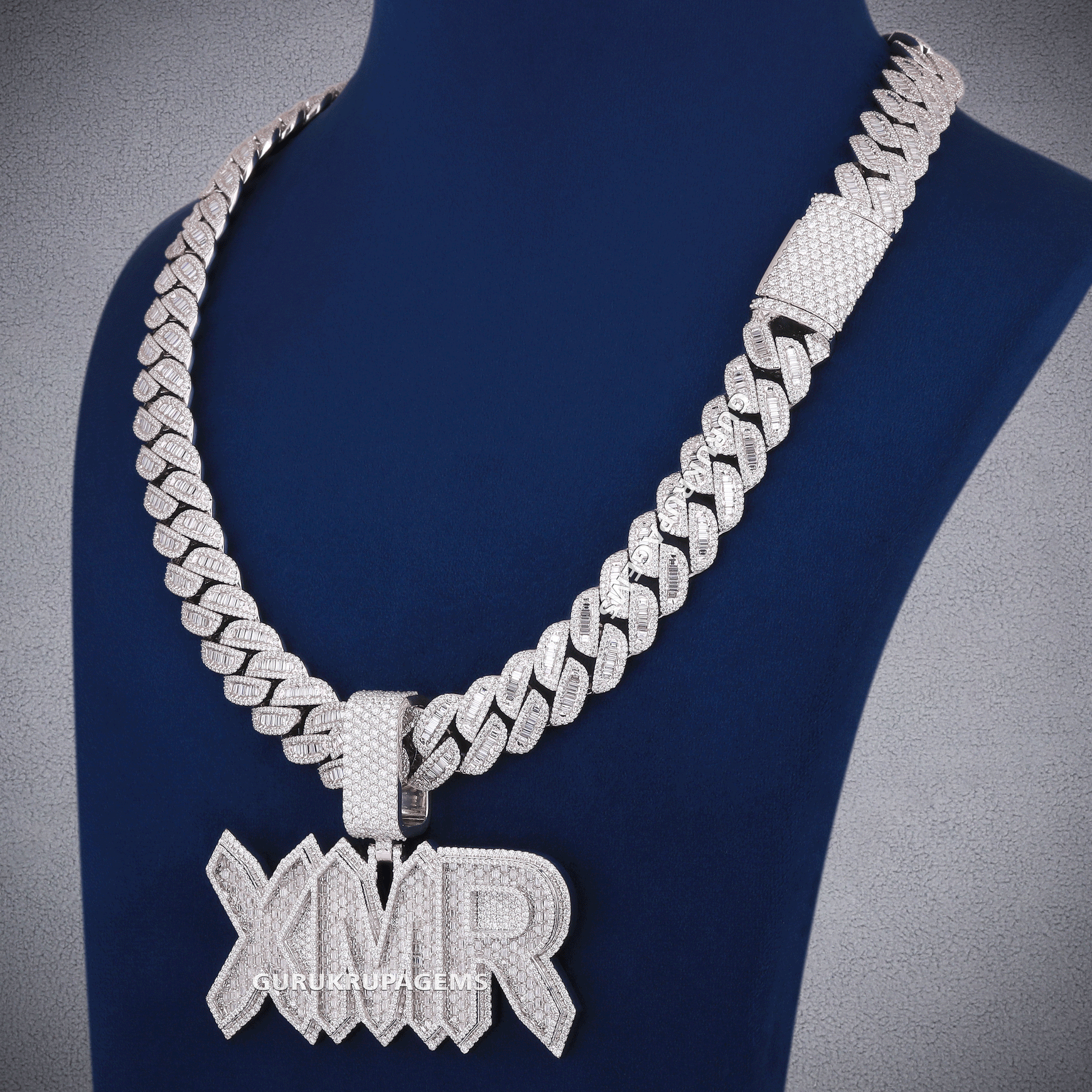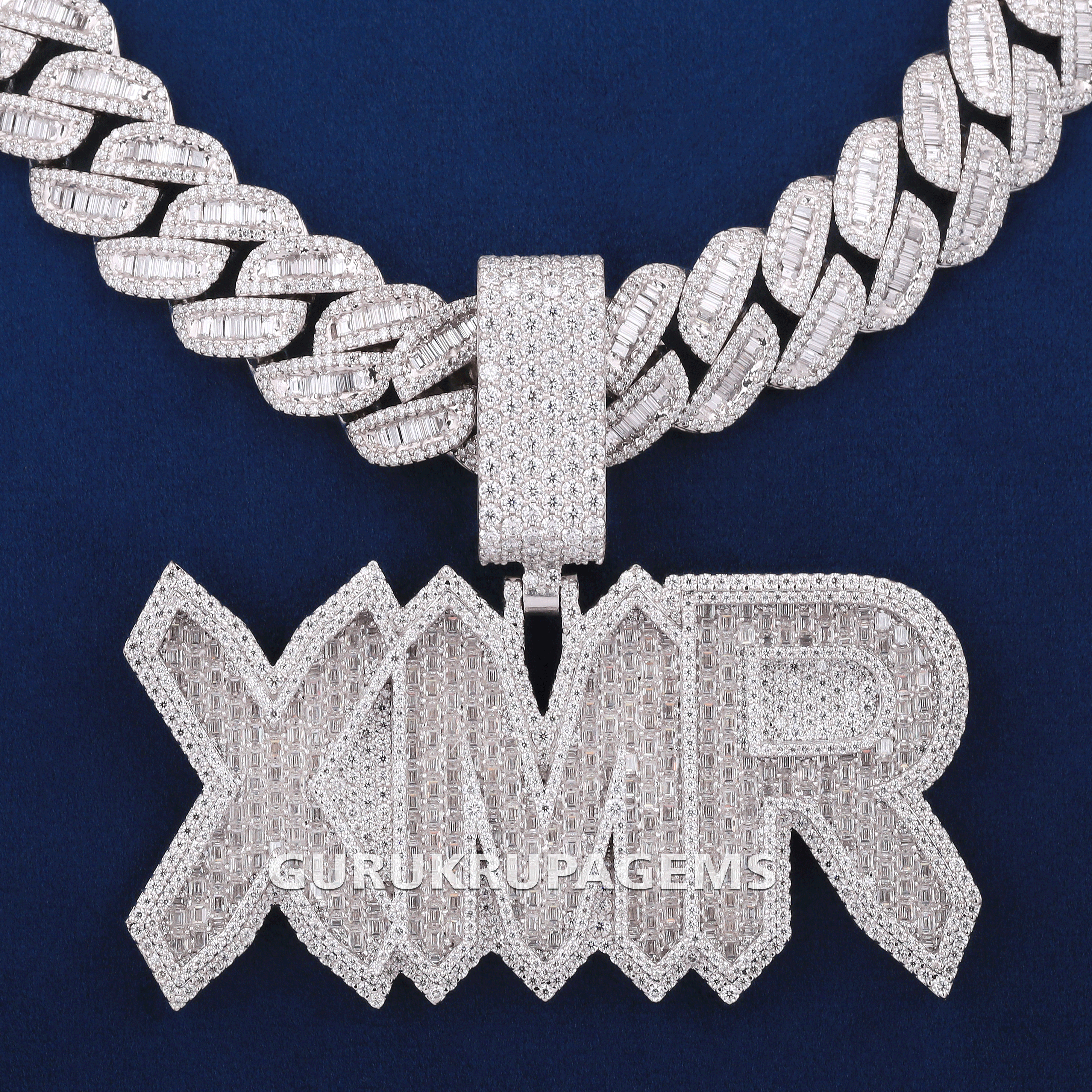 Personalized jewelry design big baguette letter chain pendant with cuban link