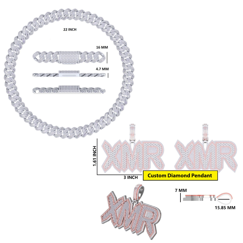 Men Women Custom Iced Out Big Baguette Letter Chain Pendant with 16mm Cuban Link Necklace VVS Diamond Personalized Jewelry