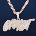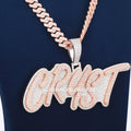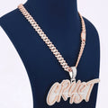 Two Tone Custom Name Pendant Chain with Rose and White Gold Iced Out Cuban Necklace