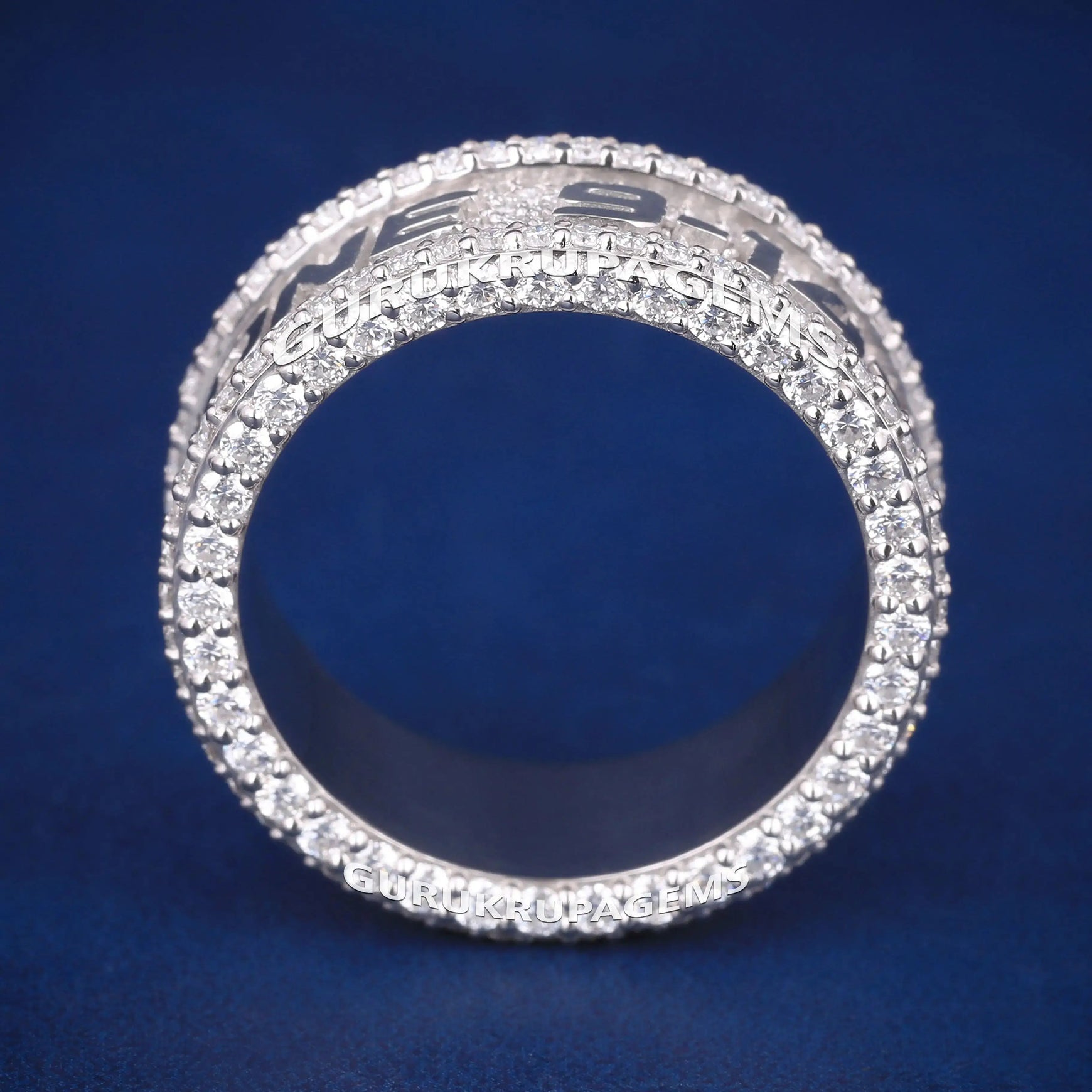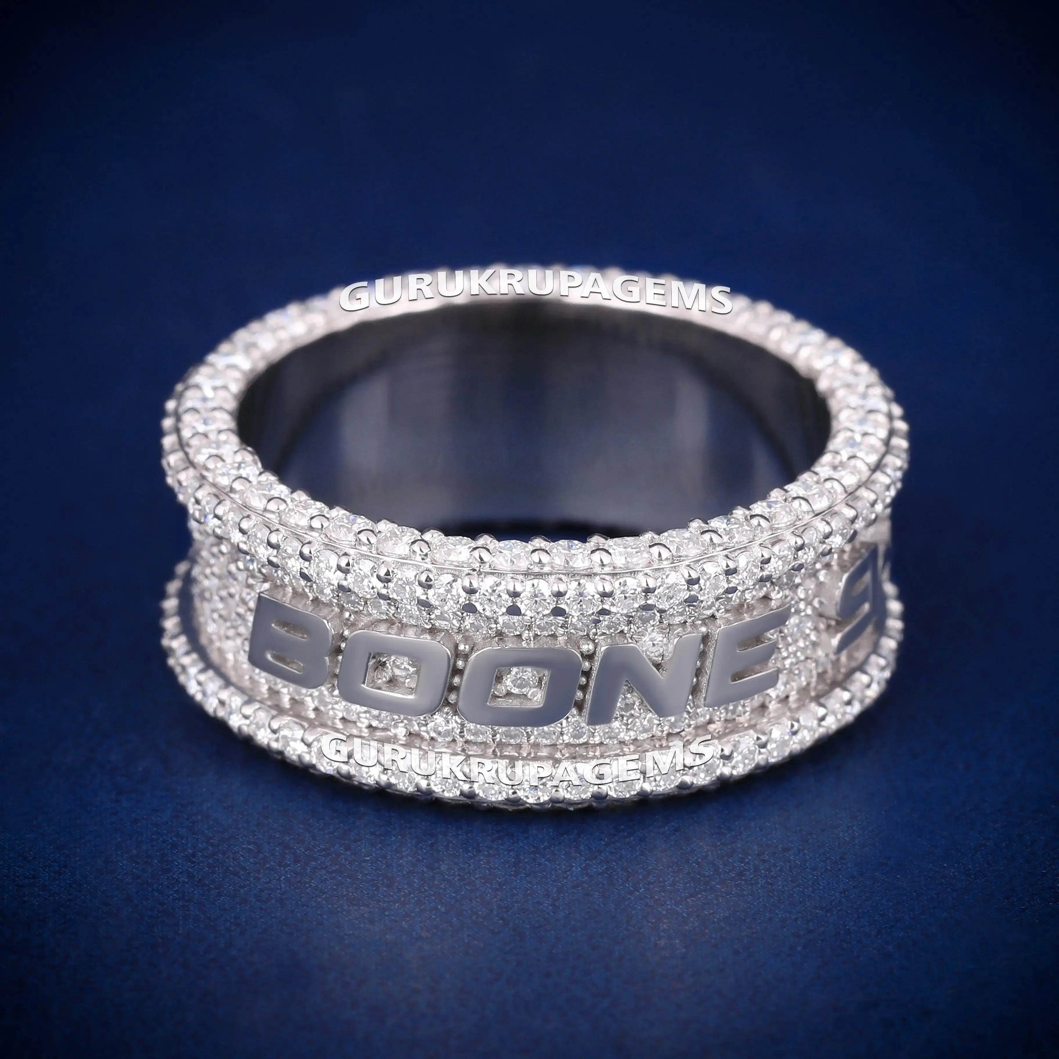 Custom Made HipHop Wedding Band Set with Silver 3ct Diamonds and Customized Name Letter Design