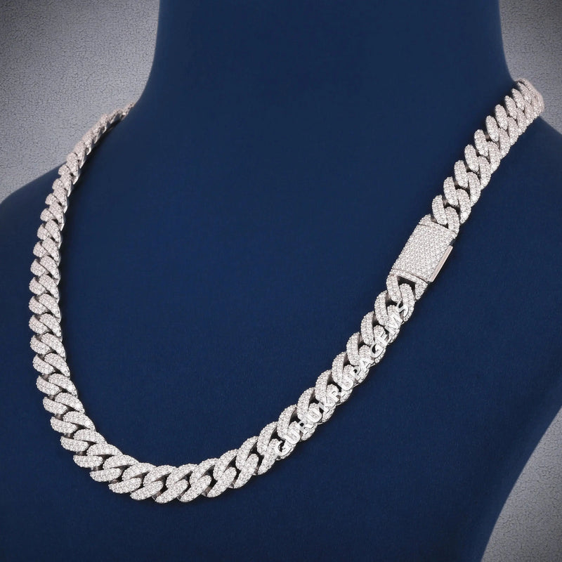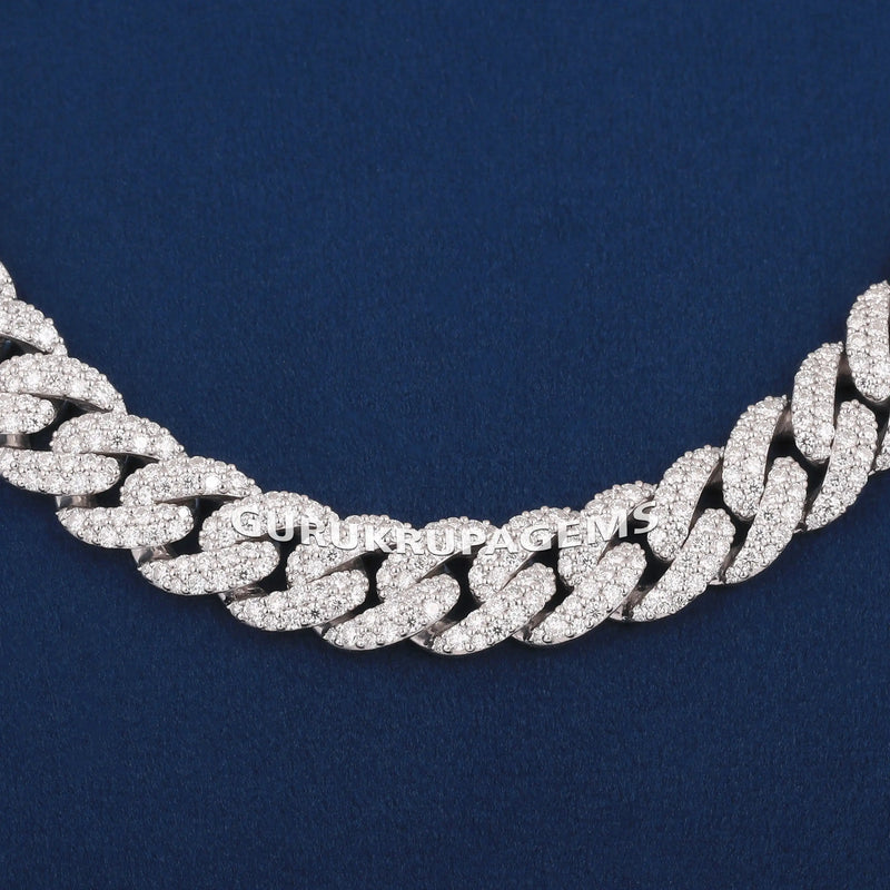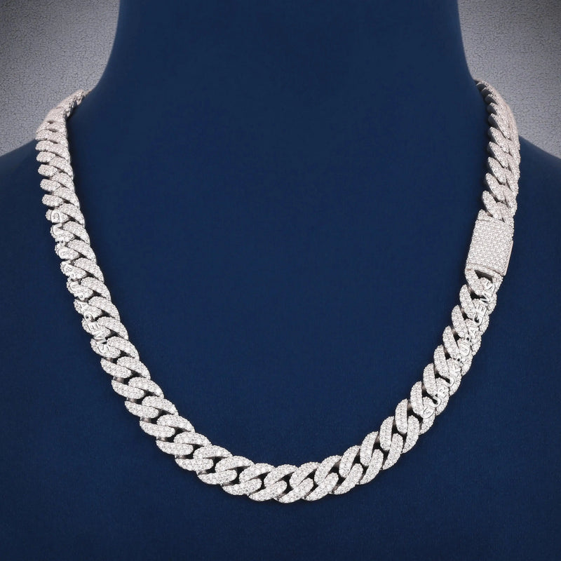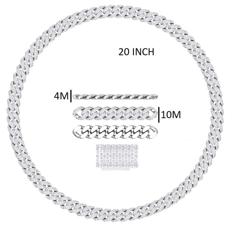 20 Inch 10mm White Cuban Chain Necklace for Unisex in Fully Iced Out Diamonds Every Time