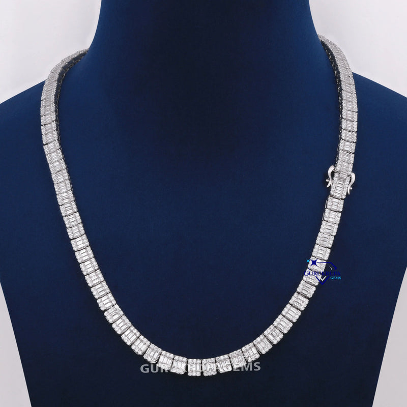 20 inch 12 mm Illusion baguette cut fine jewelry necklaces