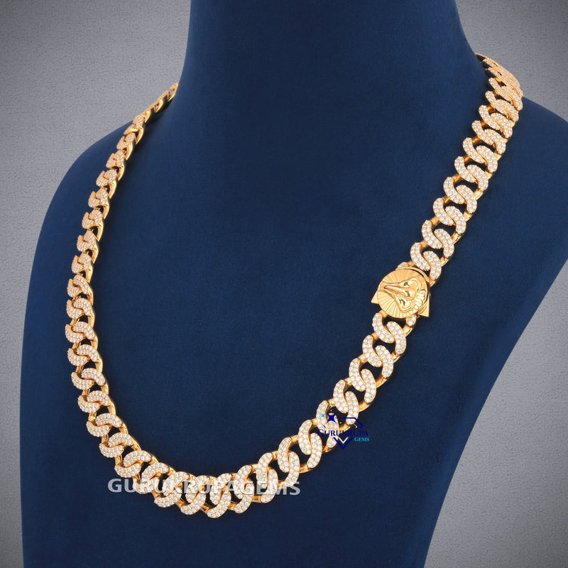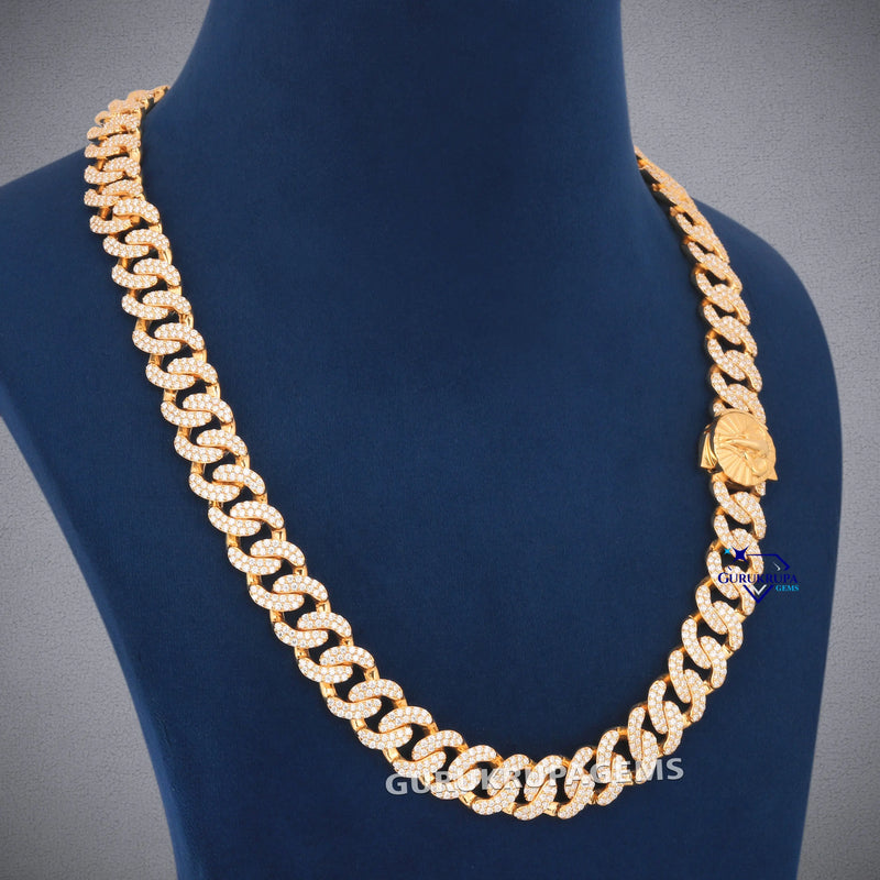 Premium hip hop jewelry full yellow gold diamond curb chain custom design