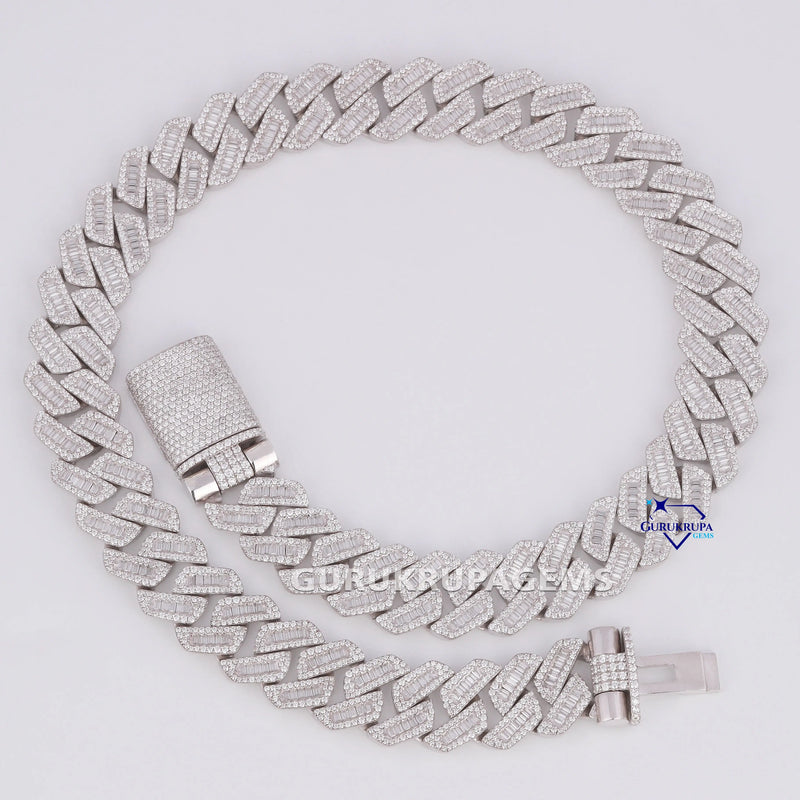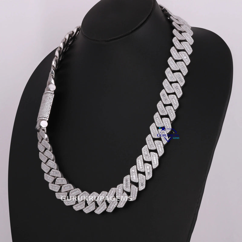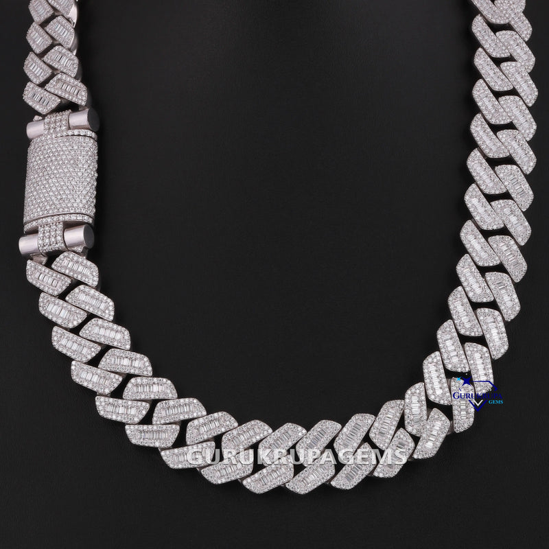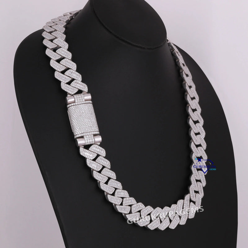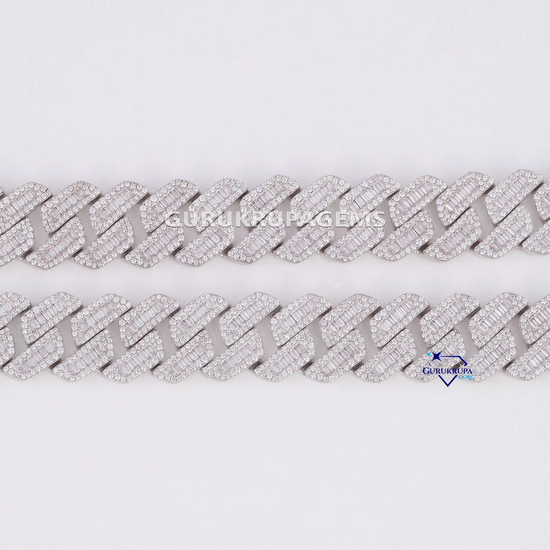 Cuban Chain for Unisex in 20 Inch 25mm Size with VVS Baguette & Round Diamond Detailing