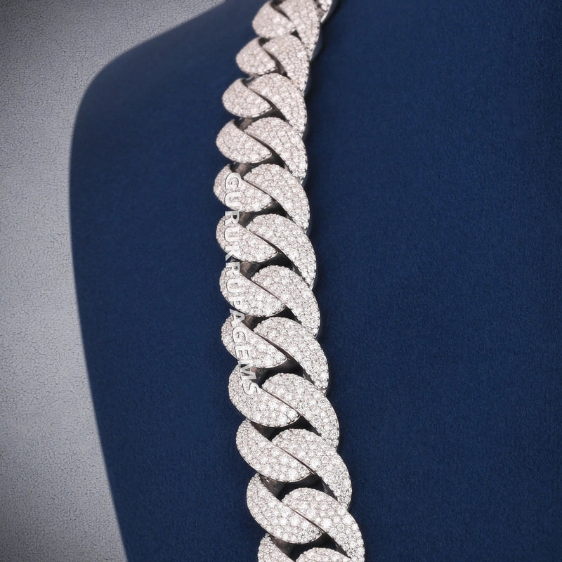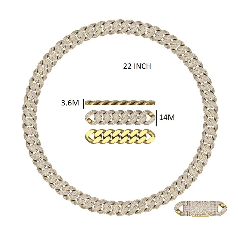 22 Inch 14mm Iced Out Miami Cuban Link Chain in White Gold with Fully Diamond Hip Hop Necklace