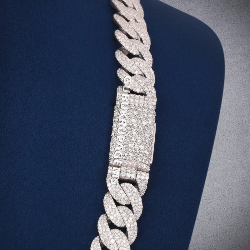 White Gold Jewelry Featuring an Iced Out Miami Cuban Link Chain 22 Inch 14mm