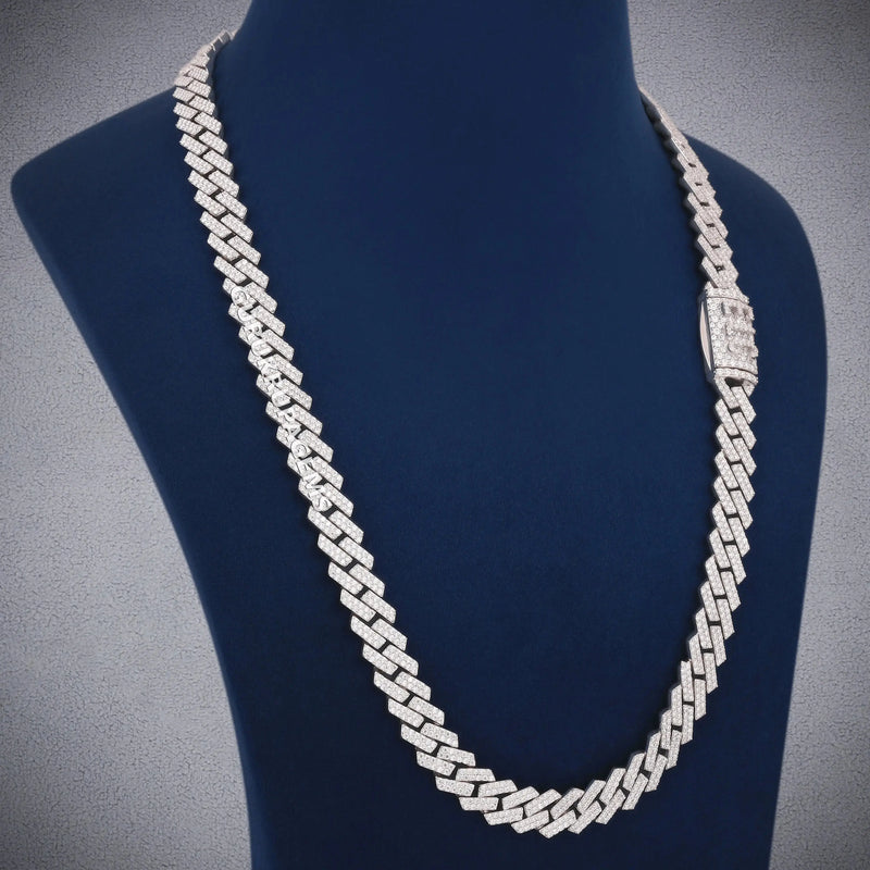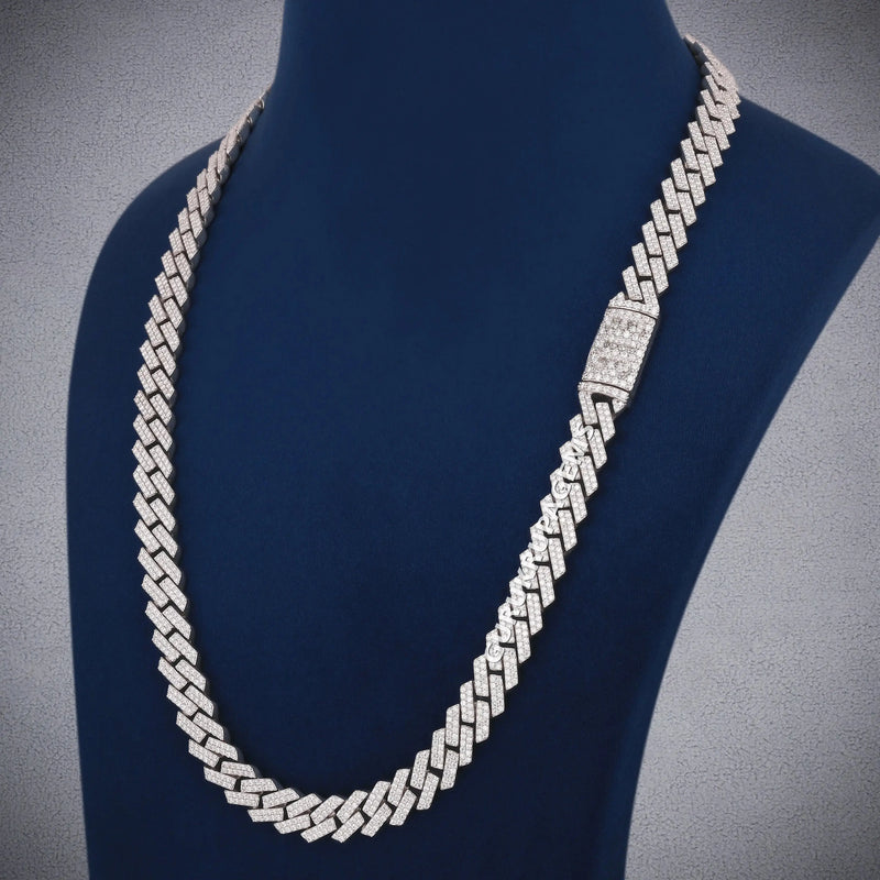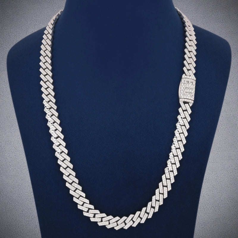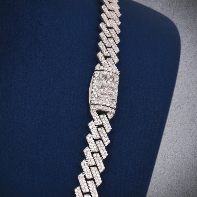 22 Inch 14mm Silver Diamond Cuban Link Chain Necklace with Fully Iced Out Shine for Mens