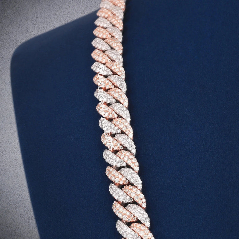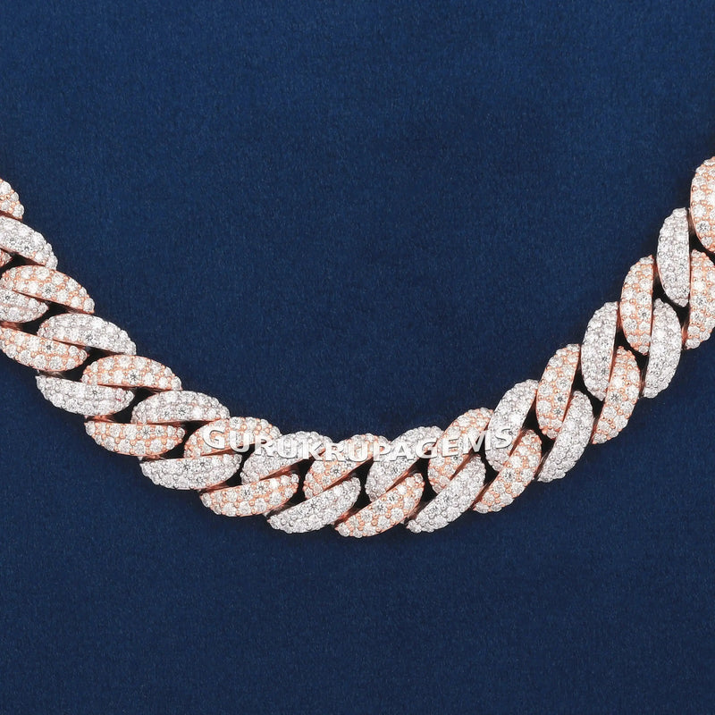 Two Tone Silver & Rose Gold Cuban Link Chain for Men