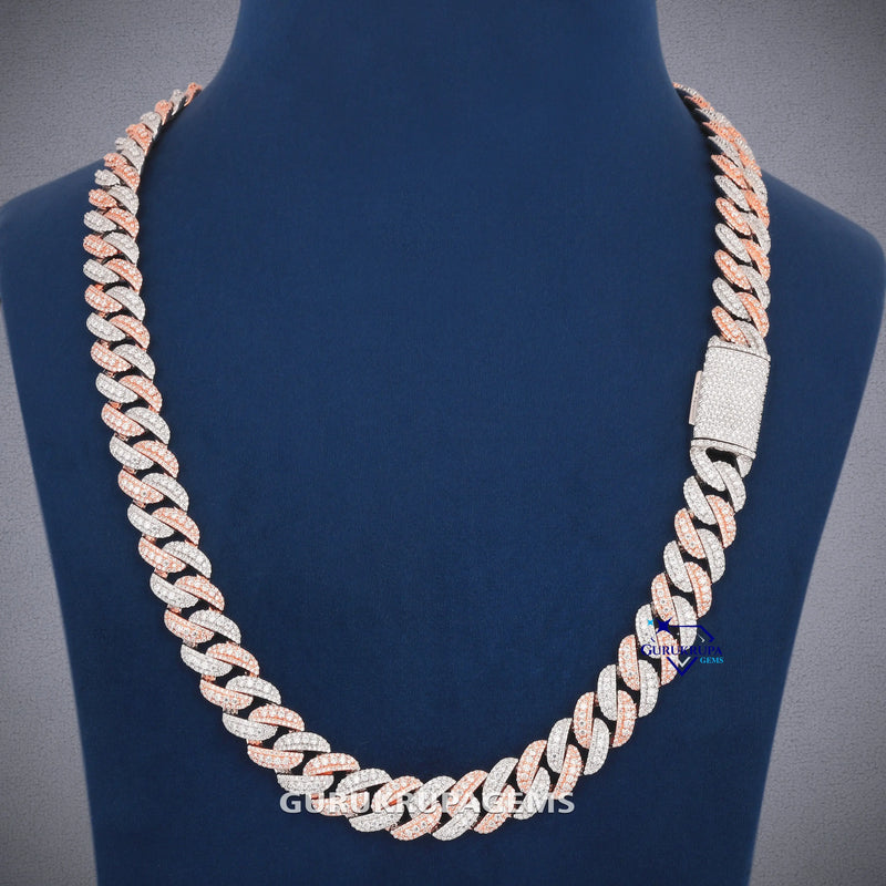 13MM 24 Inch Two Tone Cuban Diamond Chain with VVS Clarity Stones