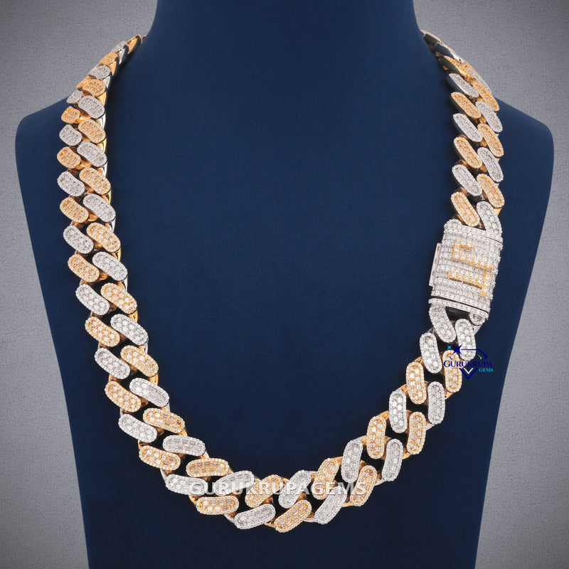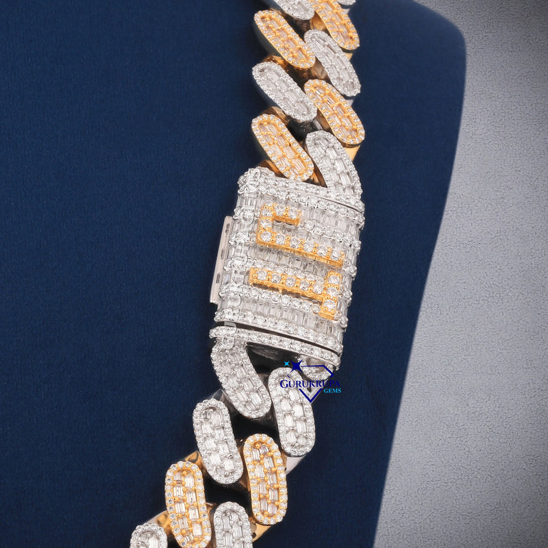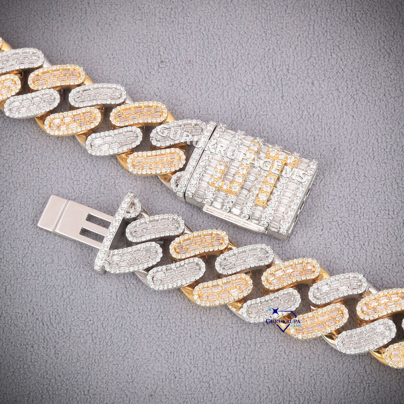 24 Inch 20 MM Two Tone Gold With Small Round And Baguette Cut Diamond Chain