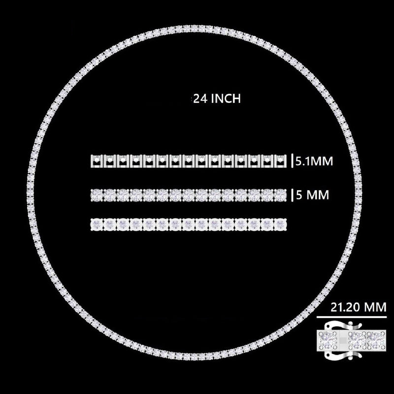24 Inch 5mm Custom Fully Iced Out Gold Lab Diamond Tennis Chain Necklace for Unisex