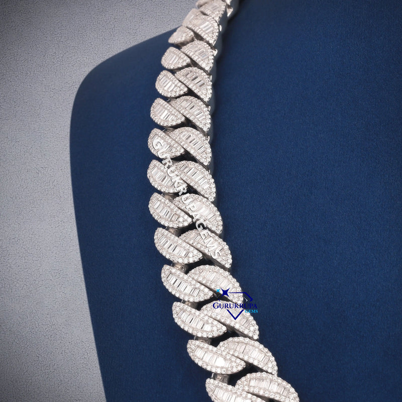 Baguette and round cut celebrity inspired miami cuban diamond chain