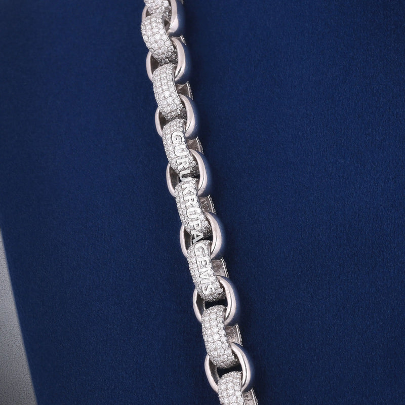 20 inch sterling silver belcher chain iced out round diamond necklace