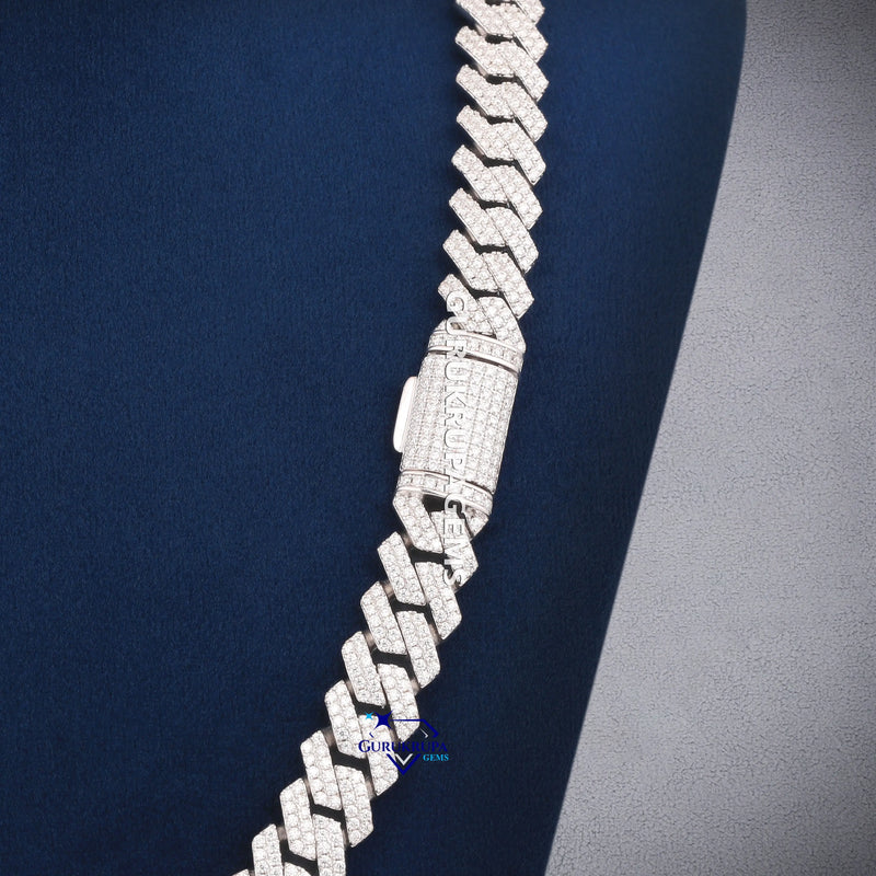 Iced out white gold Cuban link chain for men with full pave diamond setting