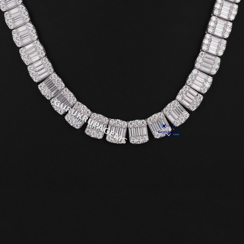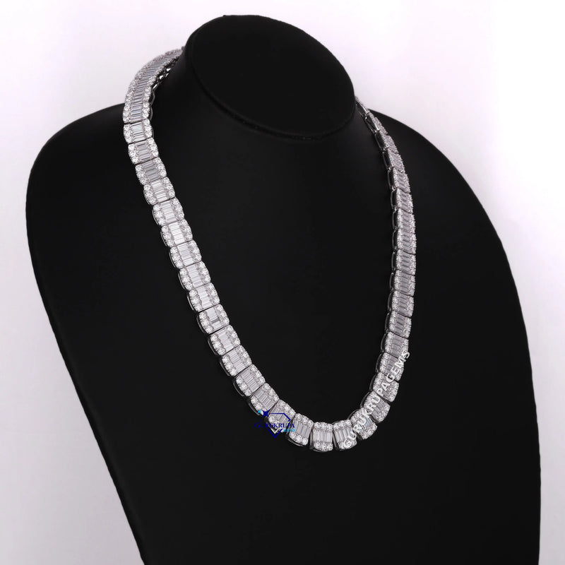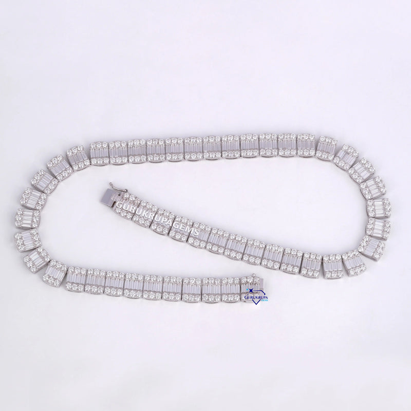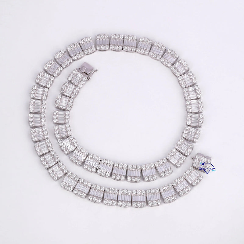 Newly launched 18 inch 12 mm hip hop illusion chain crafted in baguette and round cut lab grown diamonds with vvs clarity