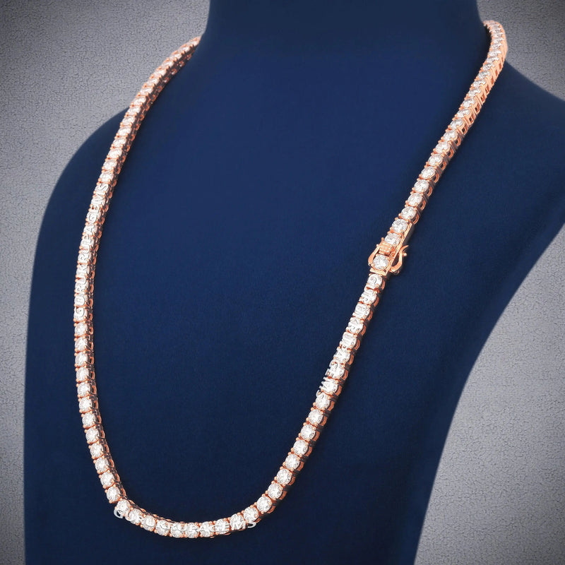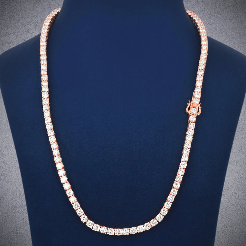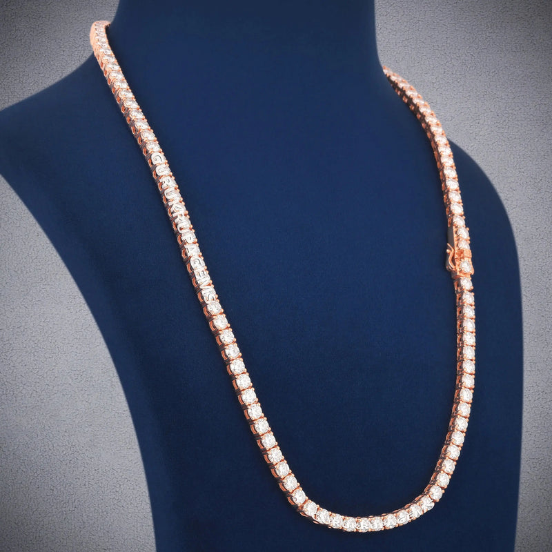Rose Gold Diamond Tennis Chain 24 Inch 4mm Iced Out Necklace for Men and Women Hip Hop Jewelry