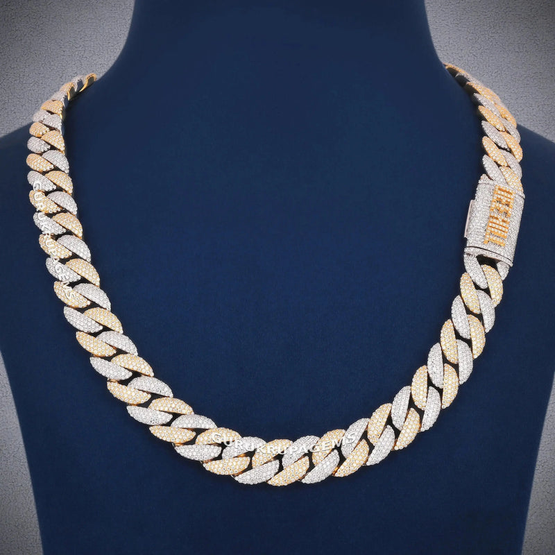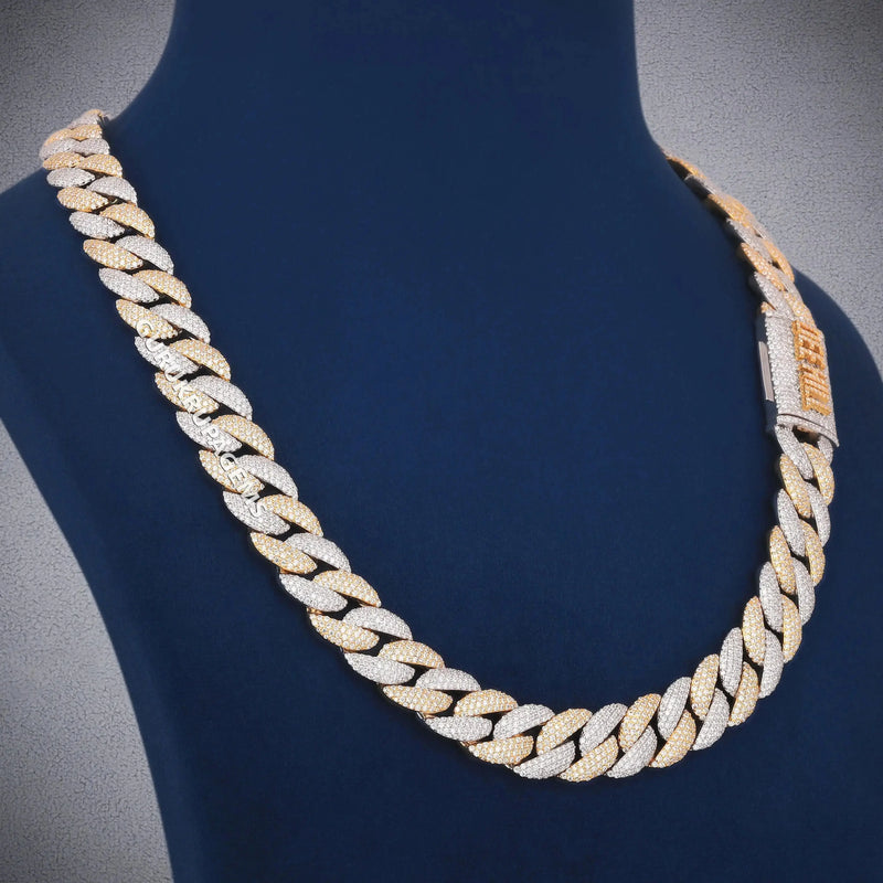 Two Tone Diamond Cuban Link Chain Necklace for Men and Women