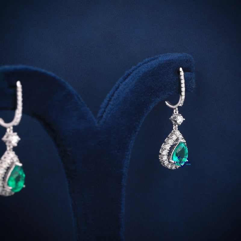 Pear Green Gemstone Diamond Earrings – Wedding Shine with Regal Vibes 💚