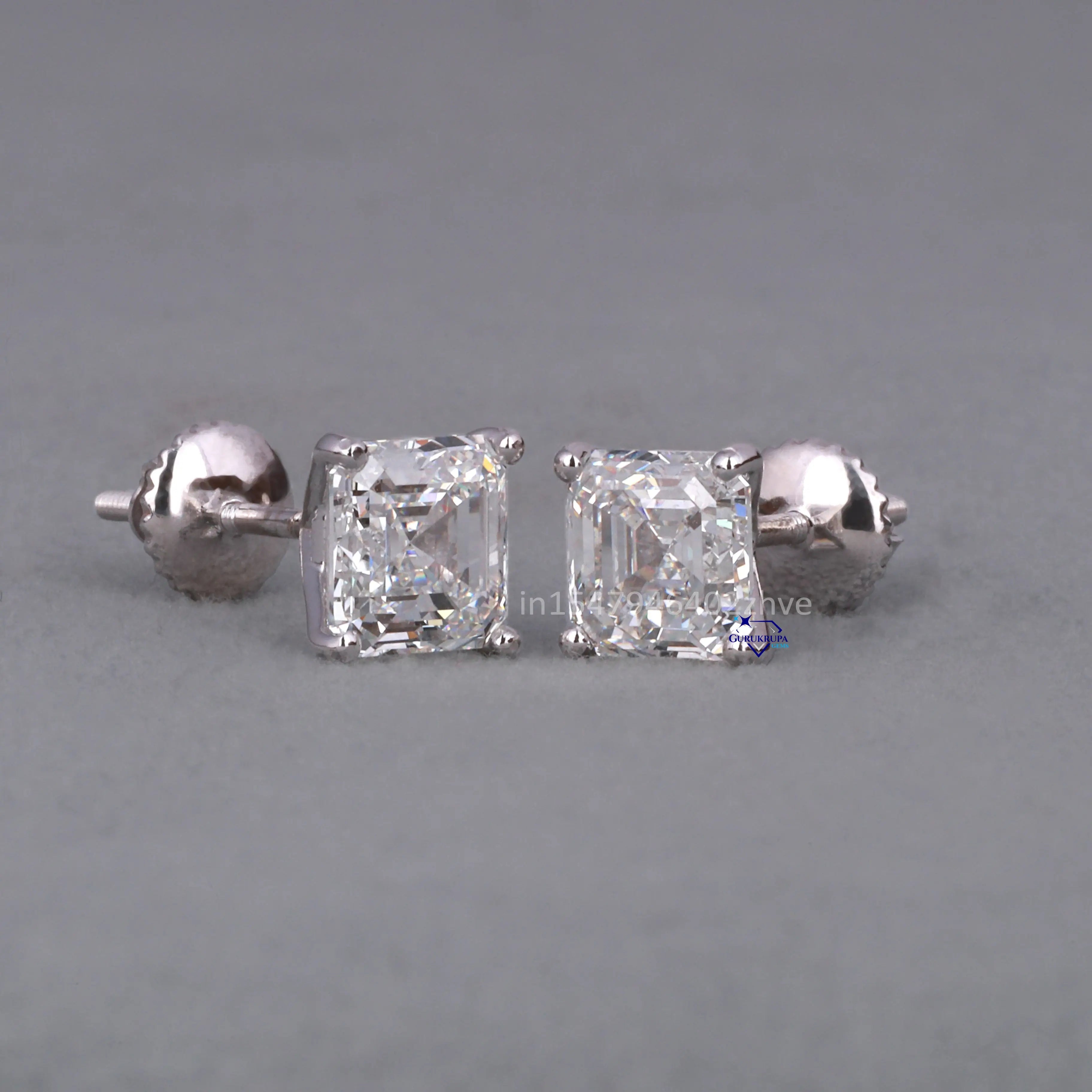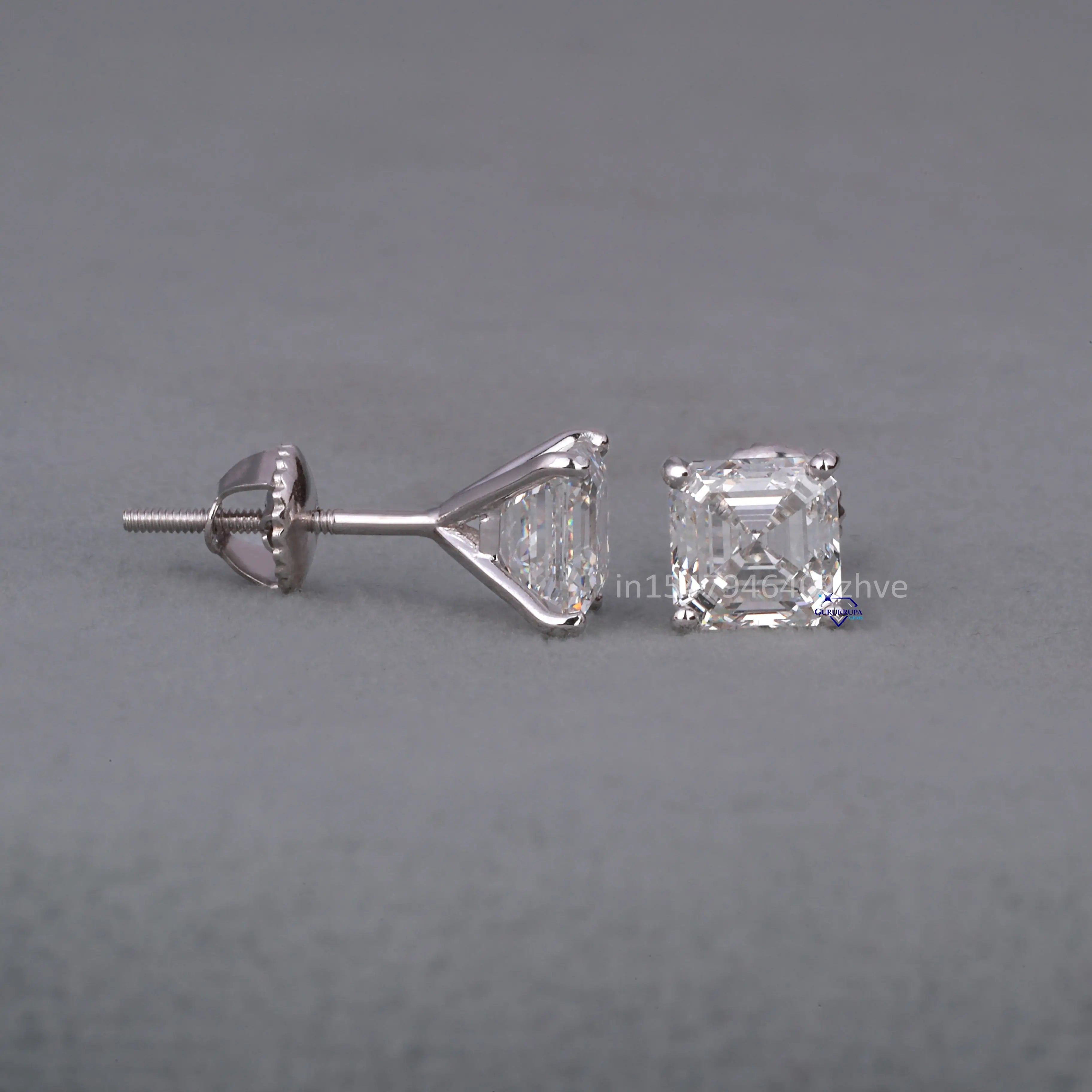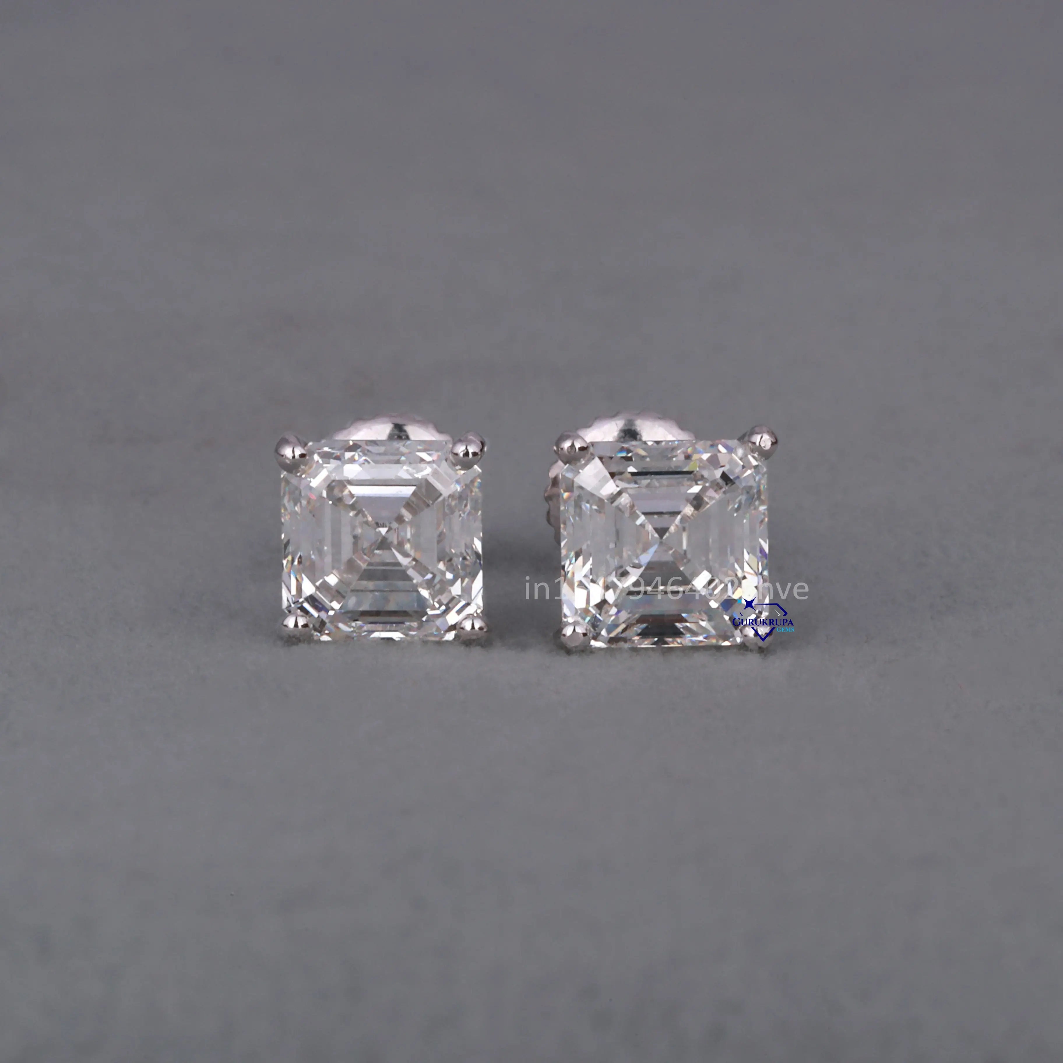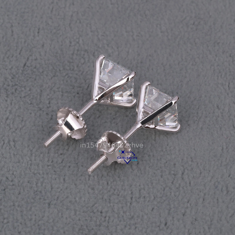 Daily wear trending beautiful asscher cut labgrown diamond earring made in 14kt white gold
