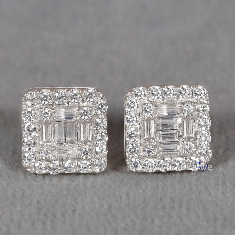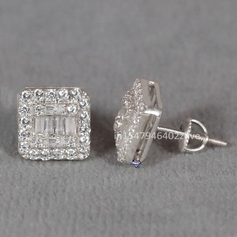 Illuminating Your Beauty with graceful round and baguette cut diamond earring in 14 kt white gold for women wore at any occasion