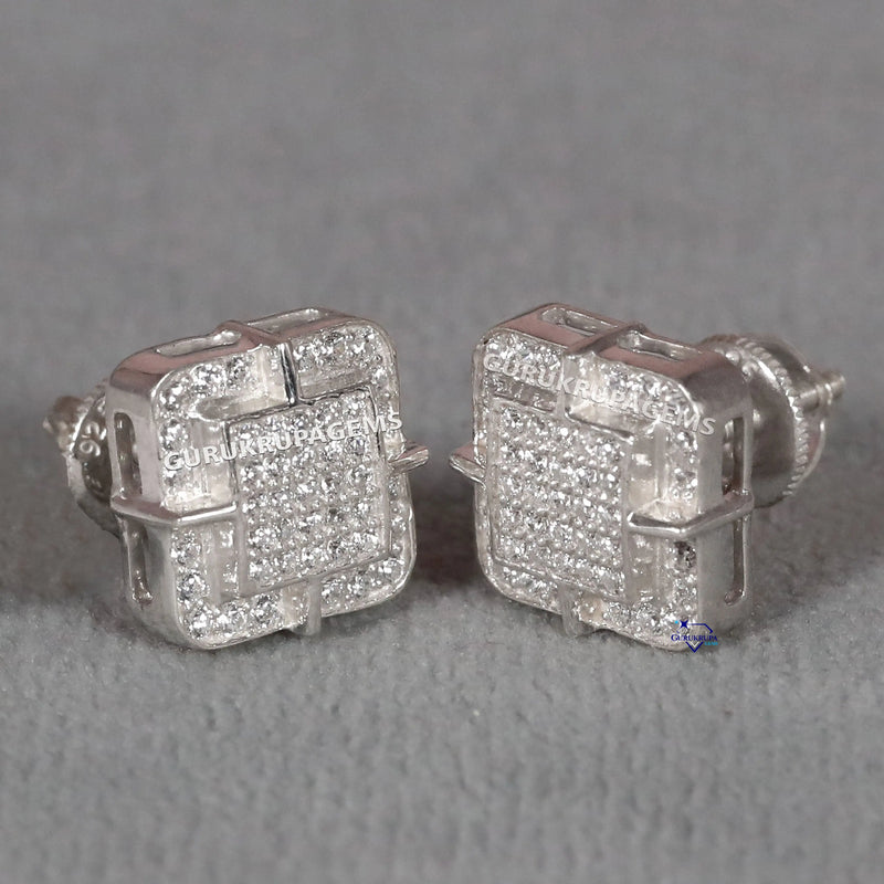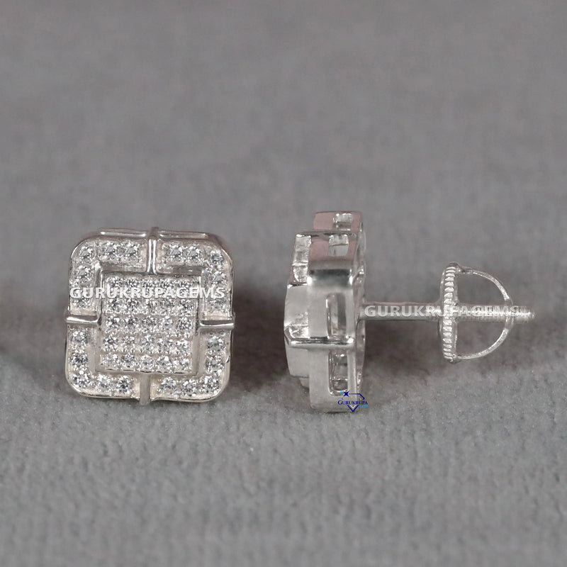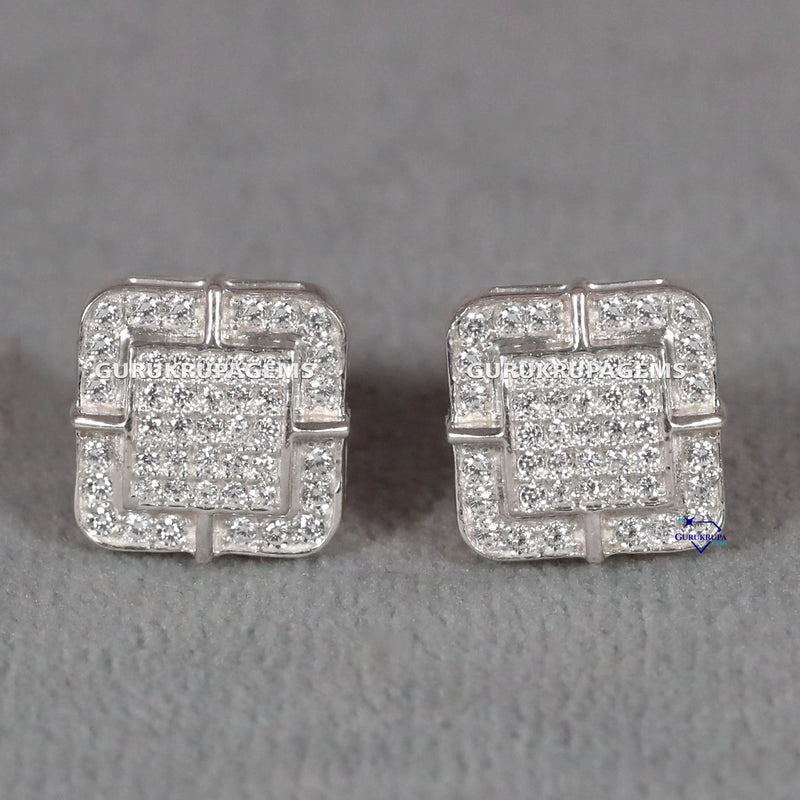 White Gold Diamond Earring – Square Studs with Big League Energy