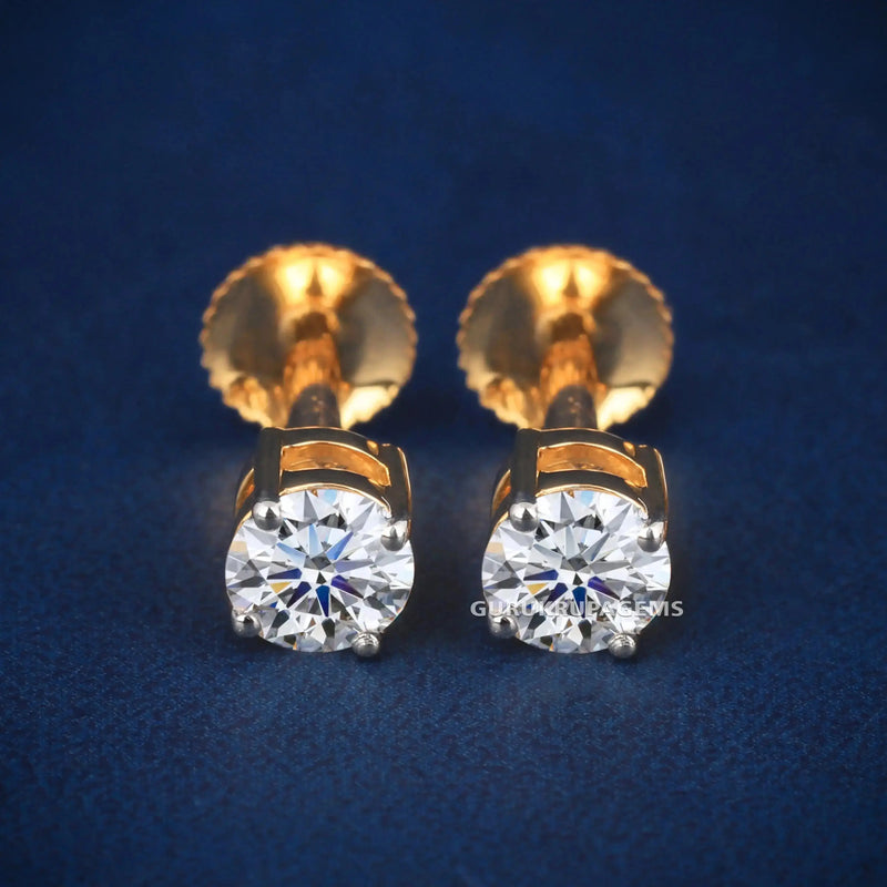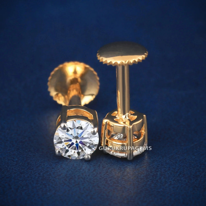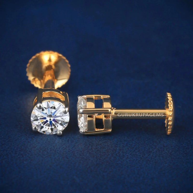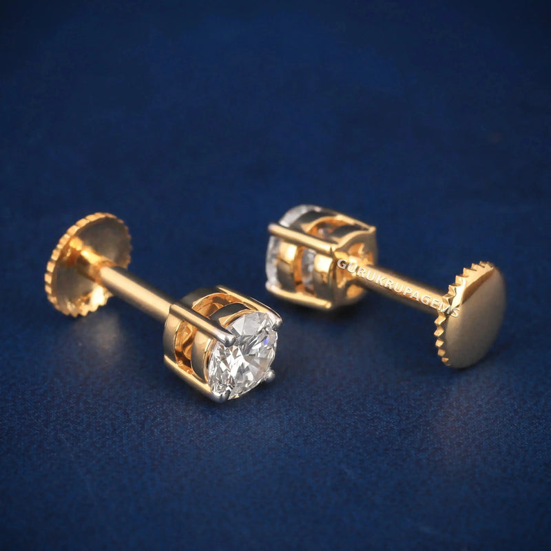 Elegant Daily Wear Gold Solitaire Stud Earrings in Brilliant Finish