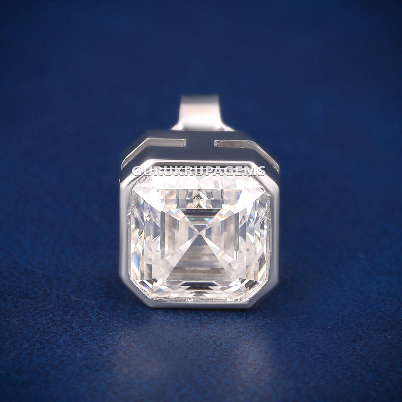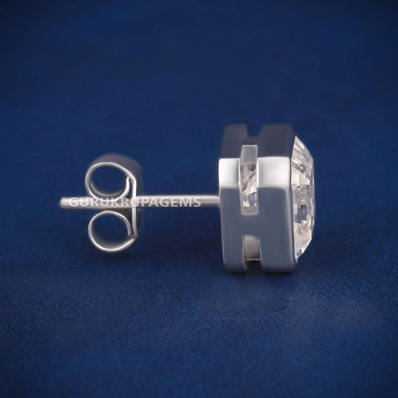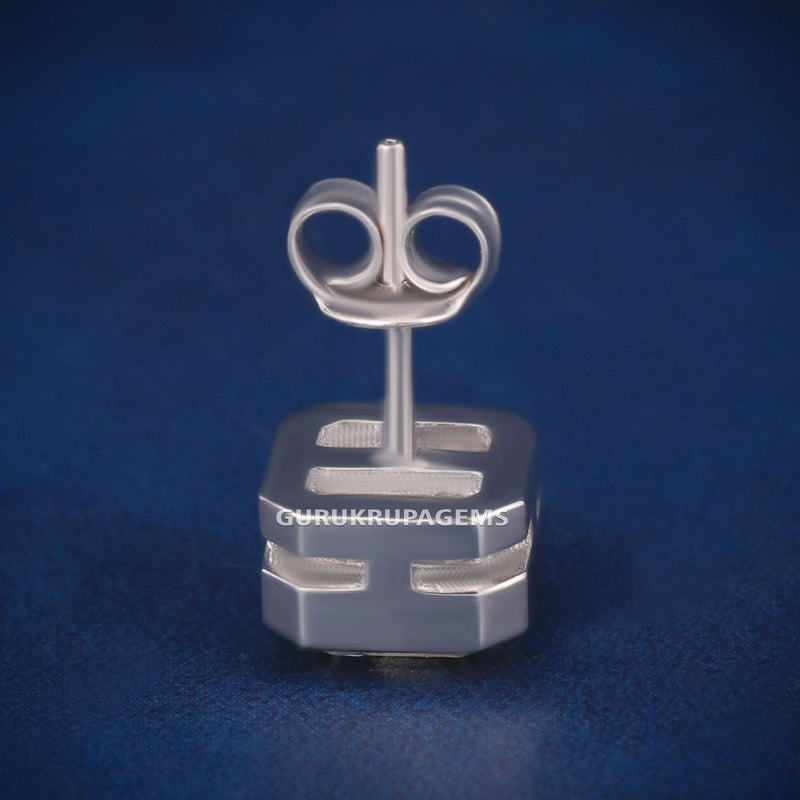 White Gold Single Diamond Stud Earring with Asscher Cut Stone and Full Iced Hip Hop Look for Men