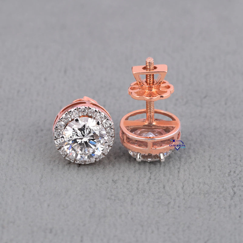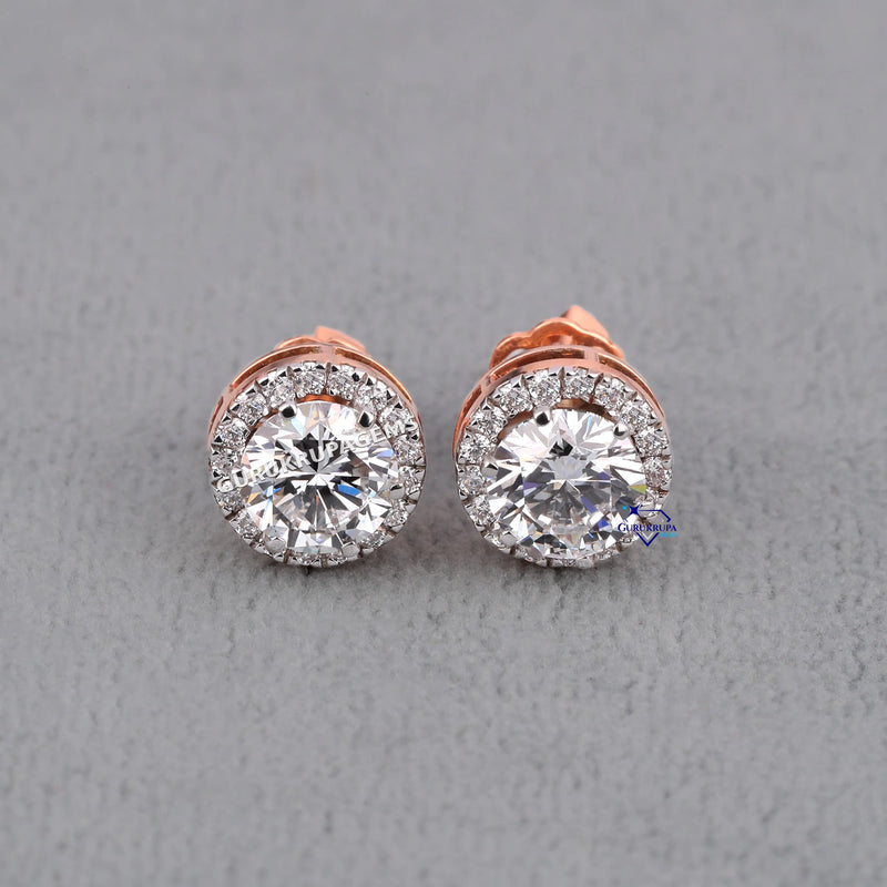 Womens Halo Setting Diamond Earrings – Round Cut VVS Shine for Everyday Drip