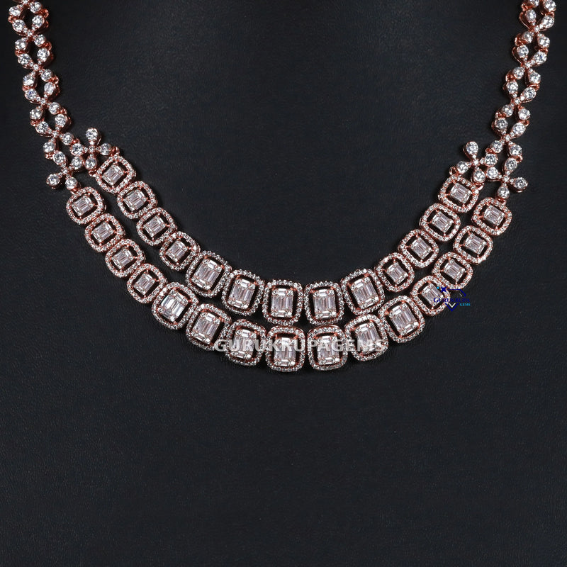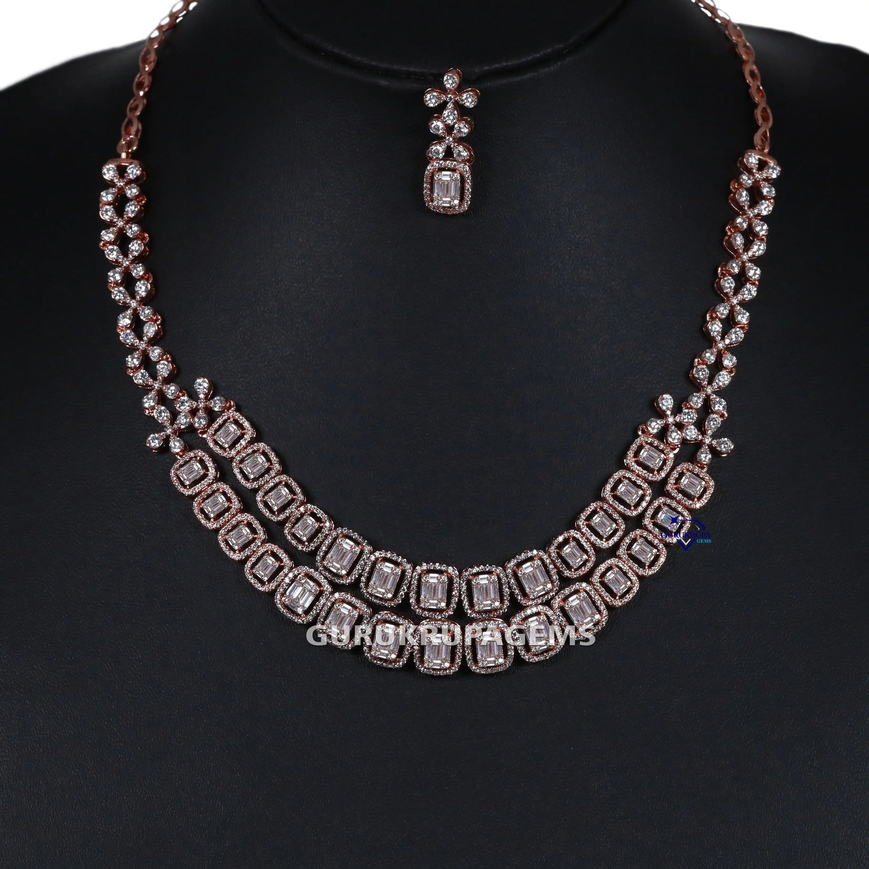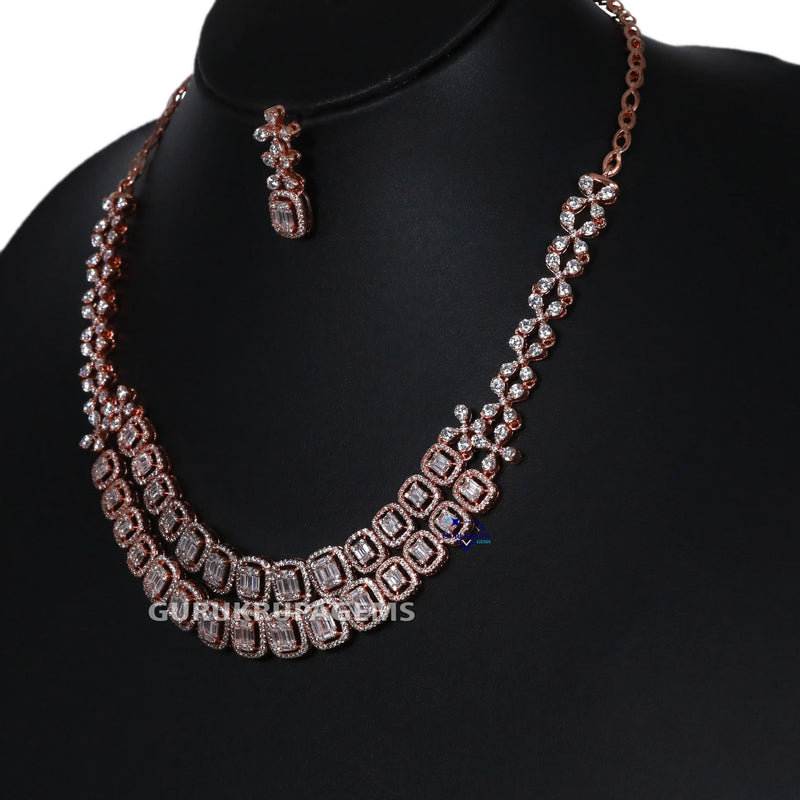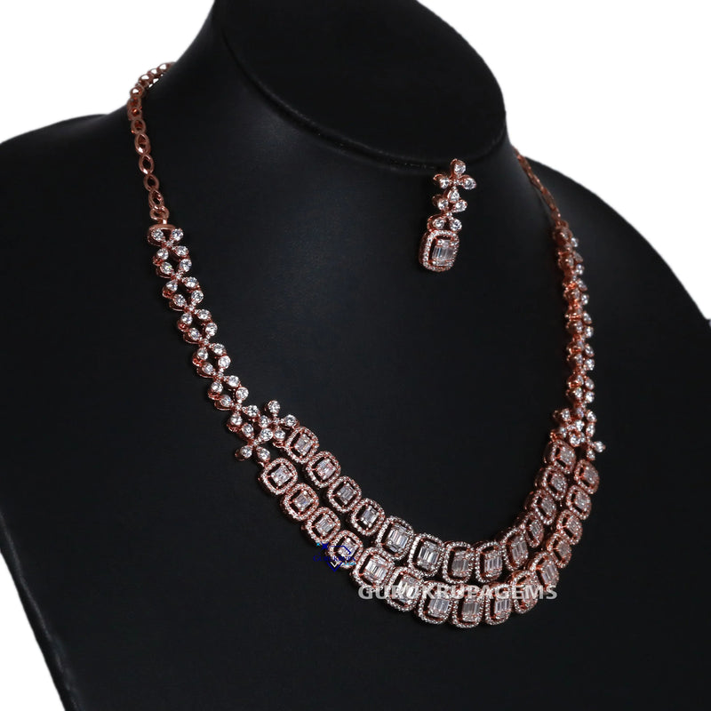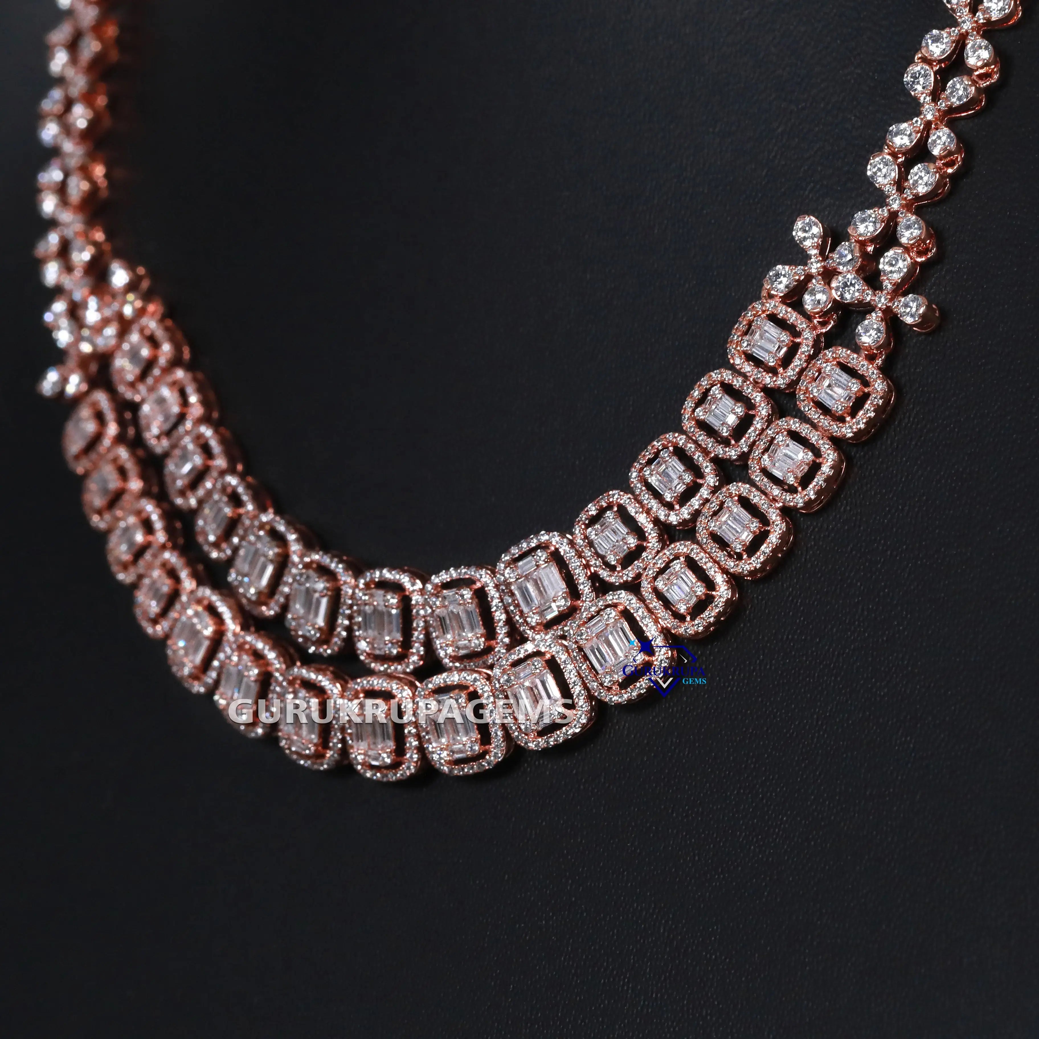 Shine Boldly with a Baguette and Round Cut Diamond Necklace in Rose Gold
