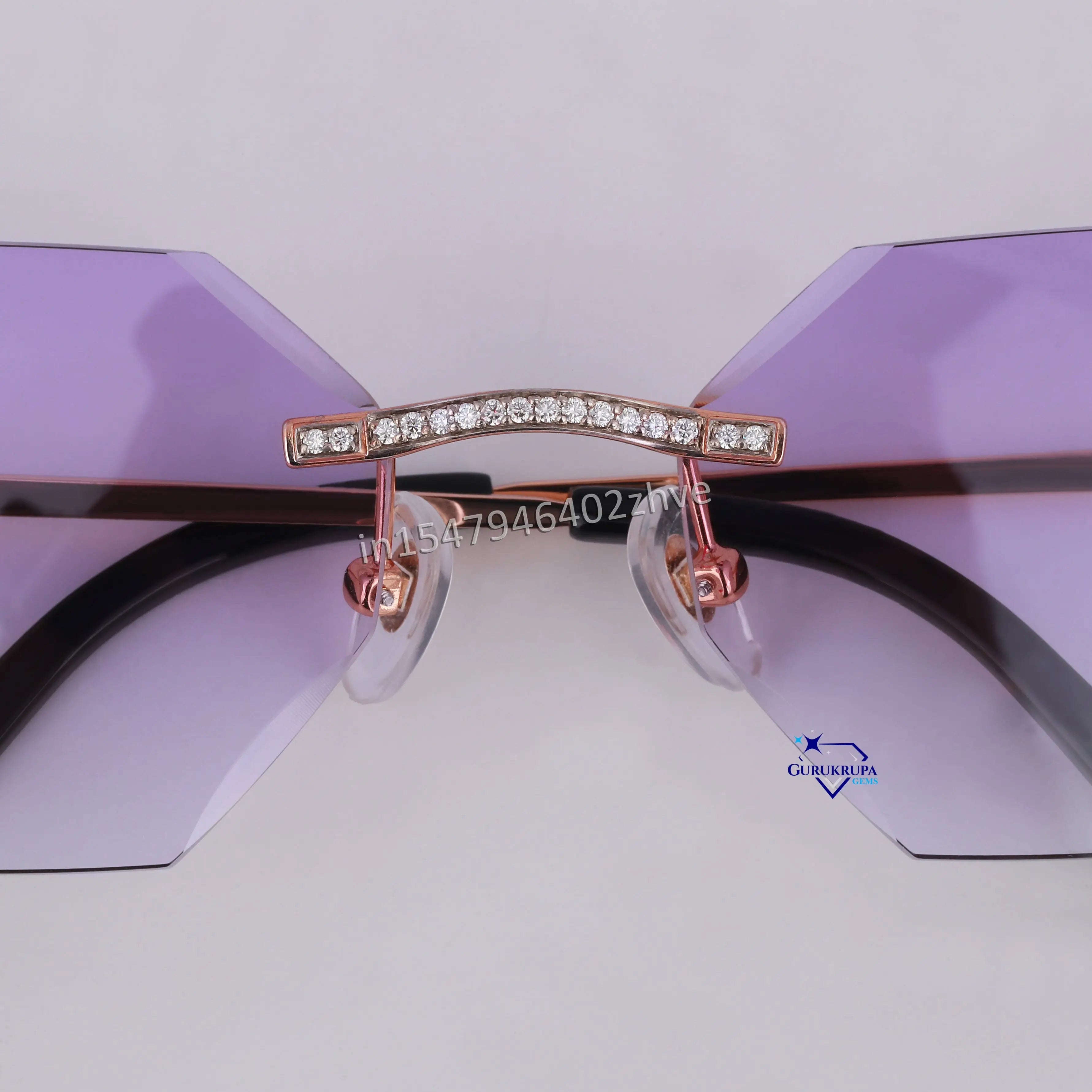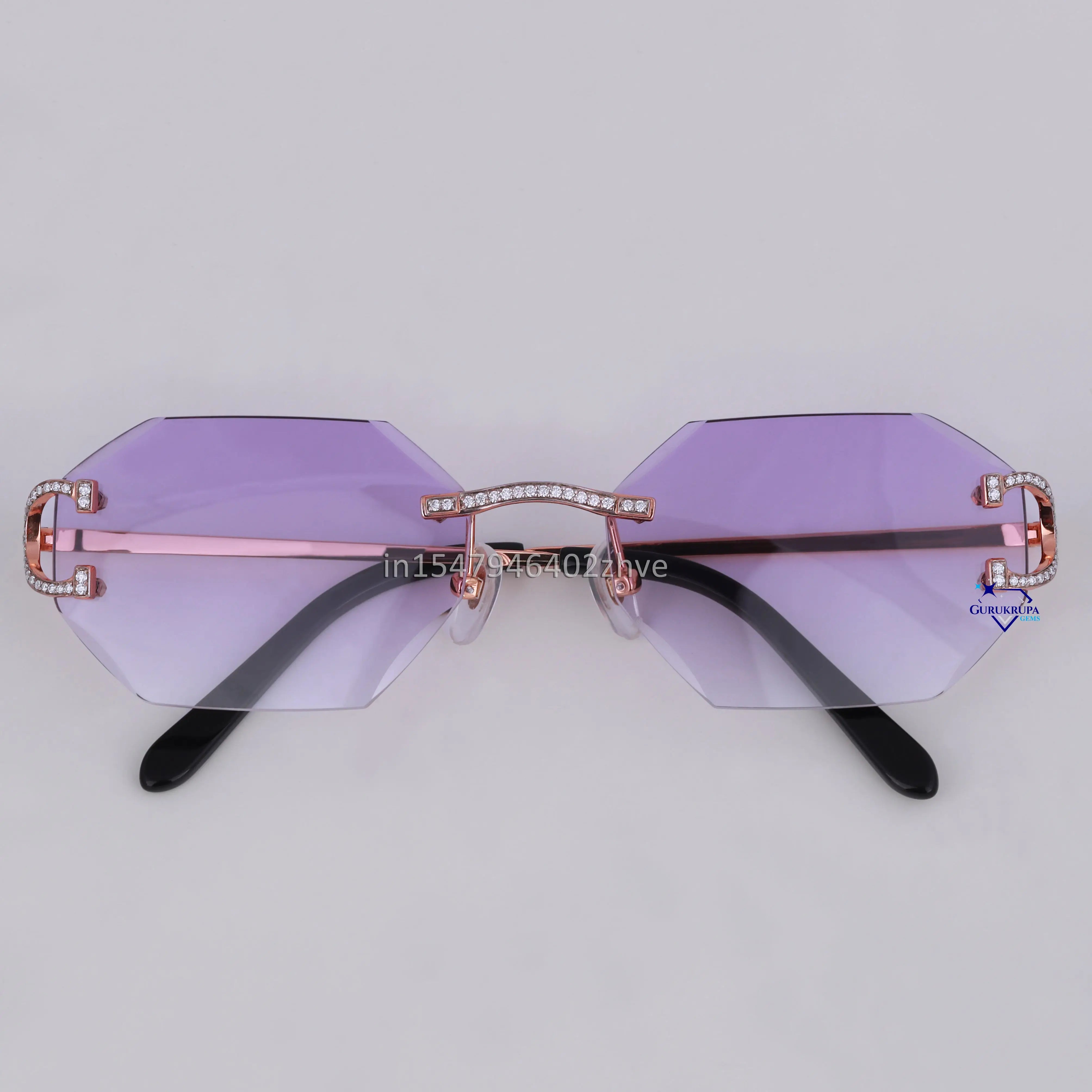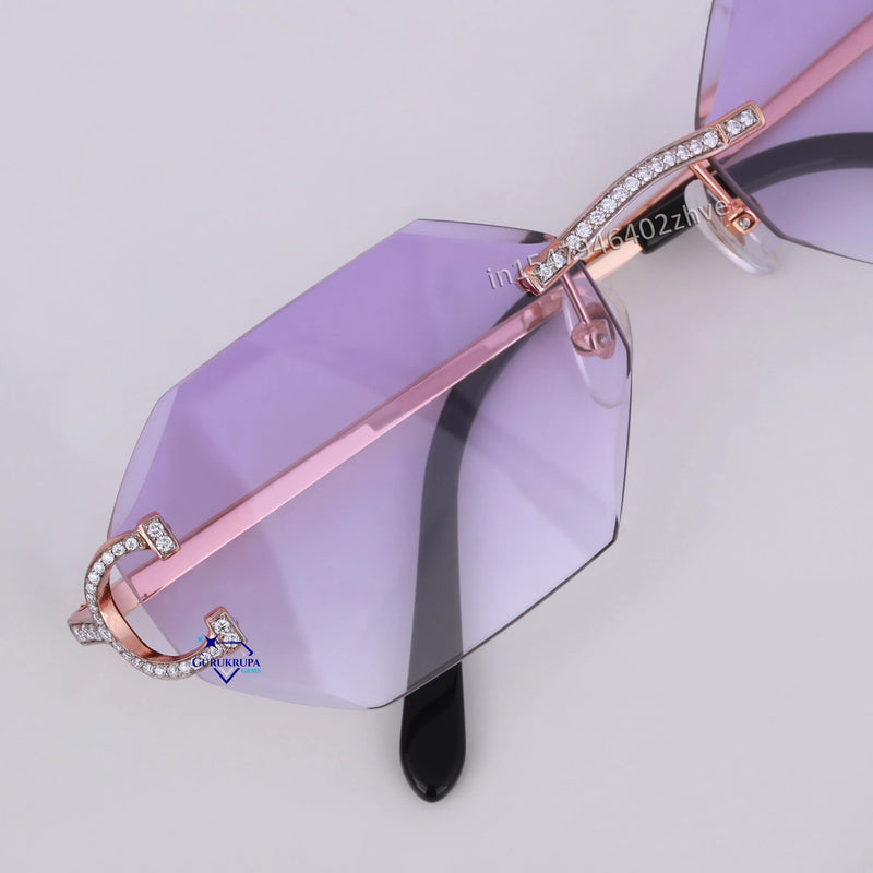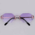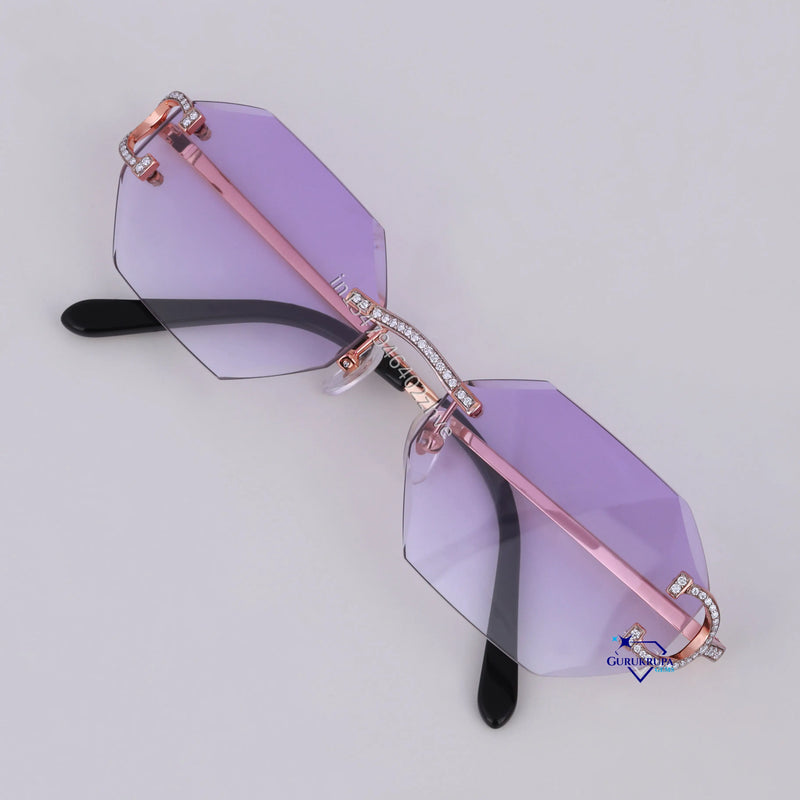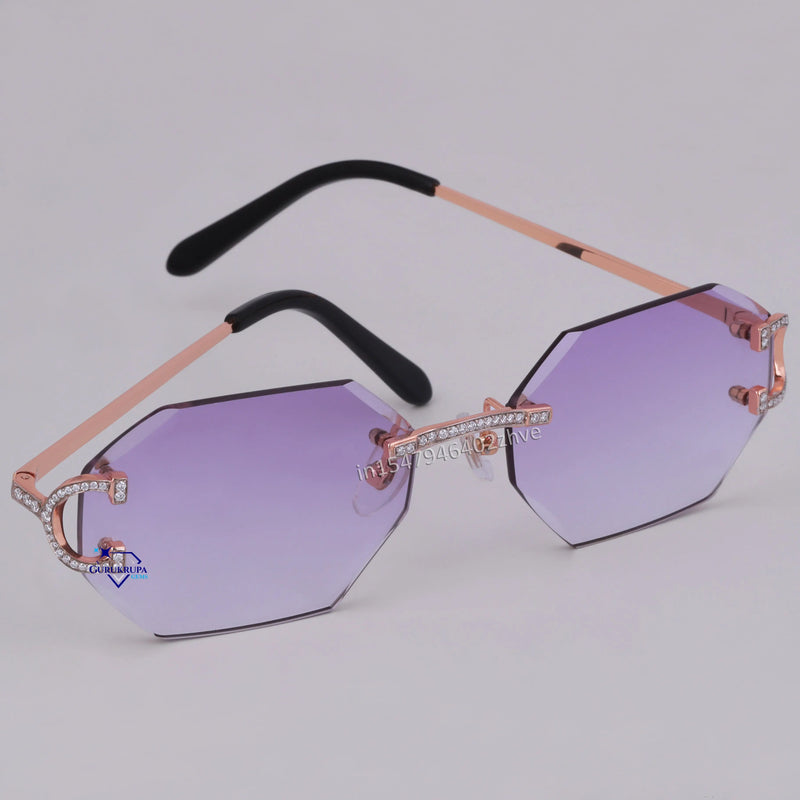 Stylish hexagon shaped purple shade diamond glasses for unisex