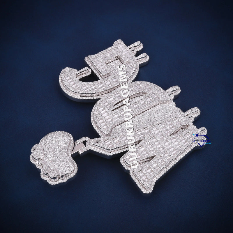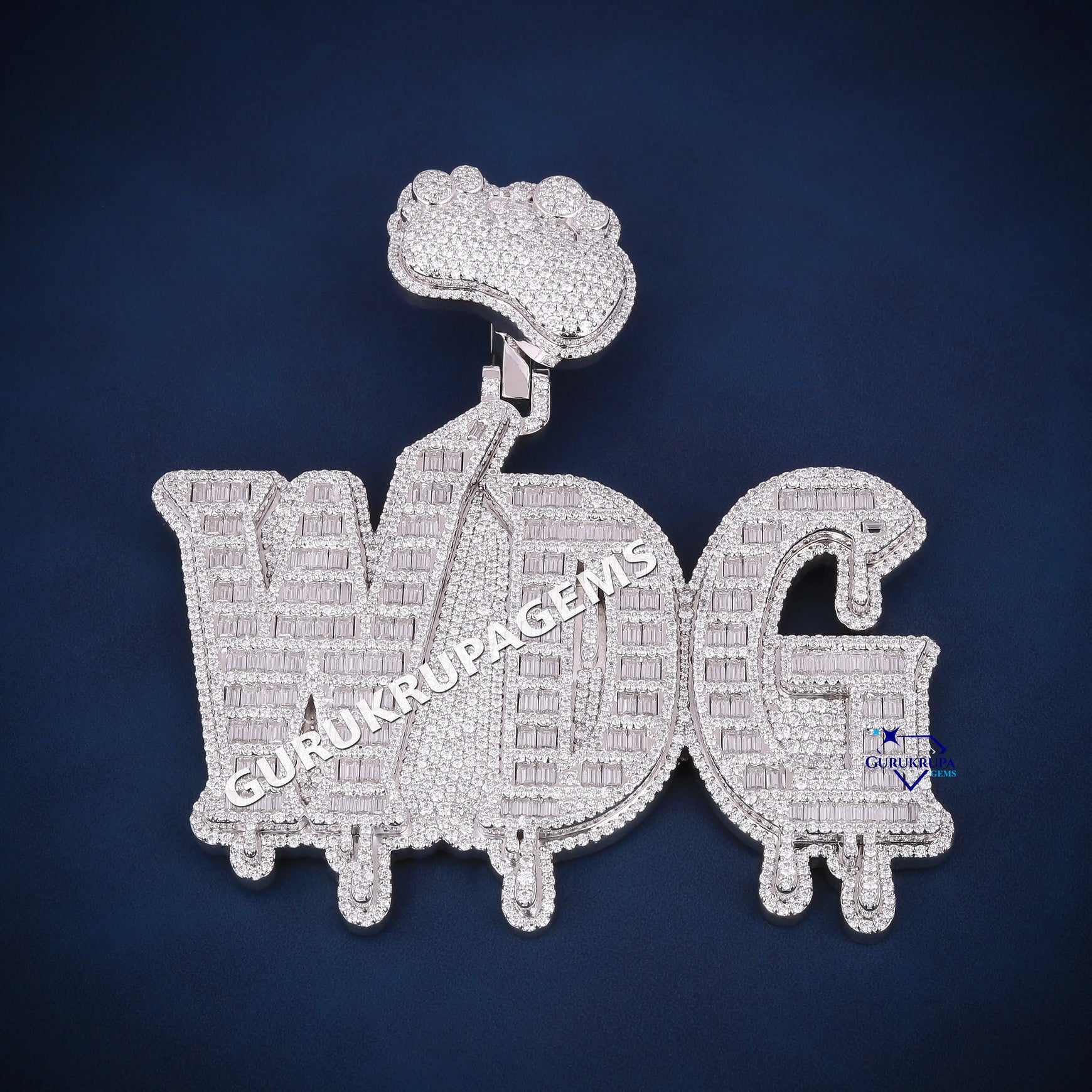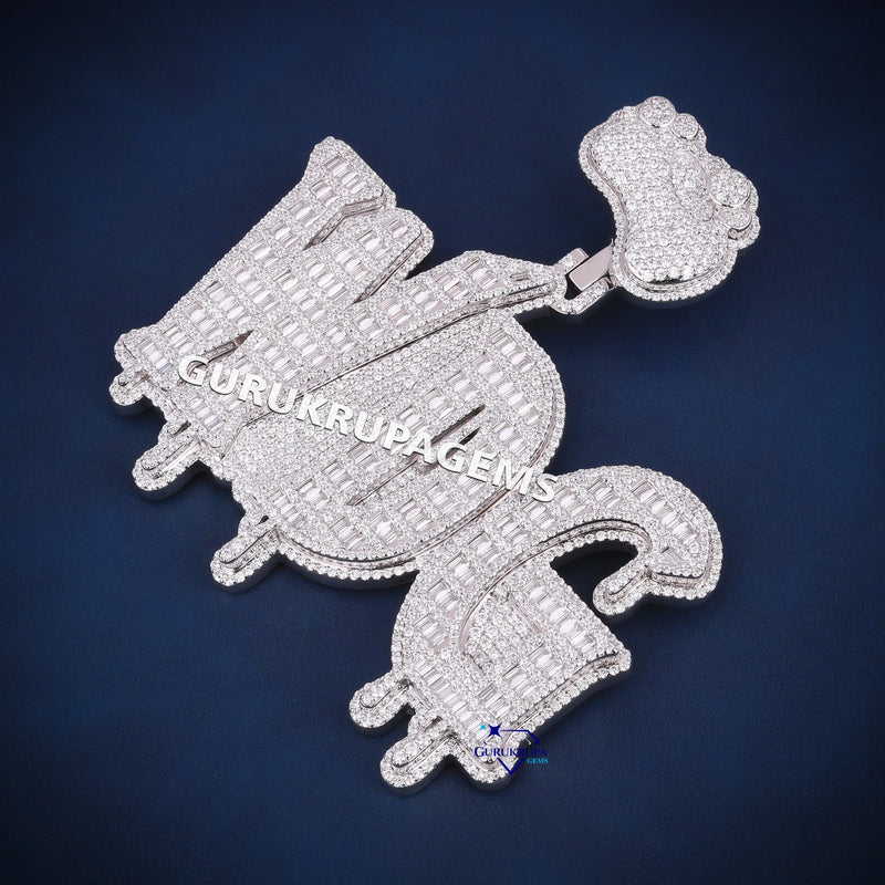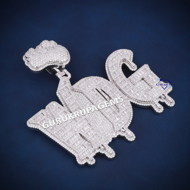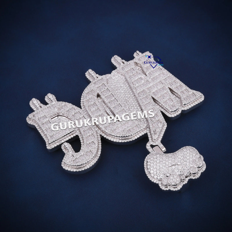 Stylish letter pendant with baguette and round cut vvs quality grade