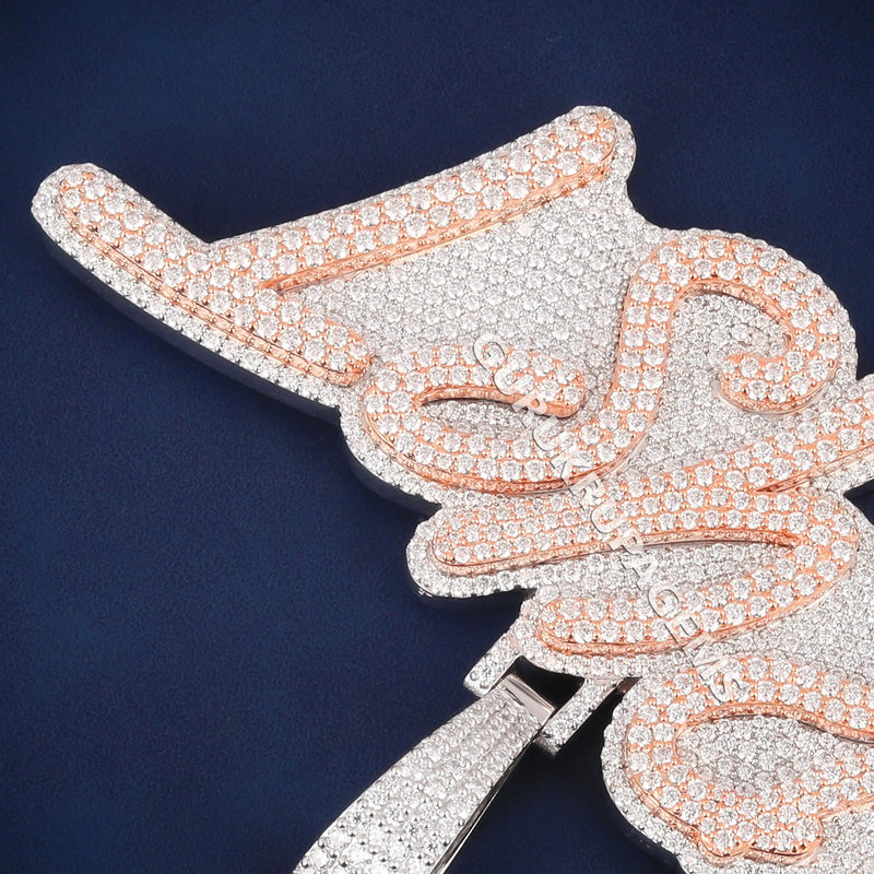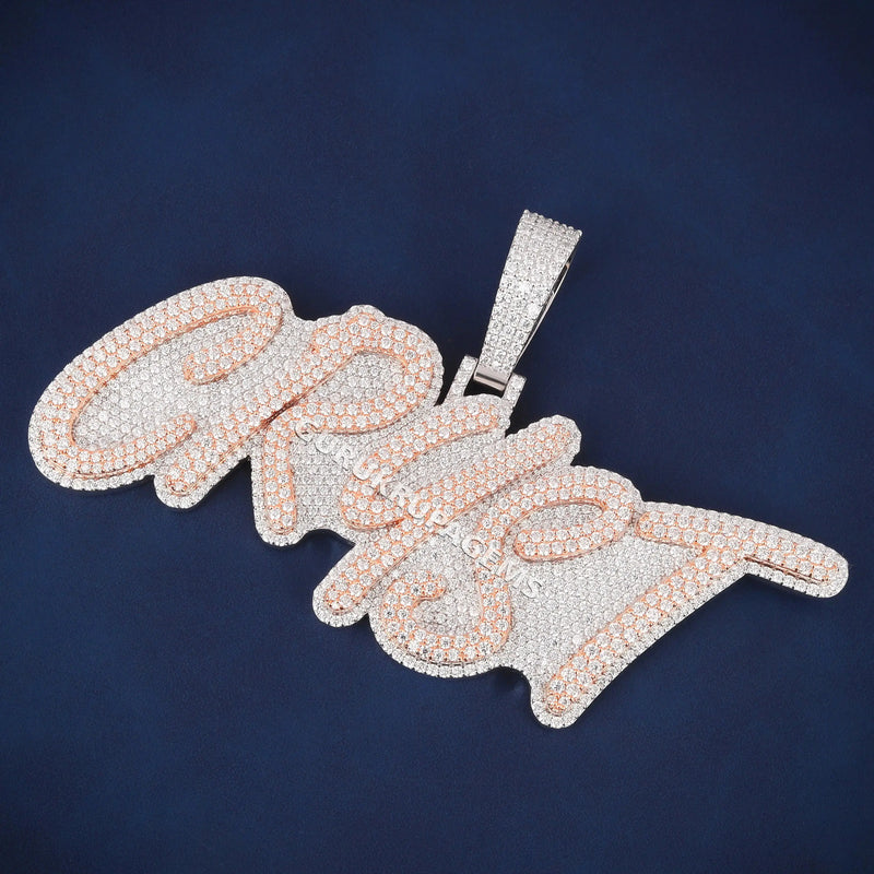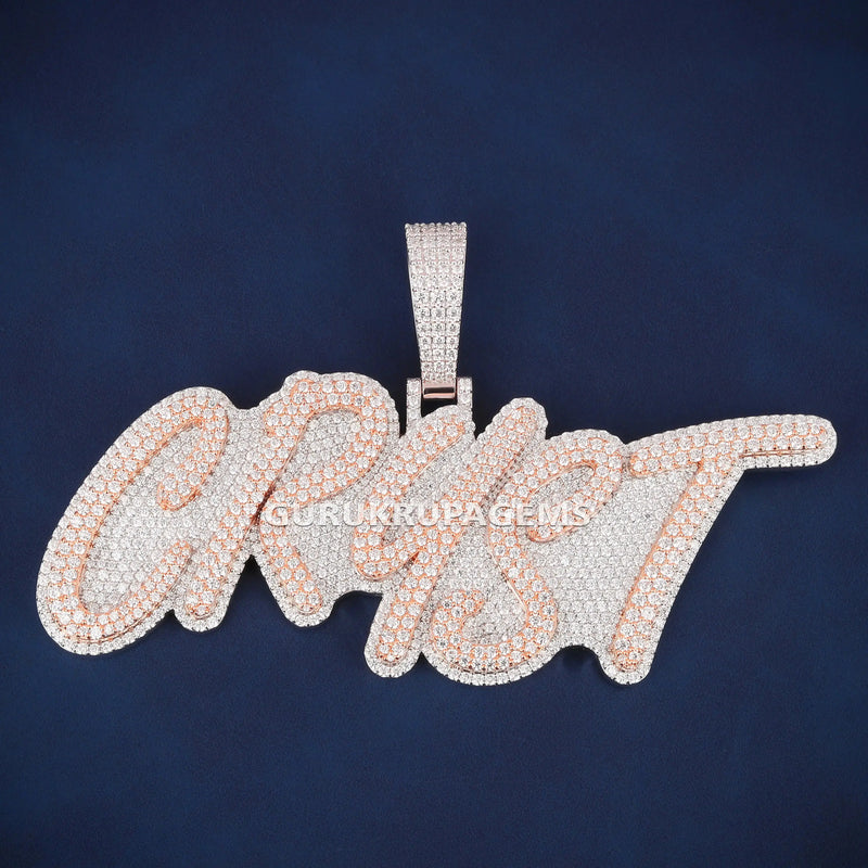 Two Tone Rose and White Gold Custom Name Pendant for Men with Full Iced Diamond Look