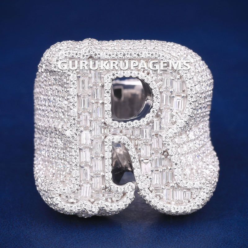Custom Mens 925 Silver Letter Iced Out Lab Grown Diamond Hip Hop Big Engagement Rings Expensive
