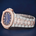Two Tone Blue Dial Rose Gold Plated Watch Iced Out VVS Moissanite Diamond Luxury Dual Collection