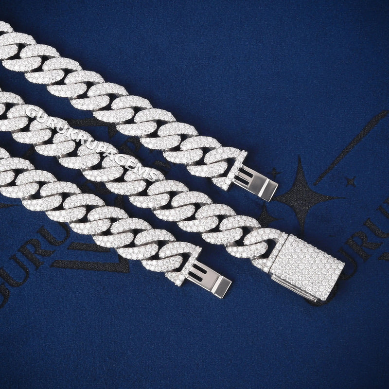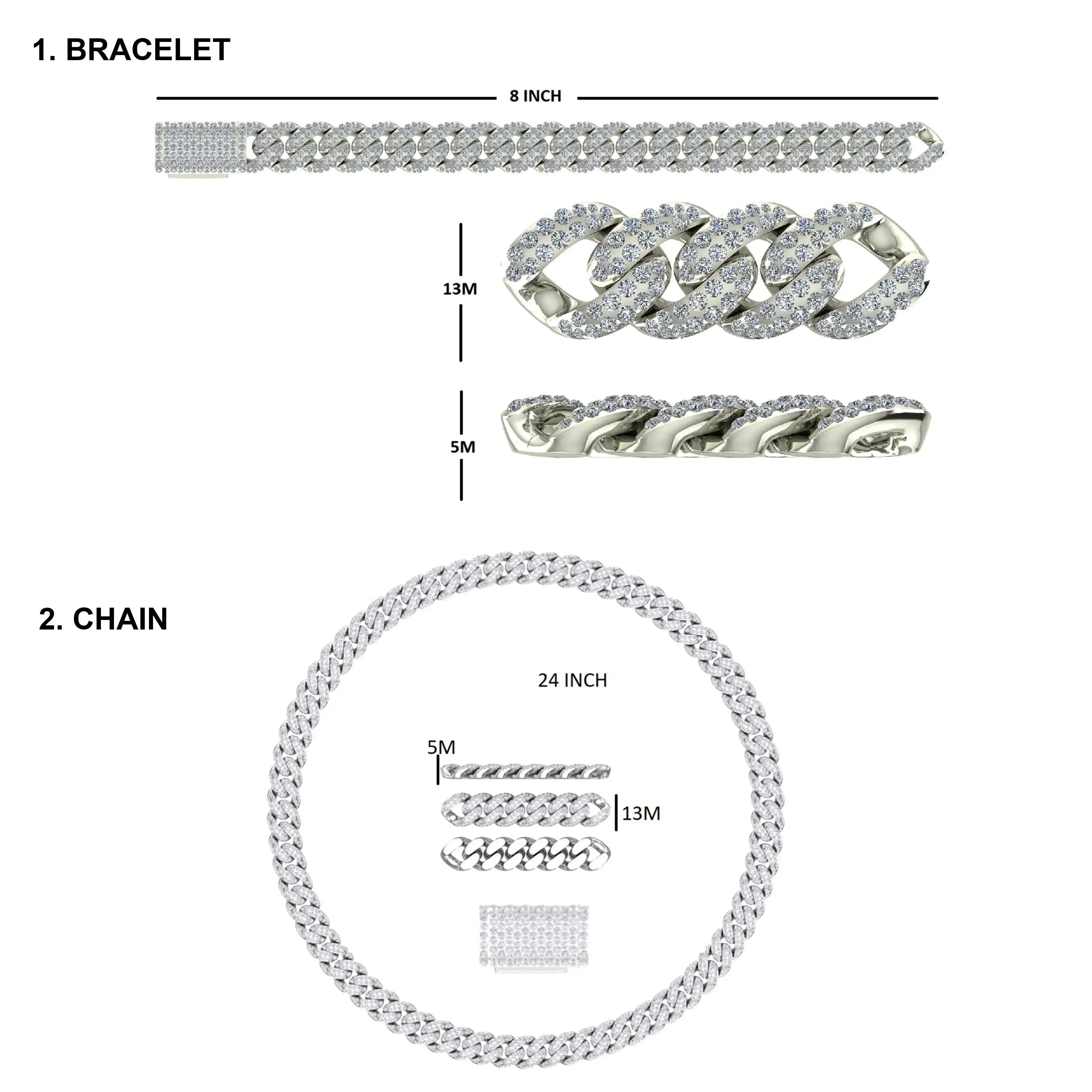 14K White Gold Diamond Cuban Link Miami Chain and Bracelet Combo Set Iced Out Drip Collection