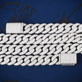 Iced Out Jewelry Set with 14K White Gold Cuban Link Miami Chain and Bracelet