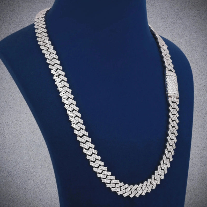 Luxury Hip Hop Jewelry featuring Cuban Link Silver Diamond Chain Necklace