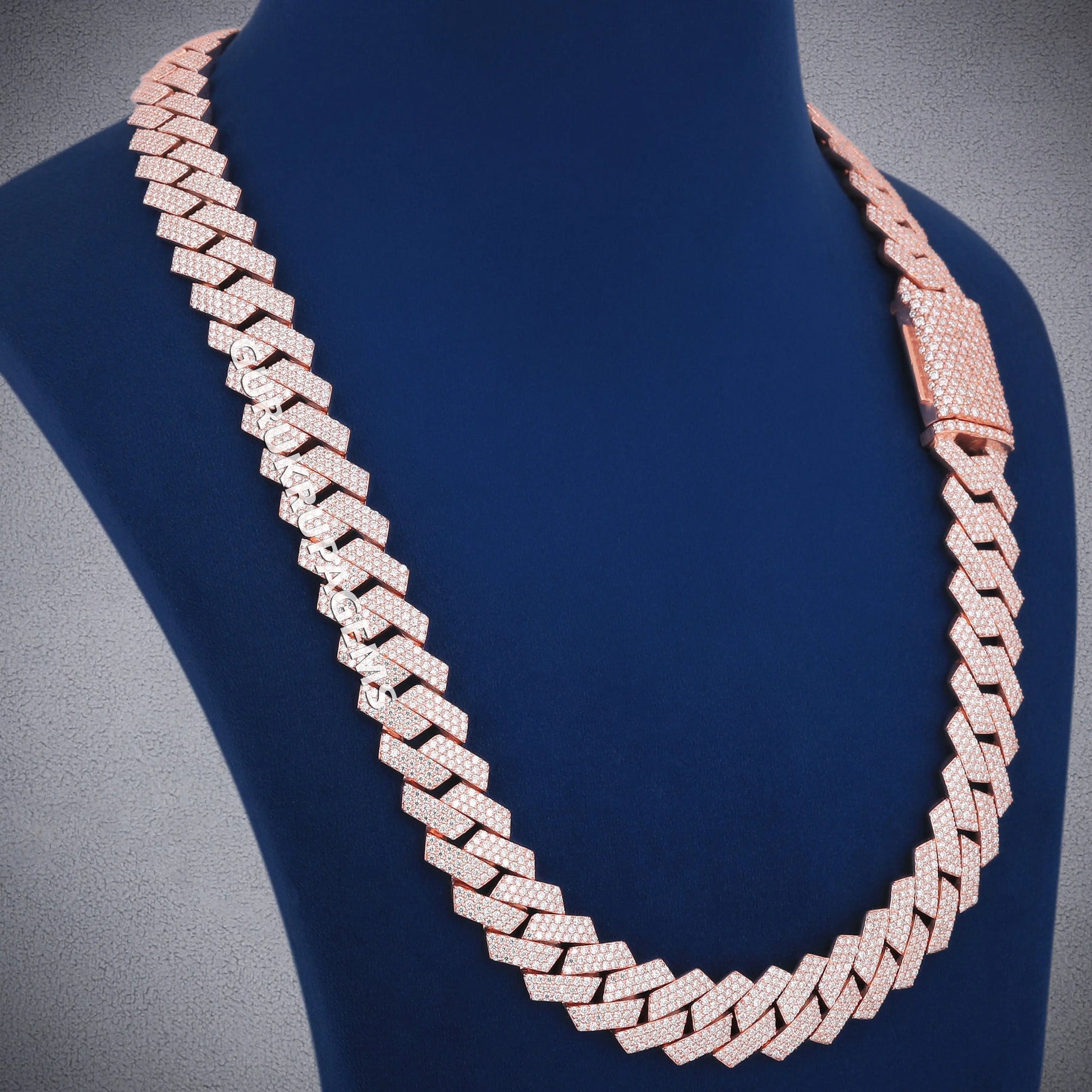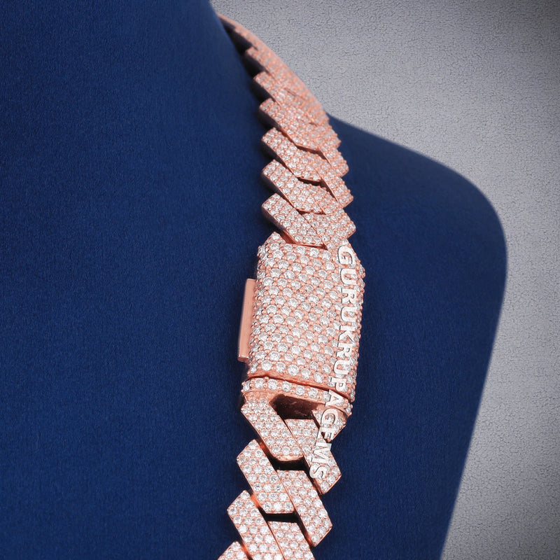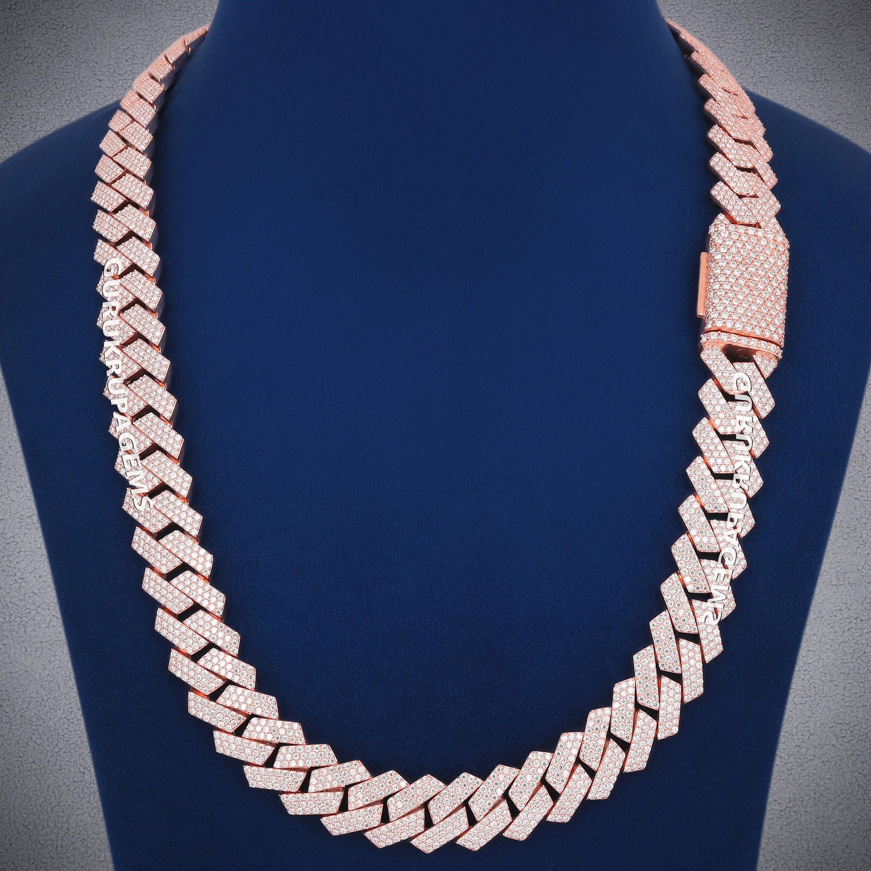 16mm Mens Rose Gold Miami Cuban Link Chain with 22 inch Heavy Fully Iced Out VVS Diamond Necklace